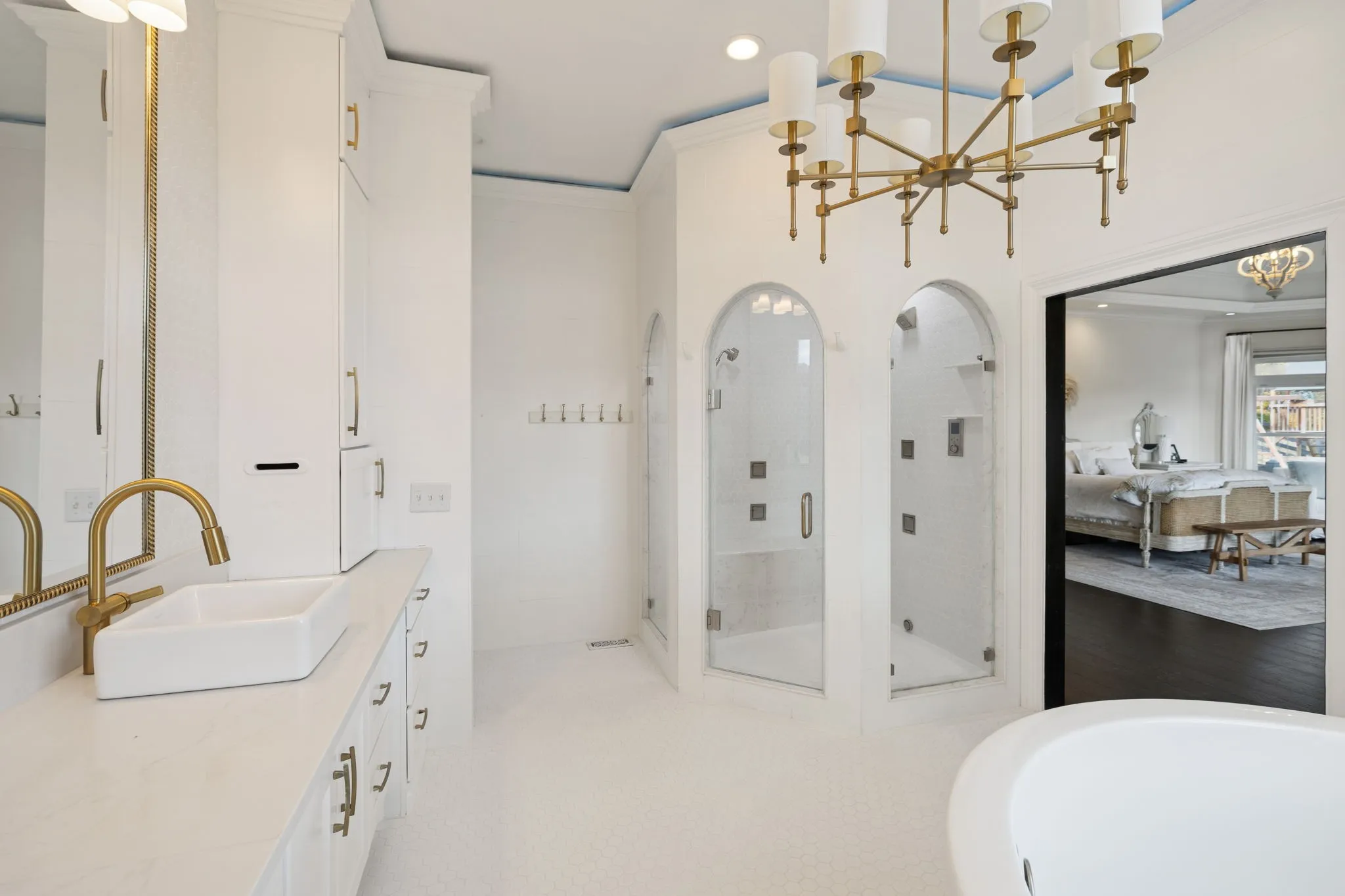 A grand iron-door entry welcomes you, overlooking sweeping vistas of rolling hills and an abundance of natural light. The gourmet kitchen is an ideal blend of beauty and function, featuring top-of-the-line appliances, a hidden walk-in pantry, and floor-to-ceiling cabinetry. Soaring ceilings, large windows, and an open floor plan fill the home with natural light. The main-level primary suite enjoys two spacious closets, a spa-inspired bath, and a soaking tub perfectly positioned to take in the views.\n