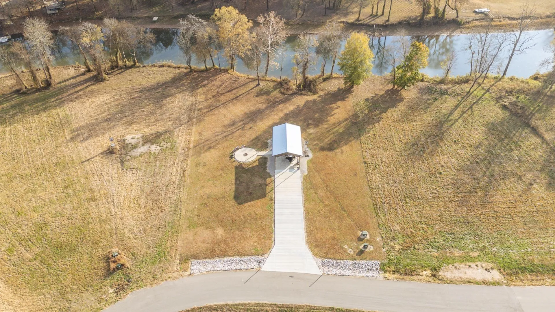 Waterfront living at its finest! This peaceful 1.03-acre property in the gated River Run Estates offers beautiful scenery with access to Horse Creek and the Tennessee River. Enjoy a spacious 800 sq ft pole barn built in 2022 on a 20×40 concrete slab with covered awning, plus a 2022 Heartland Sundance Light 293RL camper that stays with the property. The lot also features a fire pit with a round concrete pad, perfect for relaxing evenings by the water. Take advantage of boat ramp access and Airbnb-friendly flexibility. HOA is just $350/year. This is a truly peaceful and turnkey river lot you don’t want to miss!