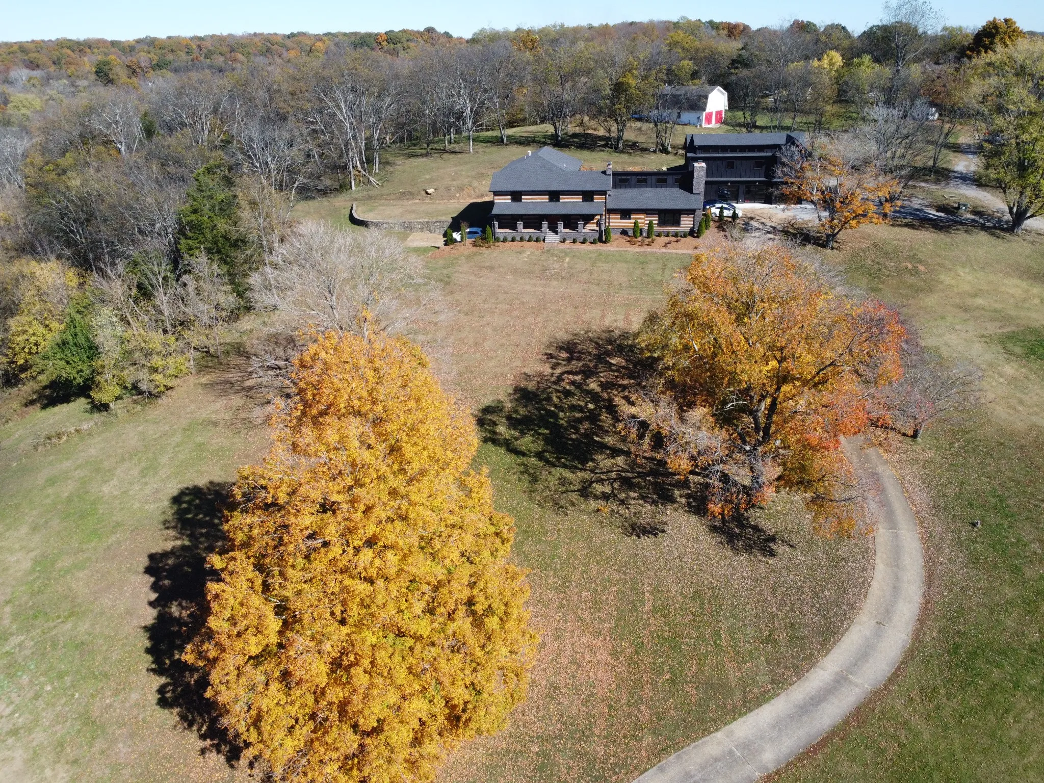 Welcome to your private retreat on a breathtaking 9.1-acre estate that perfectly balances seclusion and convenience—just minutes from the heart of Hendersonville and all that Nashville has to offer. This historic property seamlessly blends timeless character with modern luxury, anchored by a meticulously restored log cabin featuring original exposed brick and three wood-burning fireplaces.