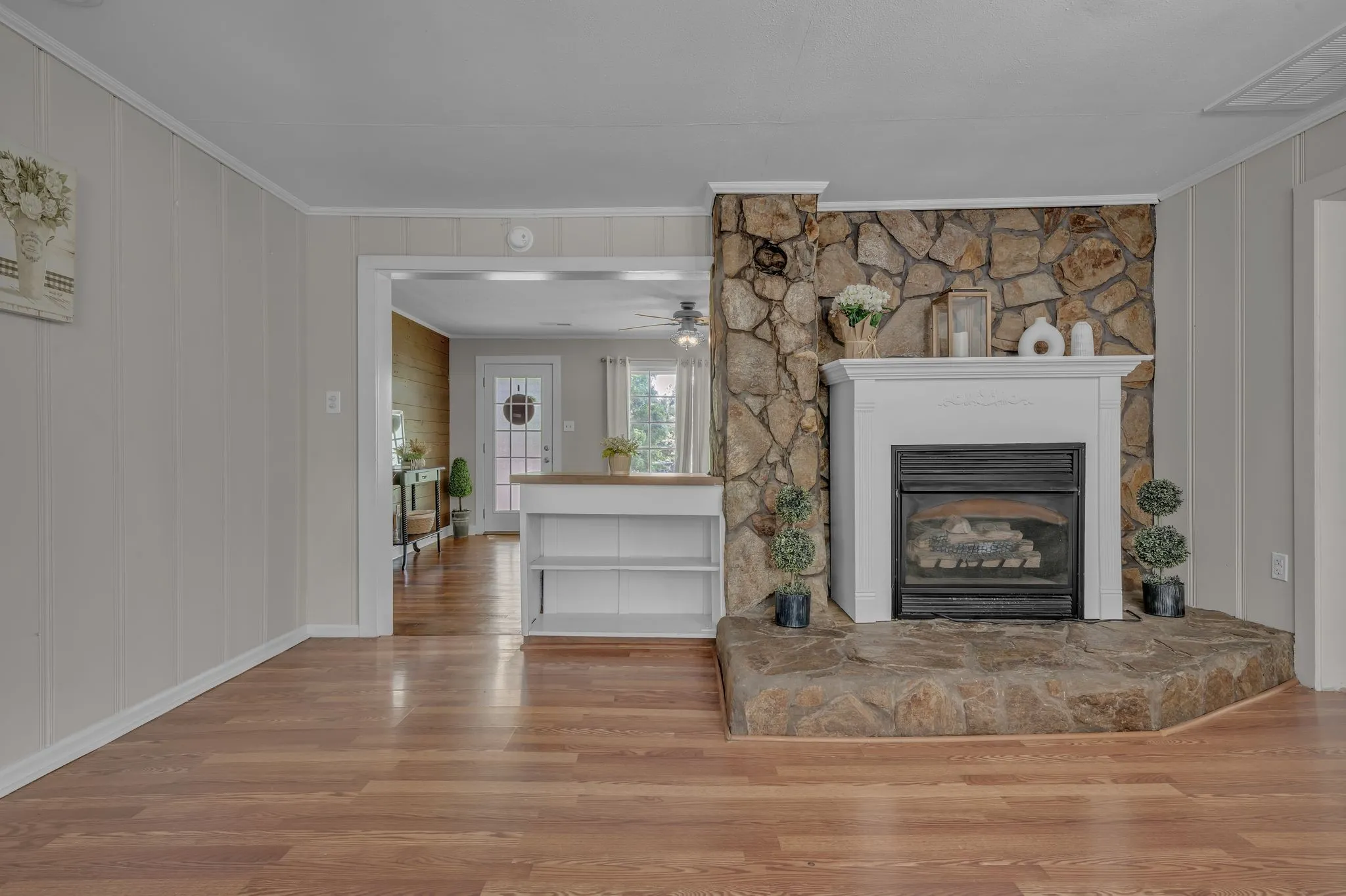 Move-In Ready – This adorable 3 bedroom/2 bath home sits on 1.25 acres offering peaceful privacy and plenty of space. The living room features original hardwood floors, while the open concept kitchen includes new flooring, abundant cabinetry with updated hardware, a kitchen island, and a cozy gas-log stone fireplace. A large utility room off the kitchen provides excellent storage, and an additional bonus room offers extra living space and includes a wood burning fireplace. Recent updates include a new A/C unit, new mini blinds and fresh paint throughout. The home also features a mental roof installed in 2023, newly added rear gutters (2025), and a 2-car carport. A detached storage building offers more storage options. Conveniently located with easy access to Dickson, Ashland City, and Clarksville. This Property is being sold “As Is”.