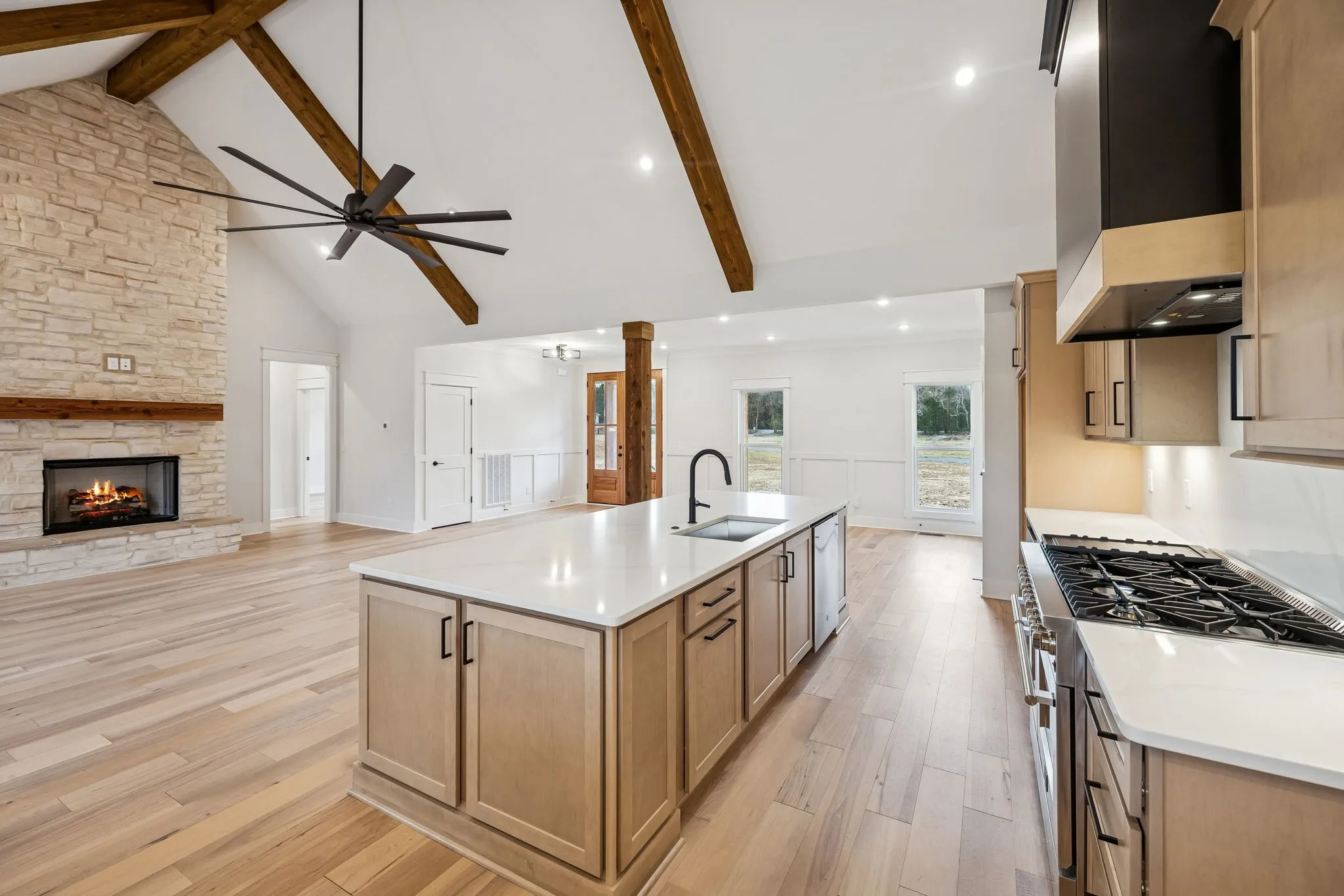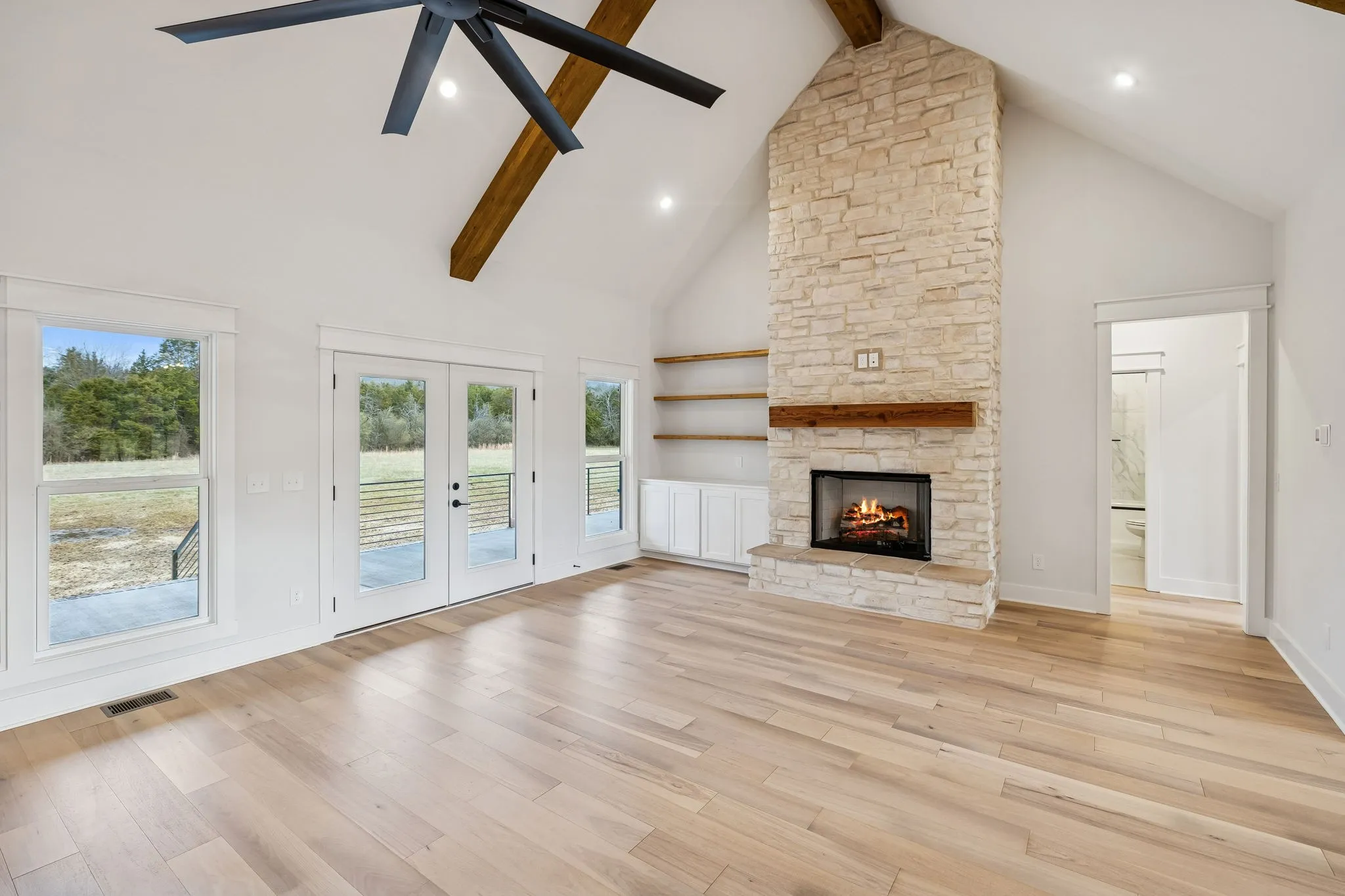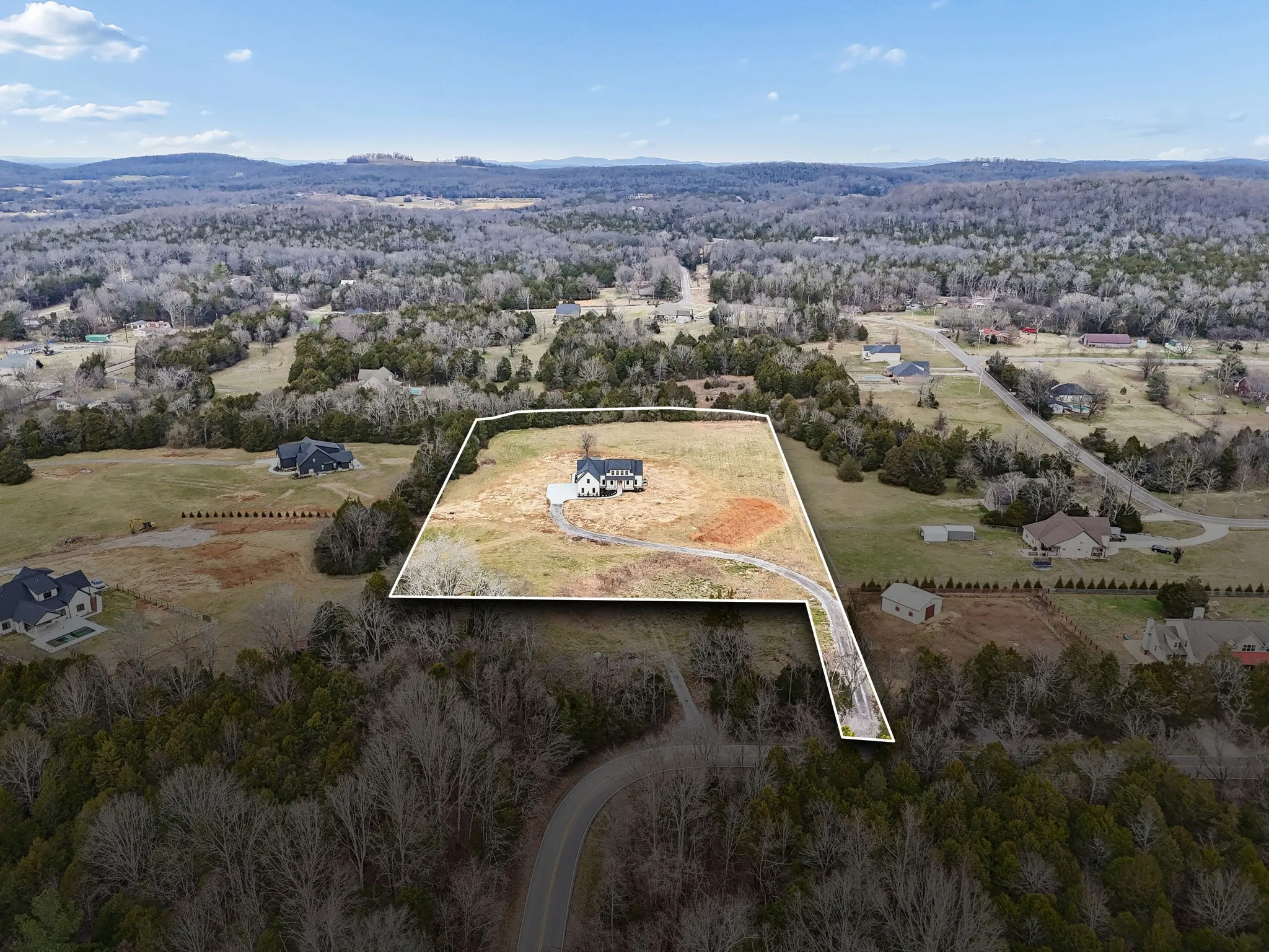 Experience the absolute perfect blend of luxury and country living in this stunning new construction by Simmons Builders, set on 5.13 acres of scenic Tennessee countryside. This spacious custom-built home showcases high-end finishes throughout, including rich hardwood floors, exposed cedar beams, and a gas fireplace accented by a stone mantle. The chef’s kitchen is designed to impress, with a custom gas stove hood and sleek counters, soft close cabinets, black fixtures, and the walk-in pantry you’ve been dreaming about. The primary suite offers the space, comfort, and style of a true relaxing retreat, with vaulted ceilings with warm wood beams, a huge double vanity, free standing tub, separate tile shower, and a walk-in closet. Two more bedrooms share another full bath downstairs, while guests have a convenient powder bath. Upstairs, you’ll find two more bedrooms, another full bath, and gorgeous media room with so much flexible space. Additional features include a large three-car garage, a convenient mudroom with built-ins, and inviting covered porches on both the front and back – perfect for taking in the peaceful surroundings. Make this luxury Tennessee home on countryside acreage your dream property today! Up to $10,000 paid towards Buyer’s Closing Cost – Contact listing agent for lender contact info and details.