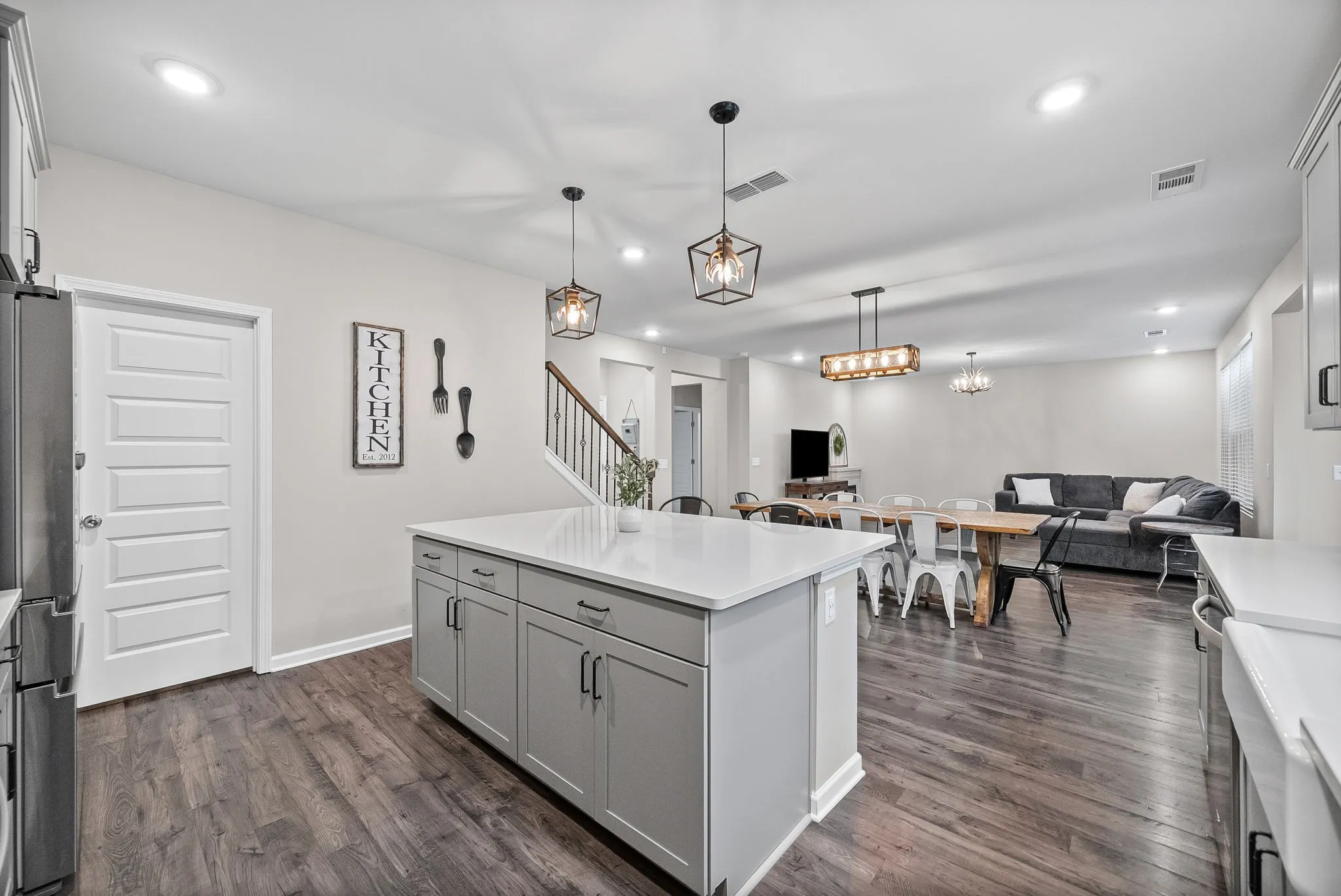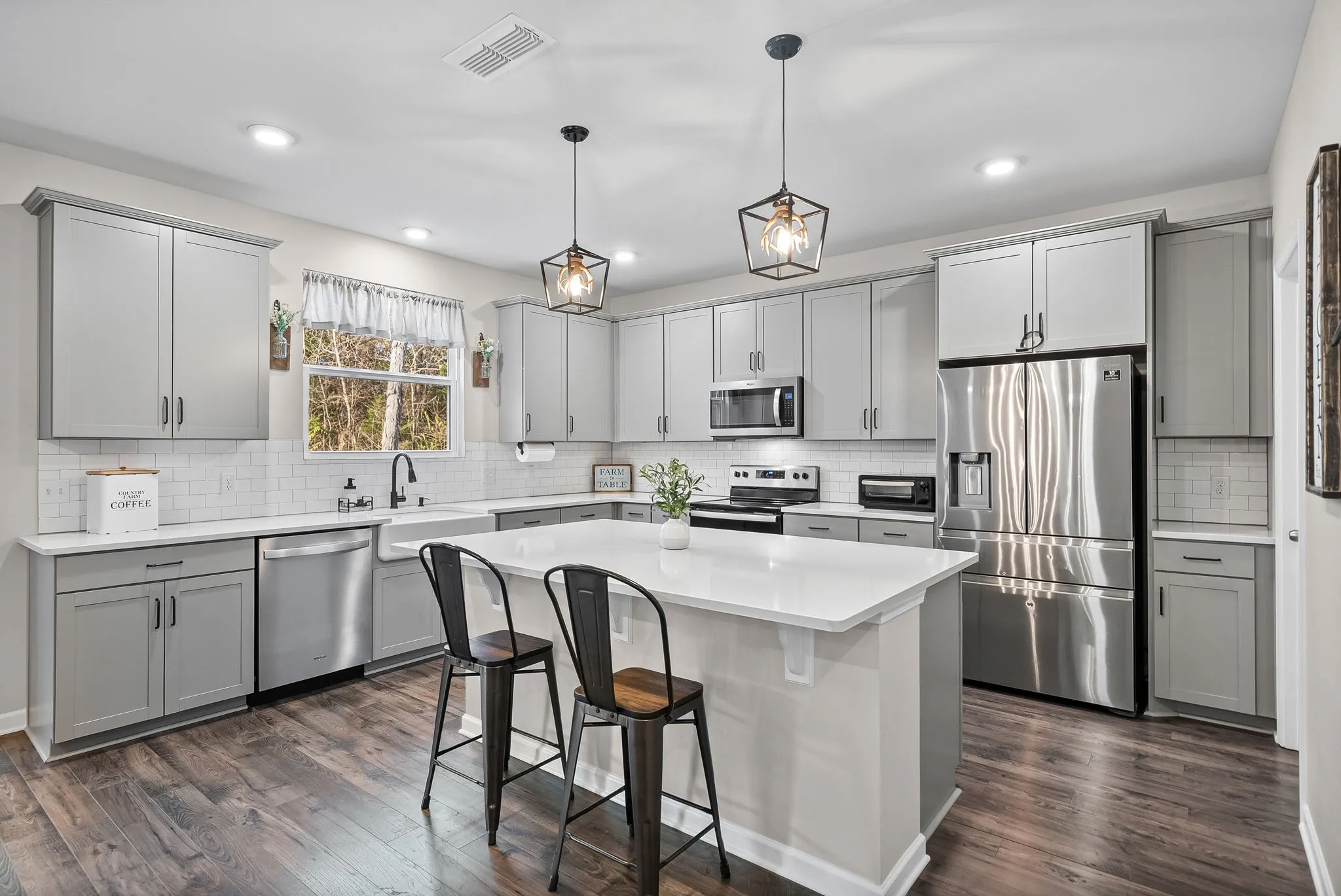 Inside, enjoy a farmhouse sink, freshly painted interior, new dishwasher, extra large cabinets, new carpet throughout the entire home in 2025 with a transferable warranty, plus a washer and dryer that convey. The fridge conveys as well!