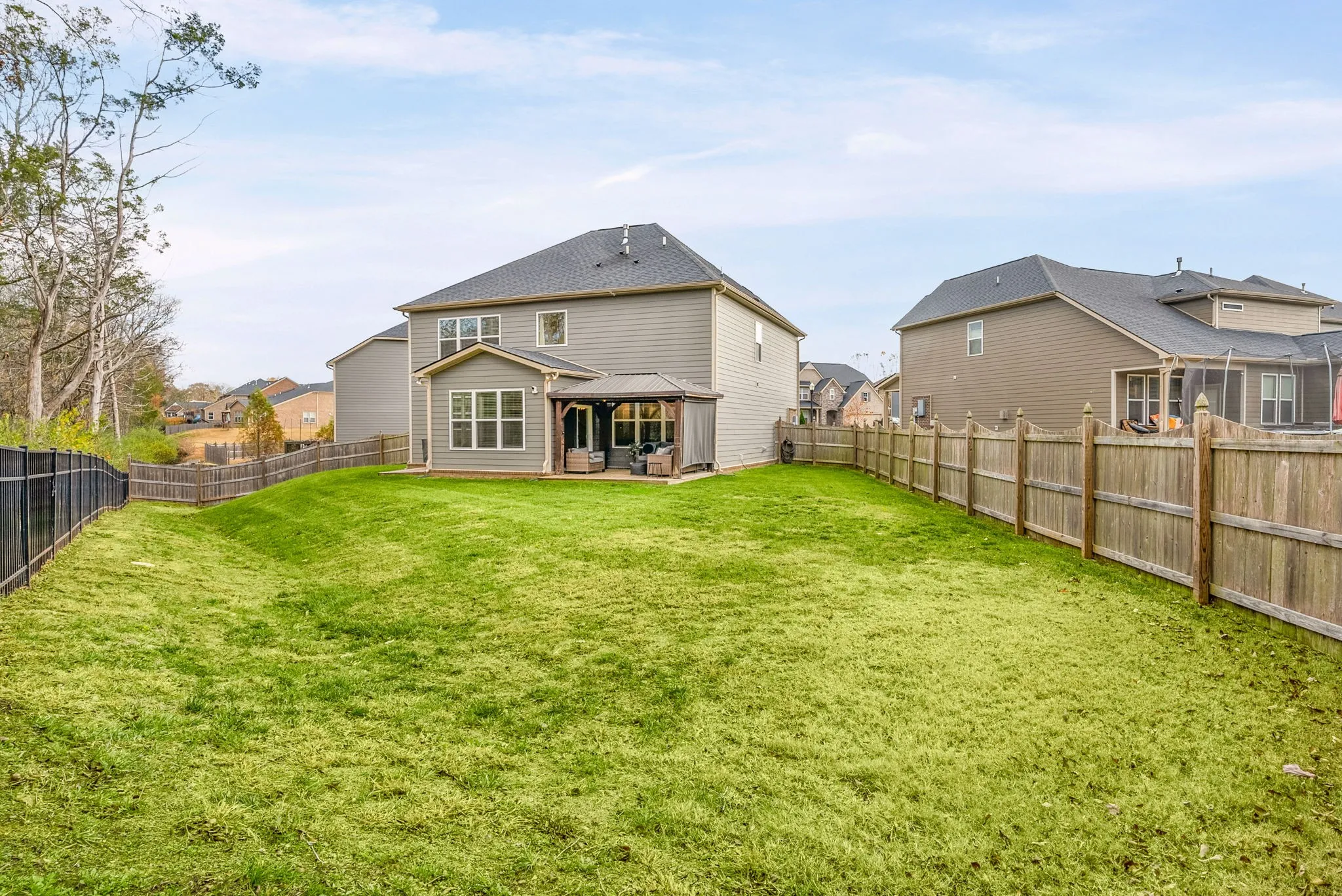 Located in the exclusive neighborhood of Tuscan Gardens, tucked at the end of a CUL DE SAC with NO BACKYARD NEIGHBORS. Walking trails are just minutes from your door with two miles of peaceful paths. The community offers a pool, playground, clubhouse, and a community center with a gym. Mature trees, a fenced yard, and a covered pergola that conveys.