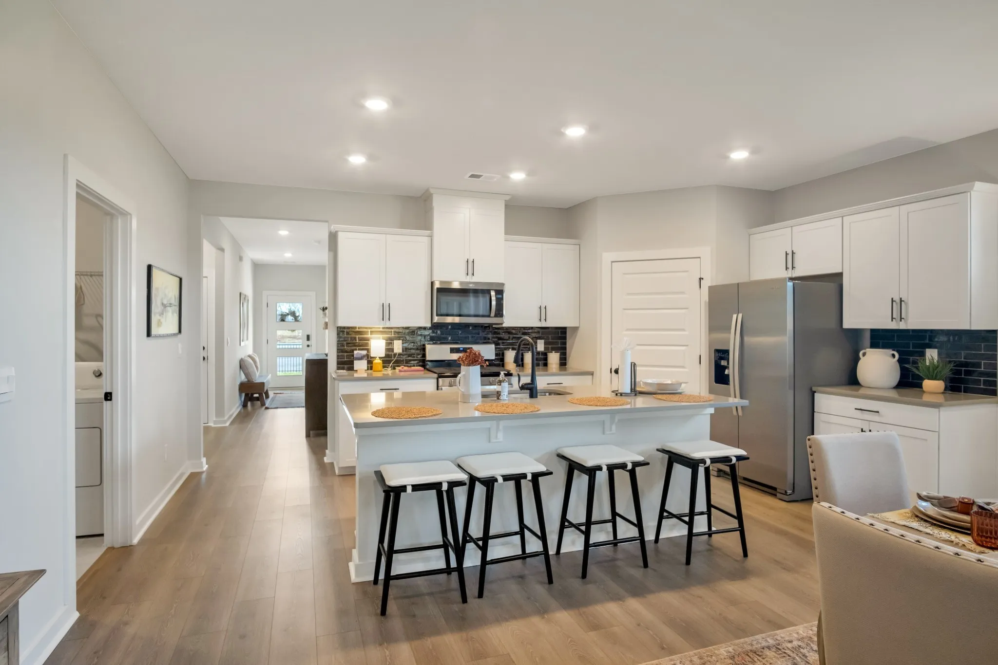 Dover Plan, 4 bed, 2 ba, No stairs, ranch home! Quartz countertops, Tankless water heater, Kitchen backsplash, no carpet. No Pricey upgrades. Enjoy the private back covered porch, Everything is included. You can monitor your front door, control your thermostat & garage with a phone app included in the SMART Home package. Yard maintenance included. 1883 total sq ft! Hardie & Stone/ Brick accent. Resort style pool, firepit, clubhouse with exercise room, and pickleball courts! Special interest rates and incentives. Homesite #275