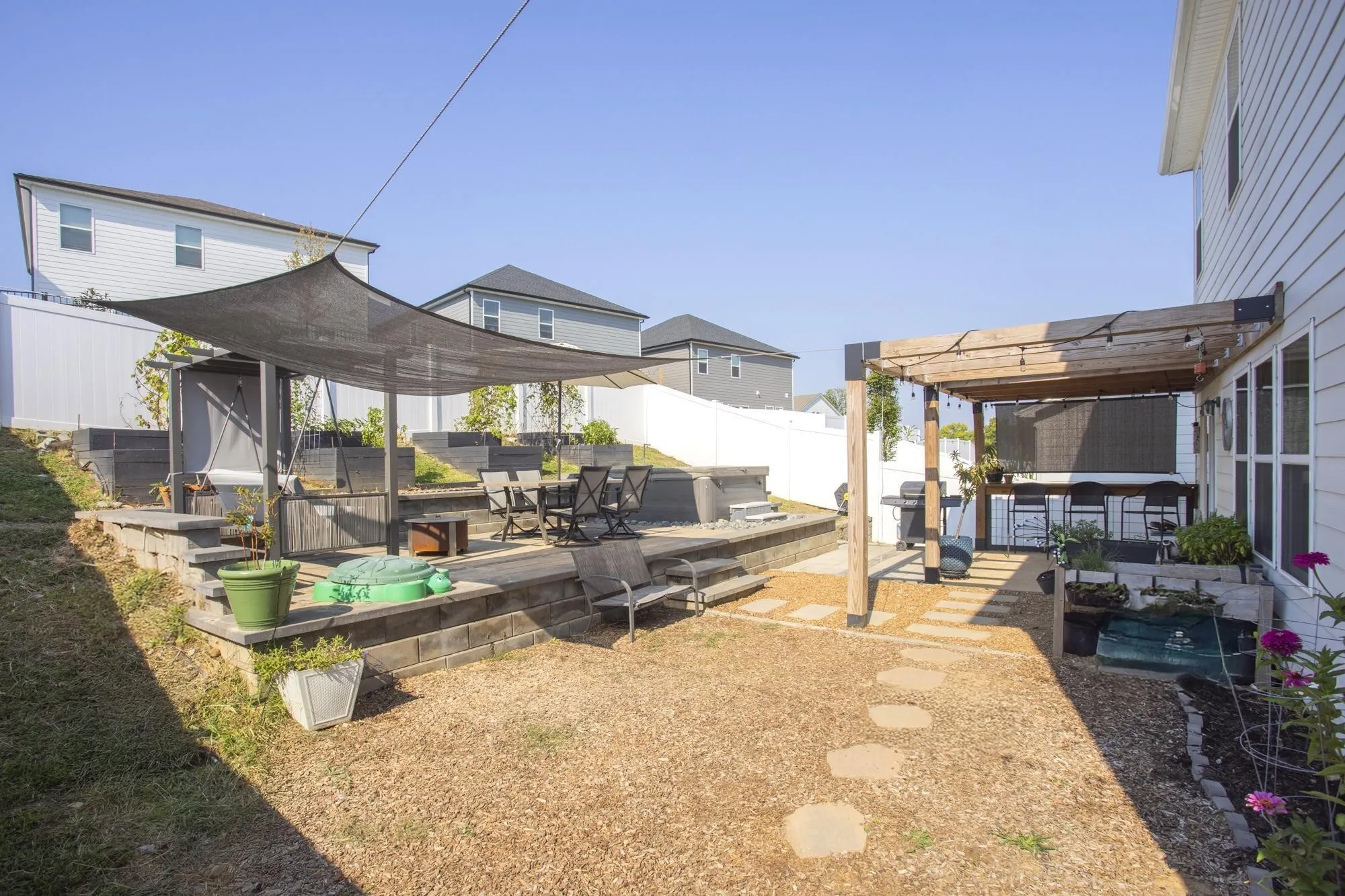 Step into modern comfort with this like-new, energy-efficient home in the sought-after Riverbrook community of Hermitage. The spacious Johnson floorplan welcomes you with a grand foyer that leads into a stylish gourmet kitchen and open-concept living area—perfect for entertaining or relaxing with family. With 5 true bedrooms, this home is a rare and incredible find in the Nashville market—offering plenty of space for growing families, guests, or flexible work-from-home setups. Situated in a desirable cul-de-sac, the home offers added privacy and a quieter setting, perfect for those seeking a peaceful place to call home. The backyard has been thoughtfully upgraded with custom hardscaping, raised garden beds, and a private hot tub, creating your own outdoor oasis for year-round enjoyment. Don’t miss the chance to own this exceptional home in one of Hermitage’s most desirable communities!
