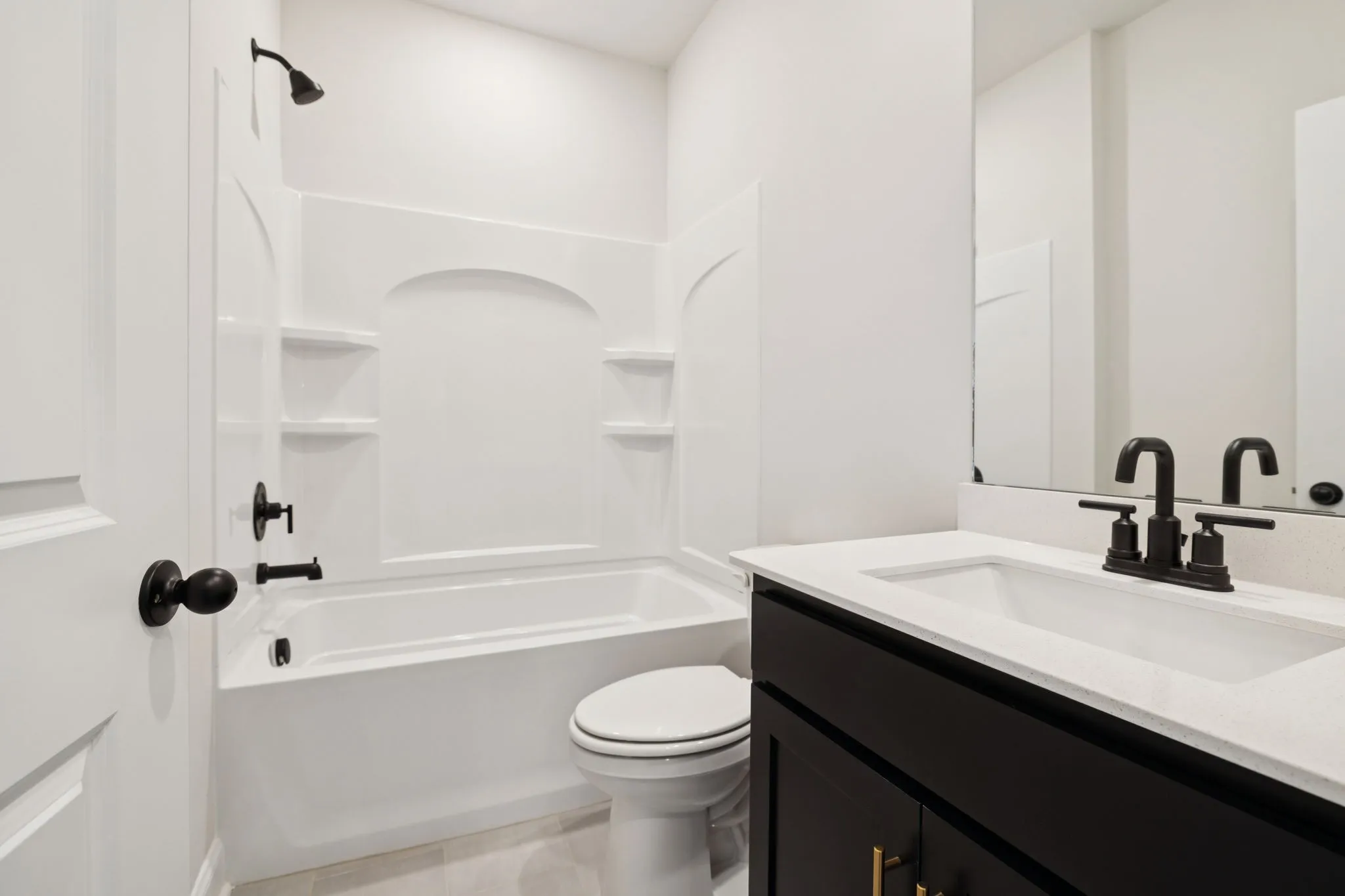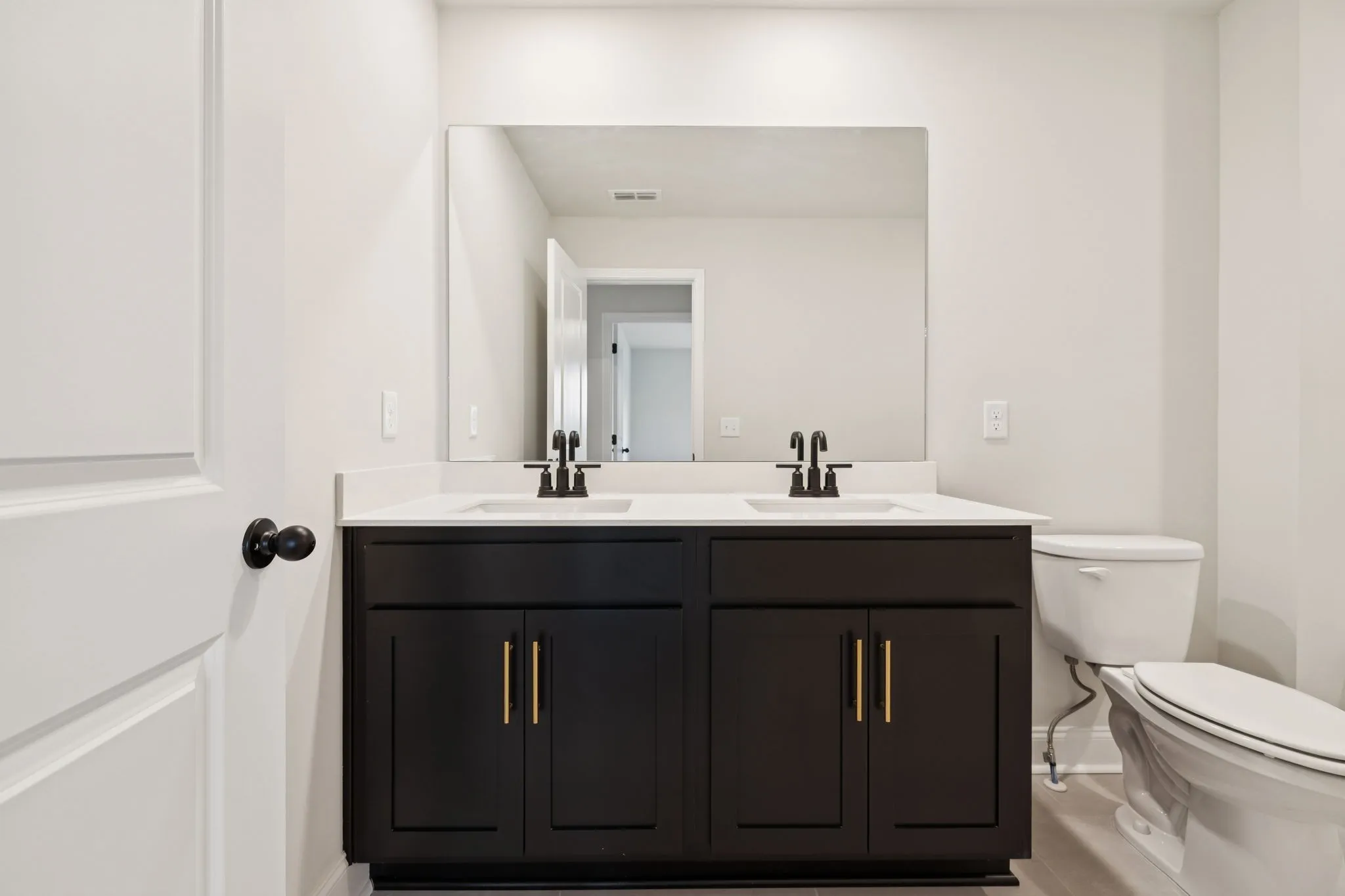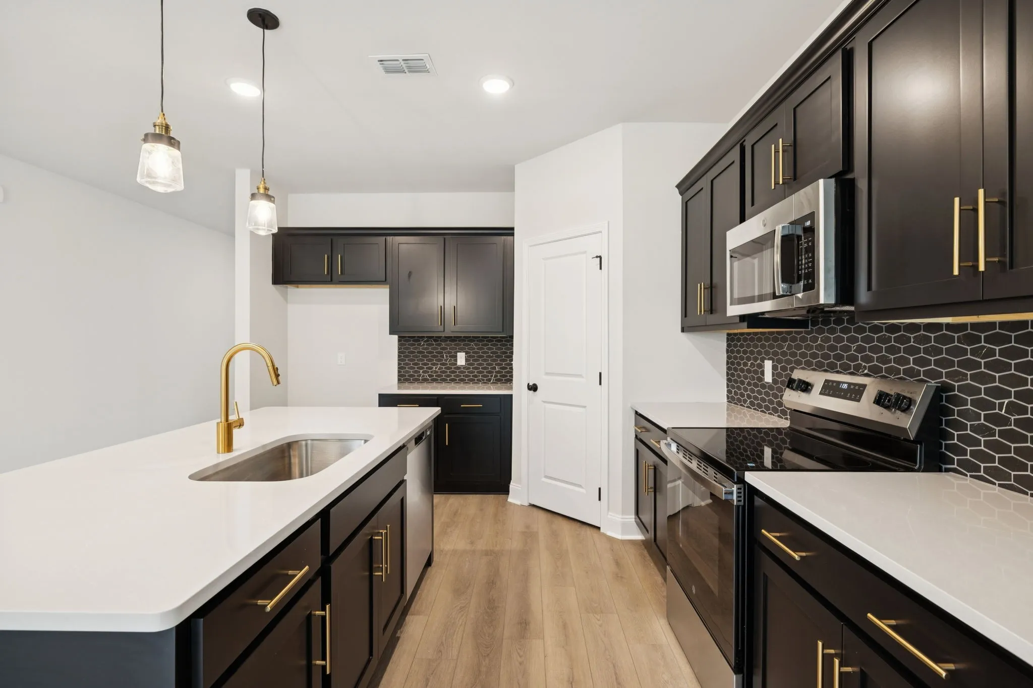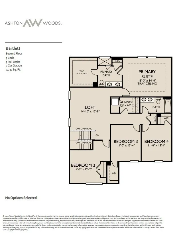Lot 156. This open-concept Bartlett floorplan by Ashton Woods has spacious living areas ideal for entertaining. The L-shaped layout features the dining area adjacent to the kitchen which includes designer-curated finishes from the luxurious Noir Collection such as black and gold pendant lights, black tile backsplash, grey quartz counters, black cabinets with gold hardware, and a single-bowl stainless sink. Enjoy outdoor living on this wooded lot with a covered back porch. Flex room off the foyer is suitable for a home office, formal dining or sitting room. Upstairs you’ll find a versatile loft space and oversized primary suite with large walk-in closet as well as three secondary bedrooms, additional full bath with dual vanity, and upstairs laundry room. See sales agent for amazing holiday incentives.