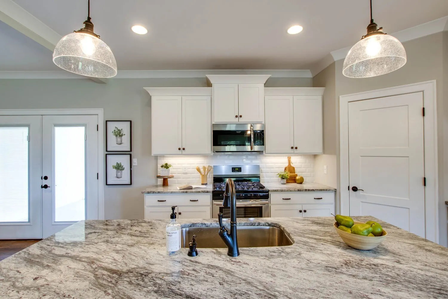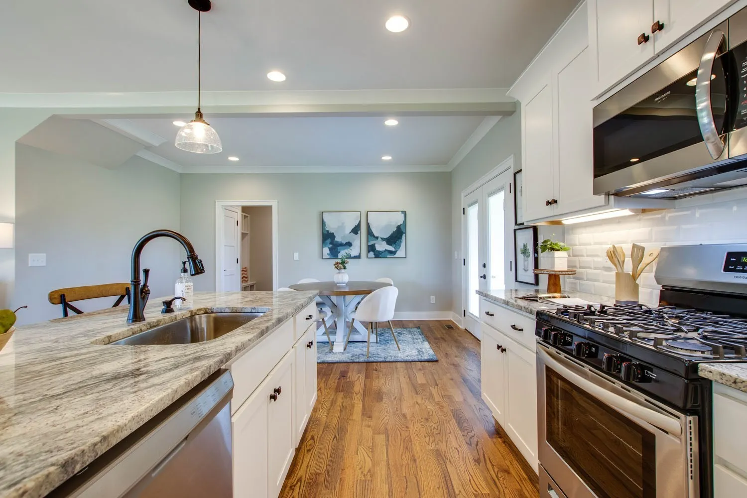 Modern farmhouse charm with hardwood floors, crown molding, and a chef’s kitchen featuring a granite island & subway tile backsplash. Spacious primary suite with custom closet, dual vanities, and oversized dual-head shower. Enjoy the convenience of a mudroom, built-ins throughout, and laundry off the primary. Relax on the covered porch with surround sound and take in the views—just minutes from two golf courses! Lot Next door available for sale.