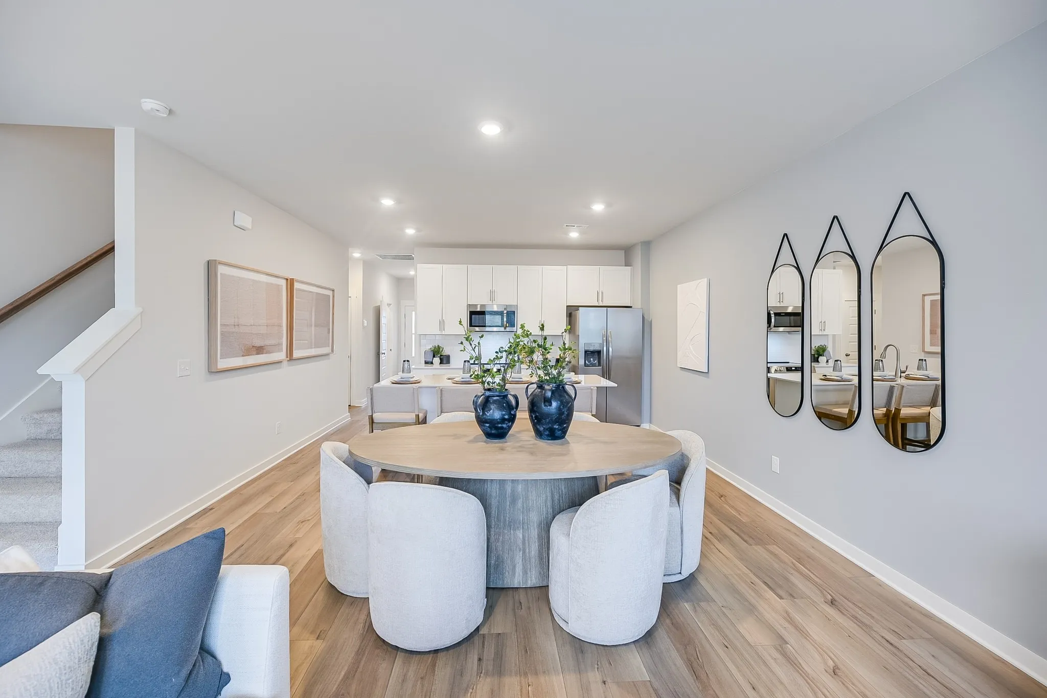 This new two-story townhome provides a low-maintenance design perfect for modern lifestyles. The first floor is host to an inviting open-concept layout that combines the kitchen, living and dining areas to maximize interior space, while all three bedrooms are located on the second floor for optimal comfort and privacy, including a lavish owner’s suite with a full bathroom and walk-in closet.