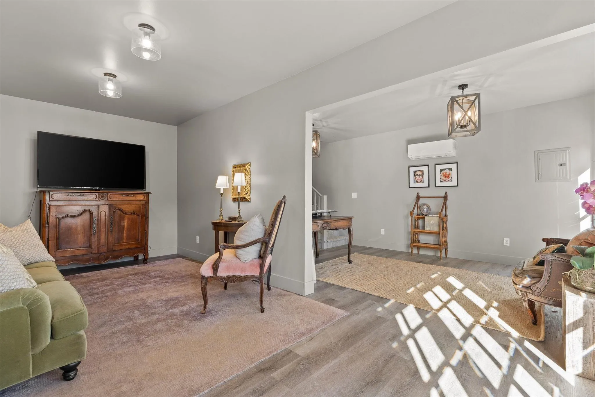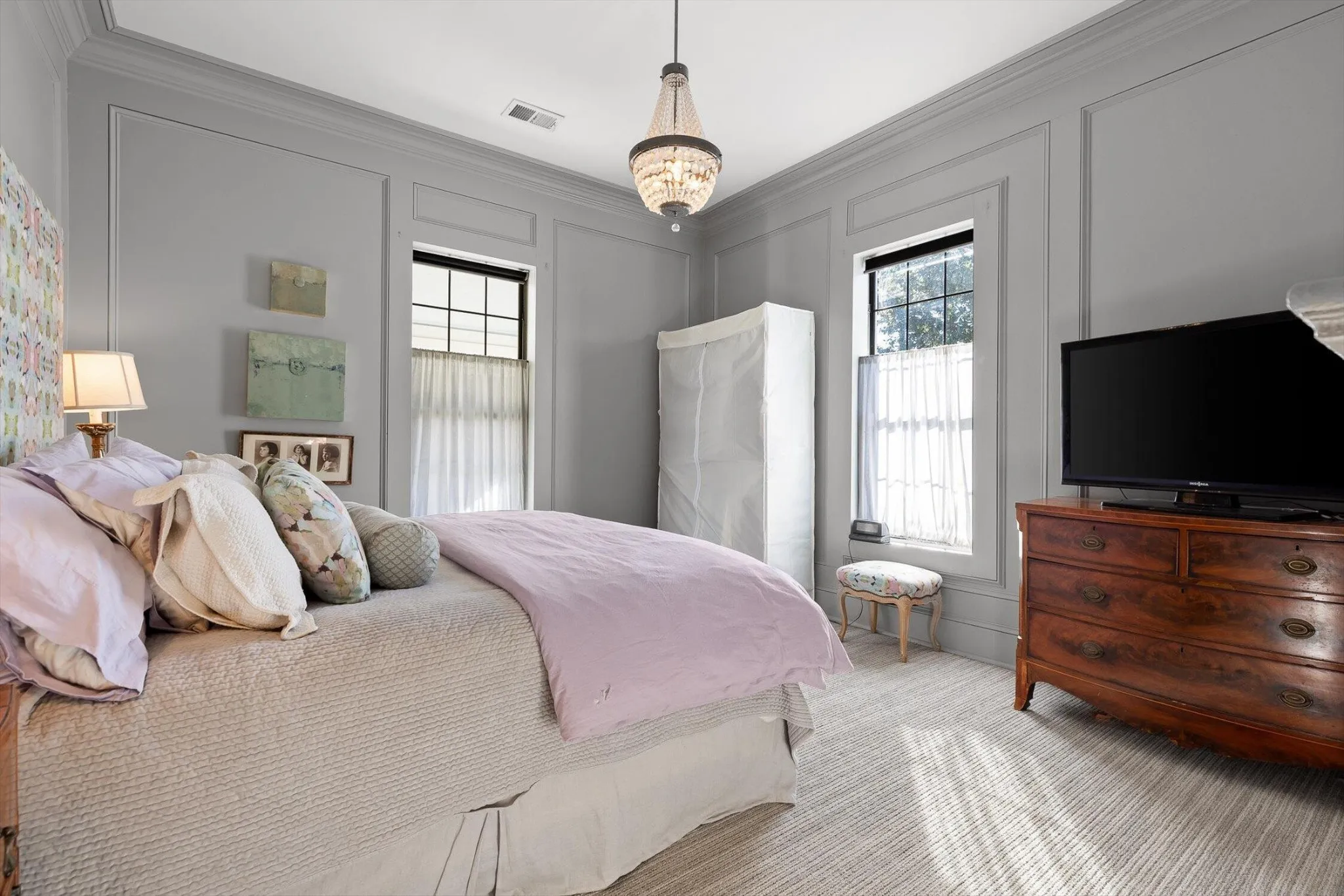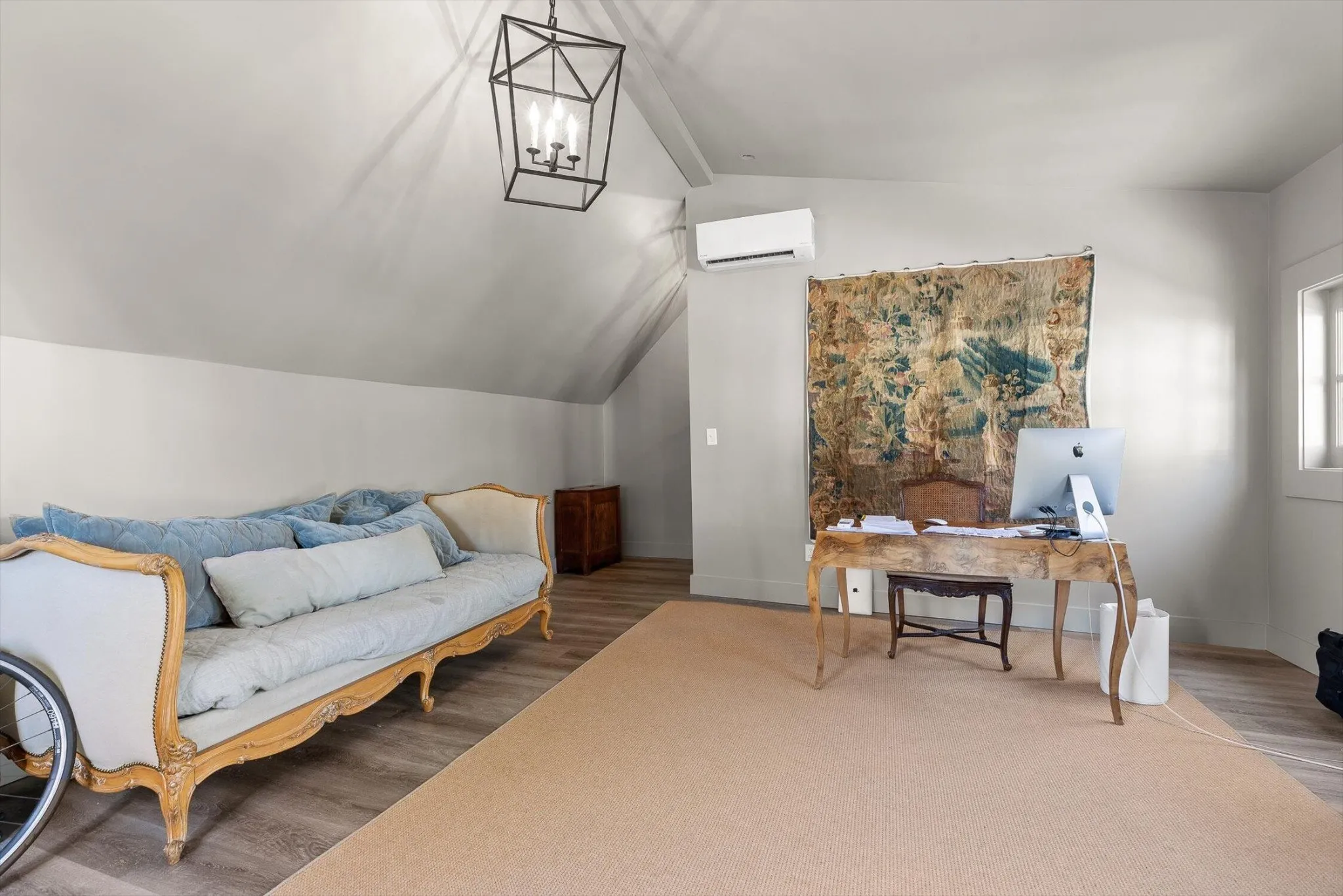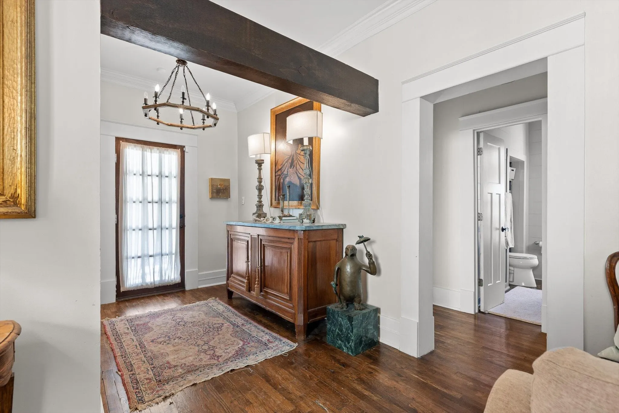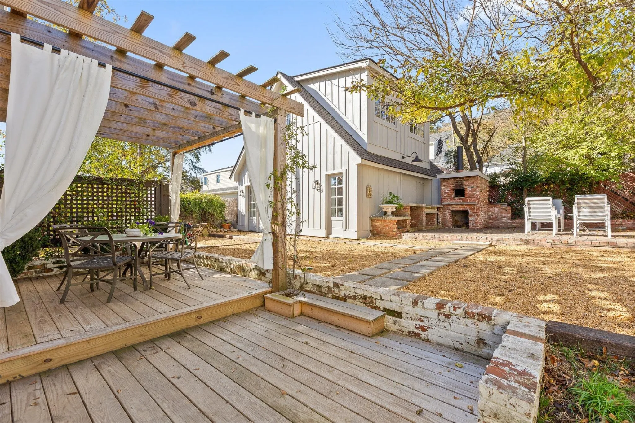 The main house features thoughtfully updated spaces that maintain the home’s historic integrity: 2 bedrooms, and 2 fully updated bathrooms including tiled showers. The kitchen provides a spacious environment for baking or entertaining, featuring custom cabinetry, gas range, floating shelves, ample countertop space, and a large island.