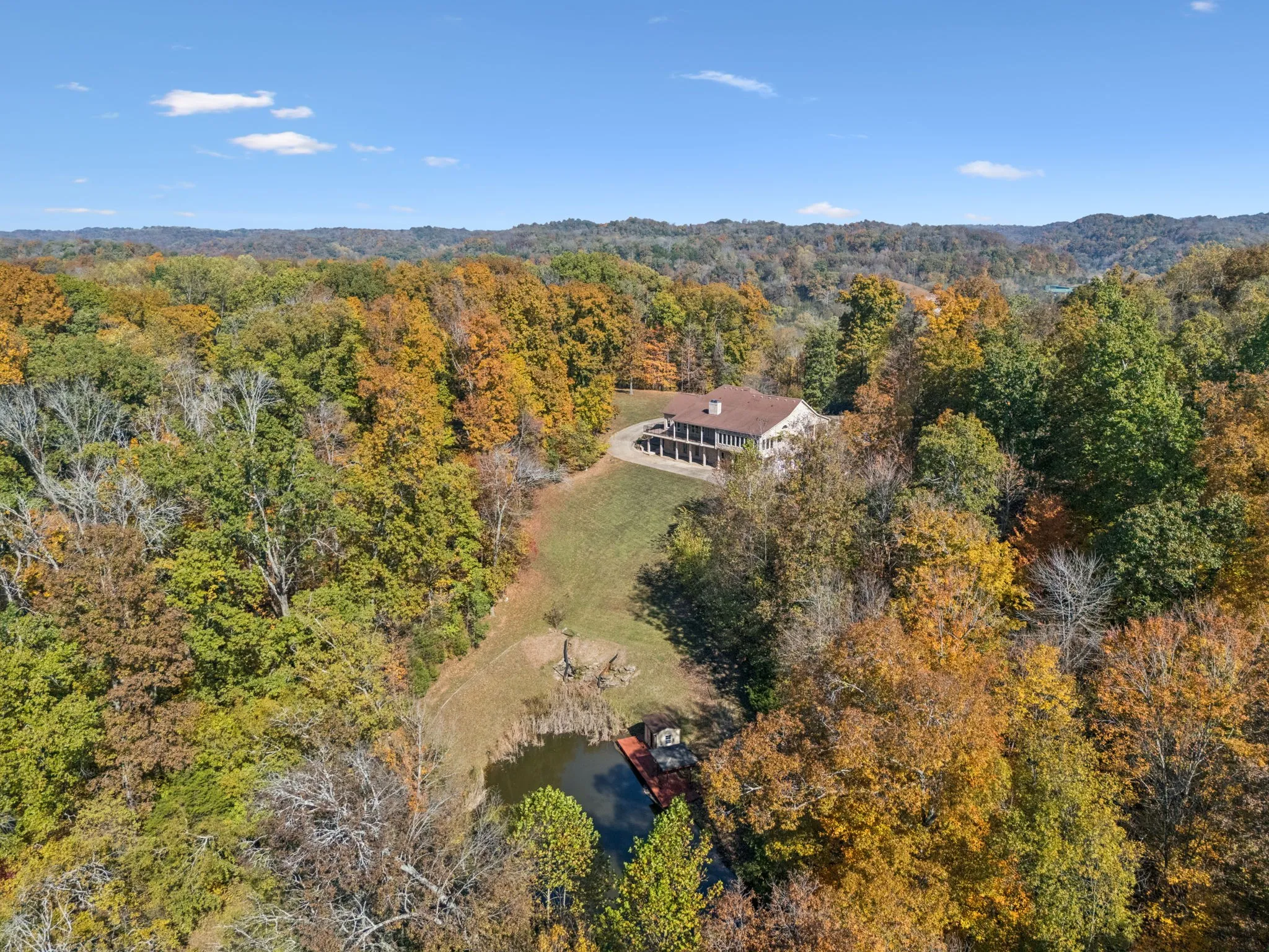 Perched atop a hill, this property offers breathtaking views of the surrounding rolling hills. Enjoy 9.47 acres of serene land with a picturesque pond, mature trees, and an RV pad with full hookups. For car enthusiasts or those needing extra storage, the home includes multiple-car garages on both the main and lower levels. Whether you envision relaxing by the water, exploring wooded trails, or entertaining with a backdrop of sweeping vistas, this estate delivers.
