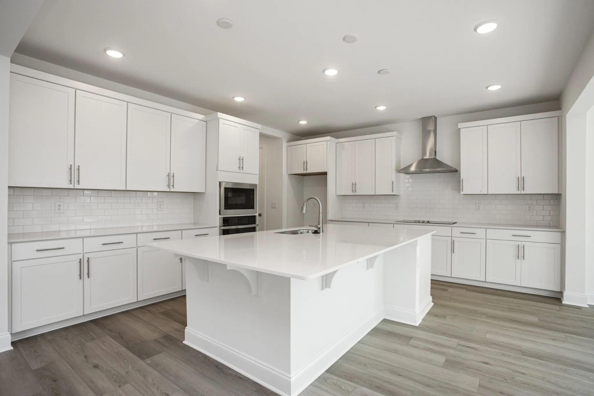 The GOURMET KITCHEN, appointed with all STAINLESS STEEL appliances and a large island, is OPEN to the LARGE GREAT ROOM. This expansive, seamless space is perfect for hosting gatherings, holiday feasts, or simply unwinding at home. A half bath is conveniently located downstairs for guests.