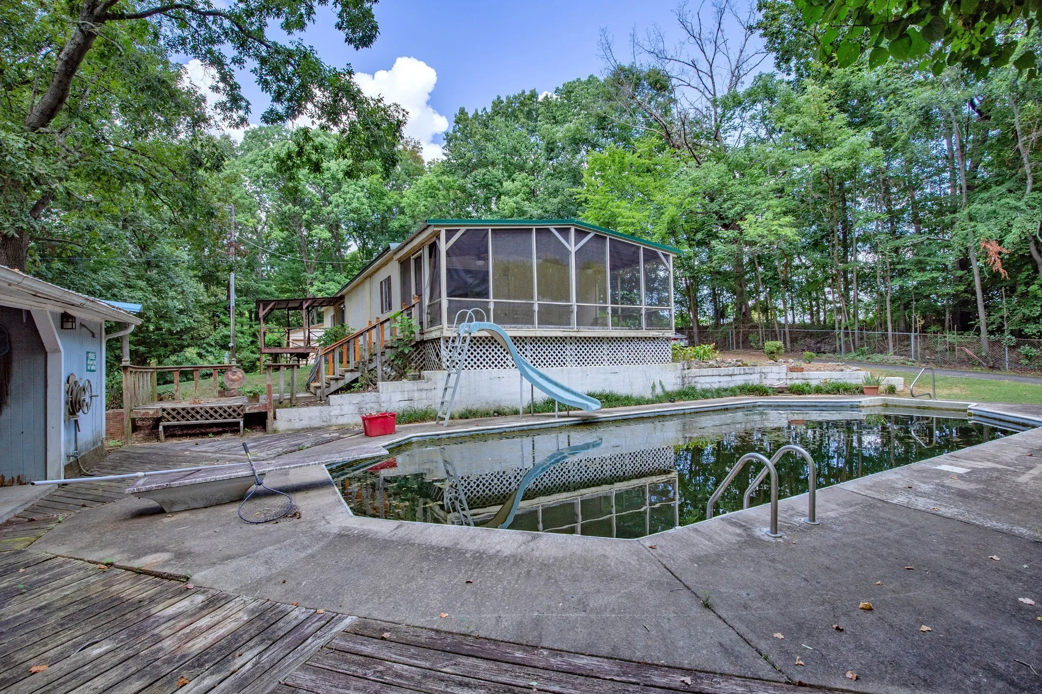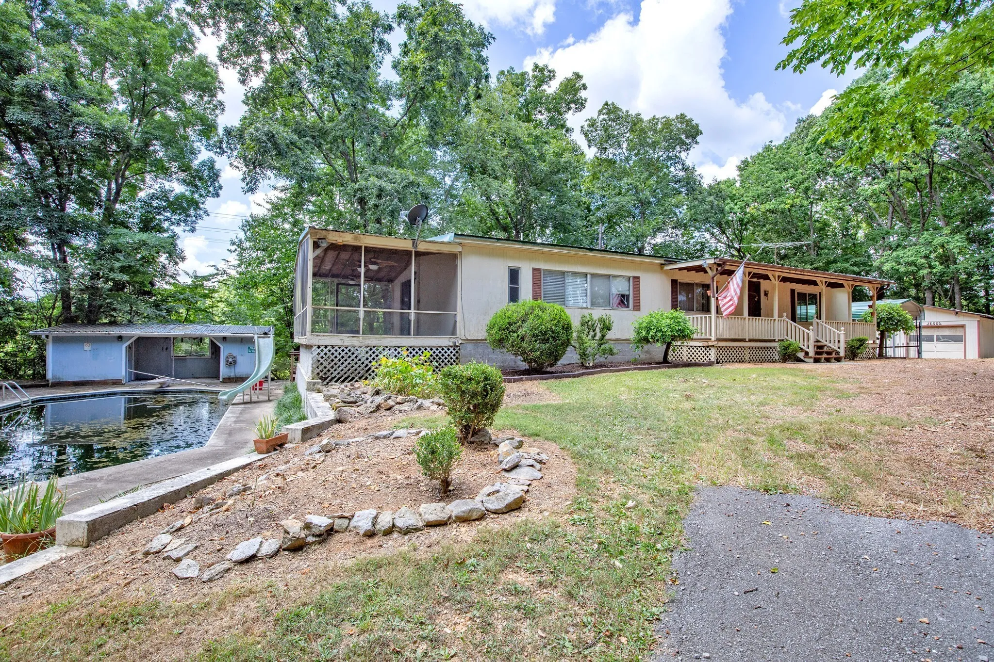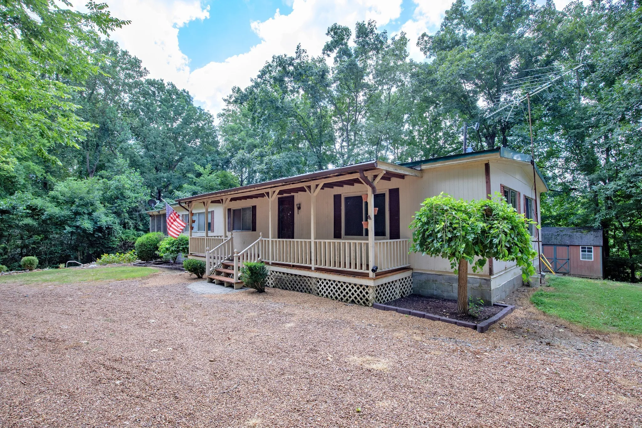 This manufactured home (with a permanent foundation) offers the perfect opportunity to remodel/repair to your taste or build your dream home from the ground up. Nestled just steps away from a well-known wedding & event venue (Fiddle Dee Farms), this property is conveniently located only 30 minutes from downtown Nashville, 35 minutes to the airport, and just 12 minutes to major grocery stores. Easy access to I-65 means you can enjoy both country privacy and city convenience. A long, tree-lined and gated driveway welcomes you to this private retreat, surrounded by mature trees. The property is already equipped with all utilities in place, making it ready for your next build. The former in-ground pool has been converted to a koi pond but can be restored or filled in. A spacious 30×40 shop with concrete floors and two garage ports is perfect for storage, hobbies, or a home-based business. Whether you’re looking to renovate, build, or simply enjoy the natural beauty, this property offers incredible potential in a prime location.