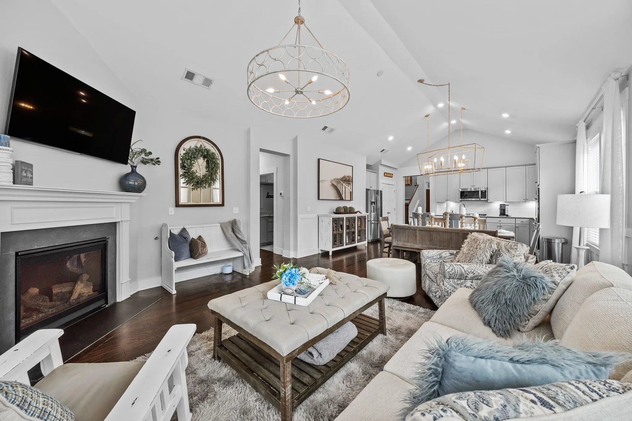 Step inside to an inviting open-concept layout filled with natural light and elevated finishes. The upgraded kitchen shines with modern fixtures, ample storage, and a spacious island—ideal for entertaining or everyday living. The living and dining areas flow seamlessly, creating a warm, welcoming space that makes this home feel instantly “just right.”