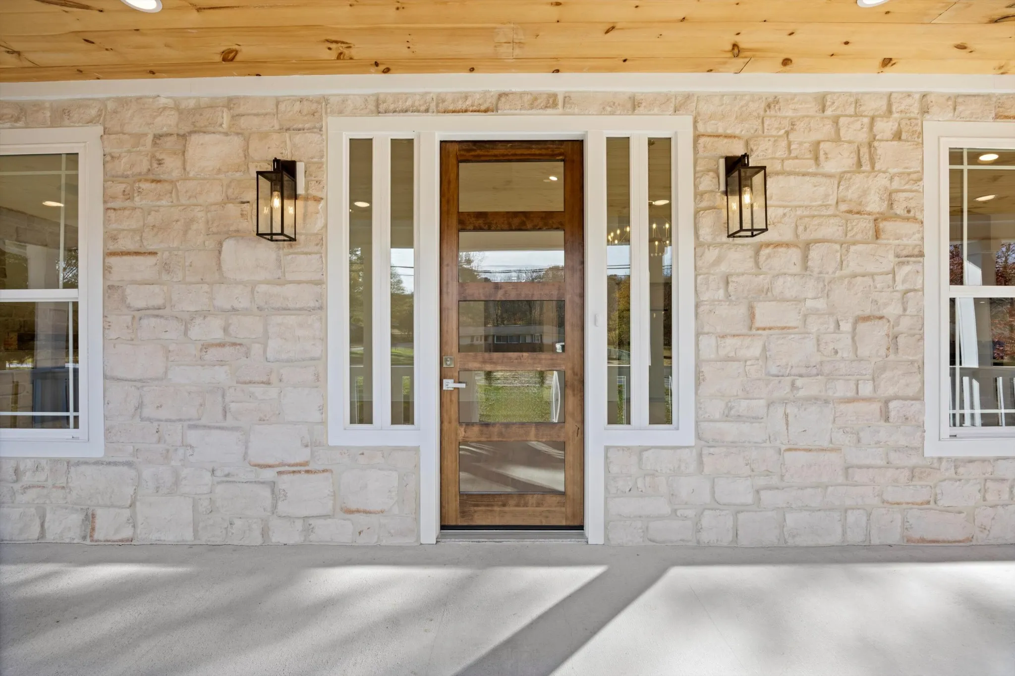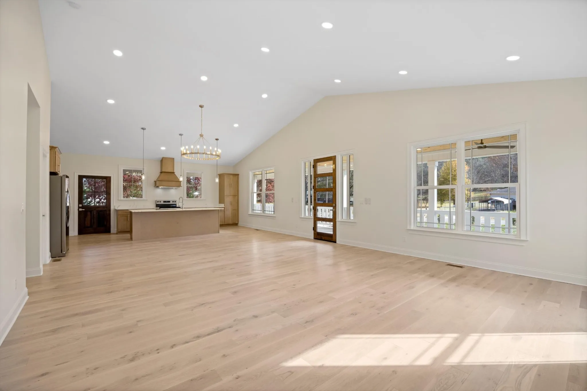 New Construction Modern Farmhouse. Welcome to this stunning 2025-built modern farmhouse, where thoughtful design meets timeless craftsmanship. Offering 2,380 sq ft of bright, open living space, this 4-bedroom, 3-full-bathroom home delivers the perfect blend of luxury and everyday comfort. Step inside to soaring vaulted ceilings and an abundance of natural light cascading across wide-plank hardwood floors. The heart of the home is the expansive great room, anchored by a striking stone fireplace with a custom mantel — ideal for cozy evenings or entertaining on a grand scale. Flow seamlessly into the gourmet kitchen featuring an oversized island with seating, quartz countertops, a custom wood hood, stainless steel appliances, and a walk-in pantry. A spacious dining area and adjacent living room create the ultimate open-concept layout everyone desires. The split-bedroom floor plan ensures privacy. The serene primary suite is a true retreat with tray ceilings, a spa-like ensuite boasting dual vanities, a fully tiled walk-in shower, and an enormous walk-in closet. Three additional generously sized bedrooms (one with its own ensuite bath) and a third full bathroom provide flexibility for family, guests, or a home office. Luxurious finishes throughout, matte black fixtures, designer lighting, and warm wood accents. Oversized 2-car garage (23'11'' × 25'0'') Covered front porch with tongue-and-groove ceiling and ceiling fans — perfect for rocking-chair mornings. Private lot with fenced backyard and plenty of room to add a pool, shop, or garden. Energy-efficient construction and low-maintenance exterior (Hardie + stone).\r\n