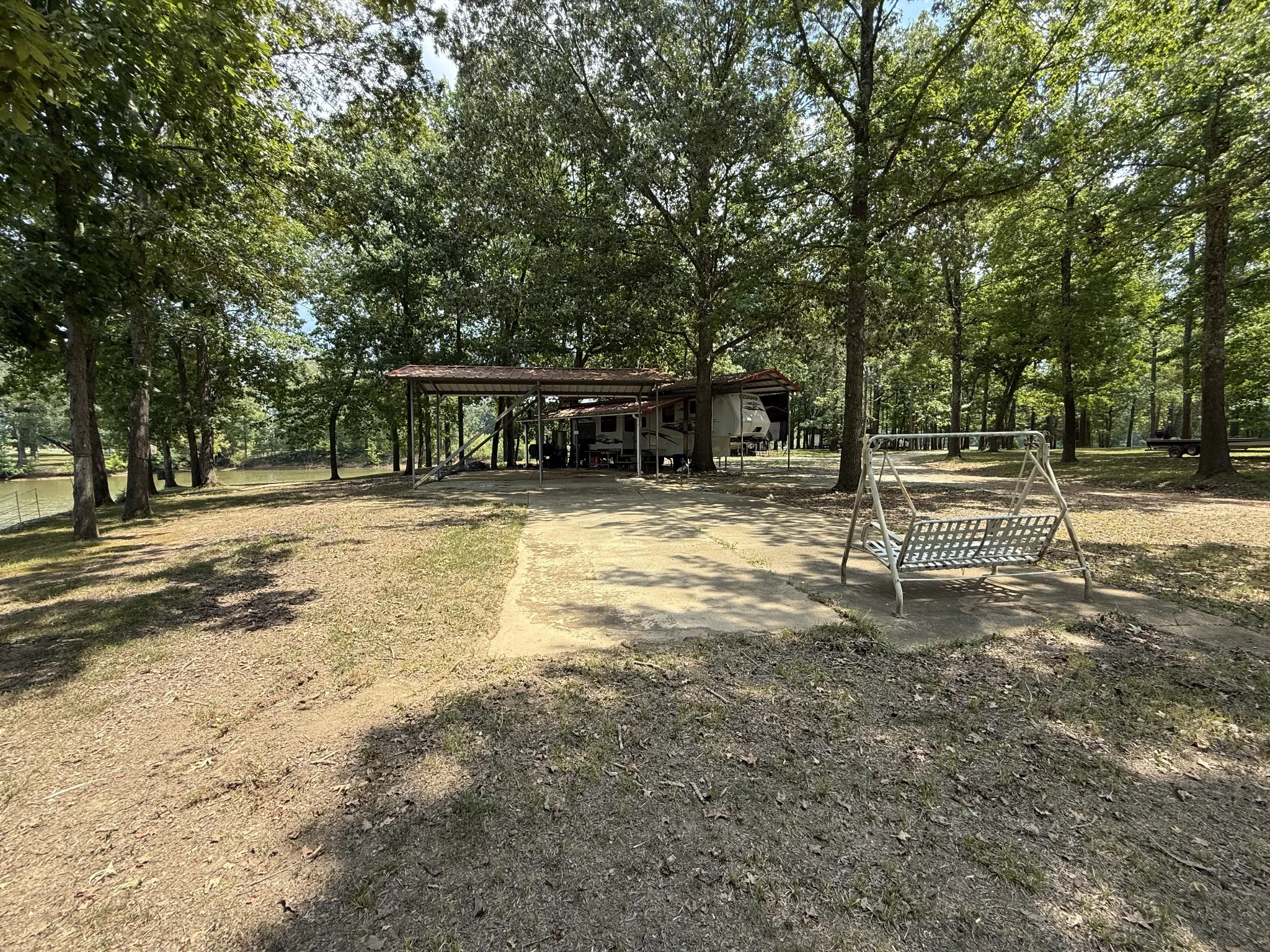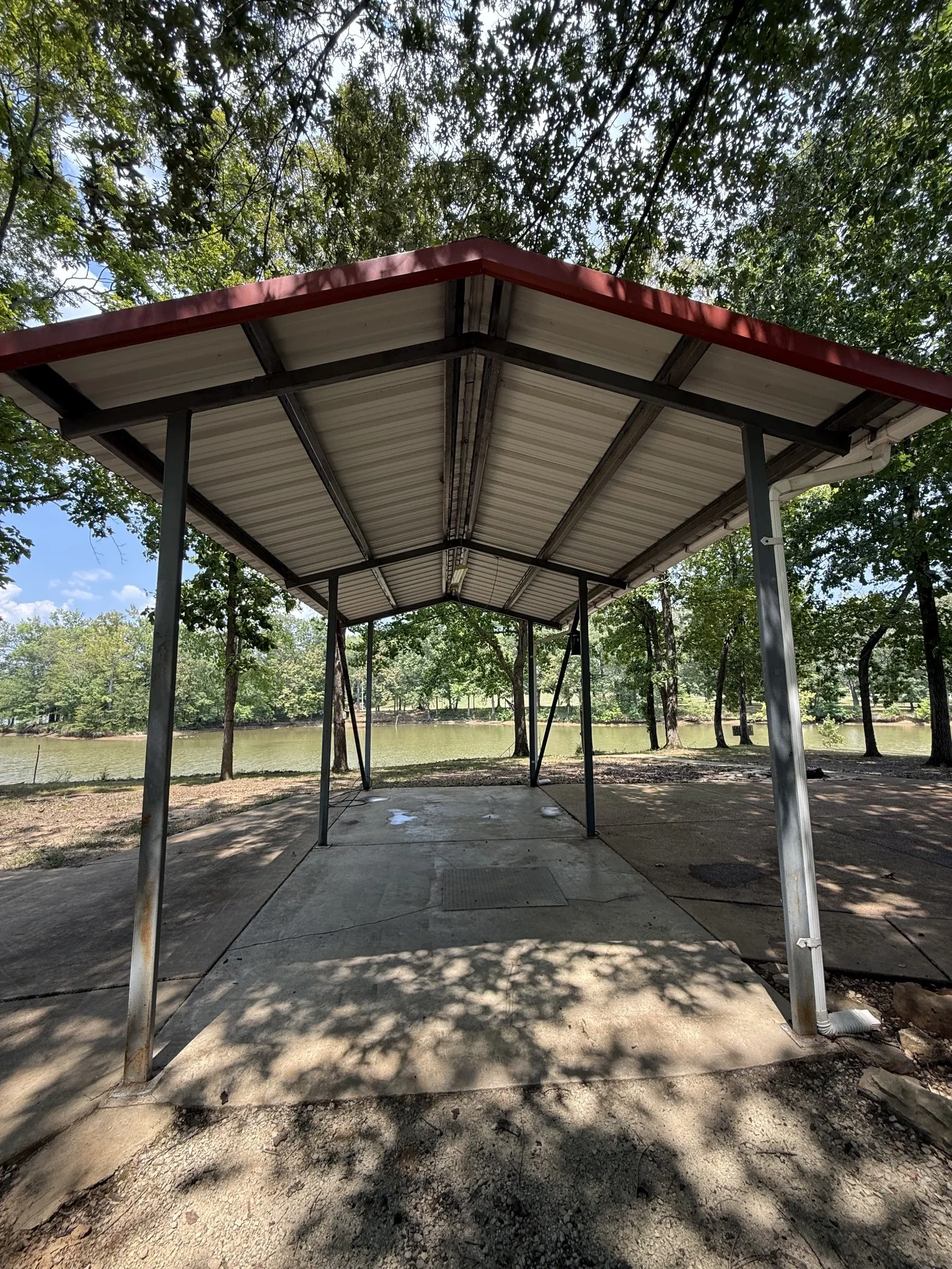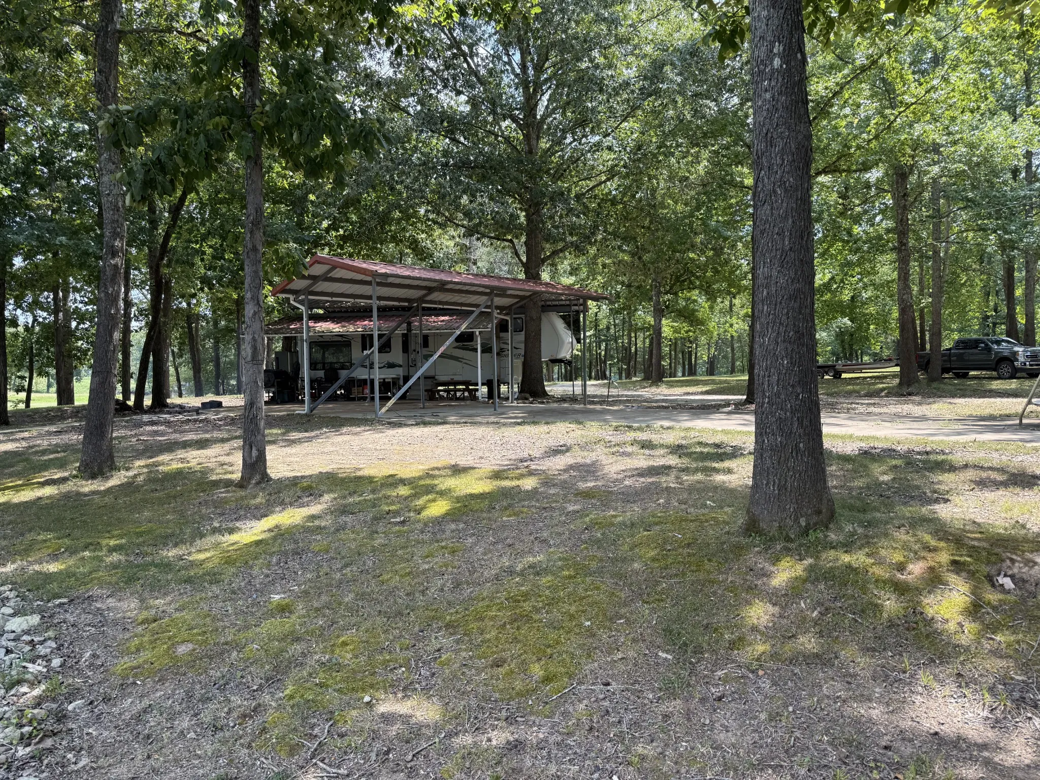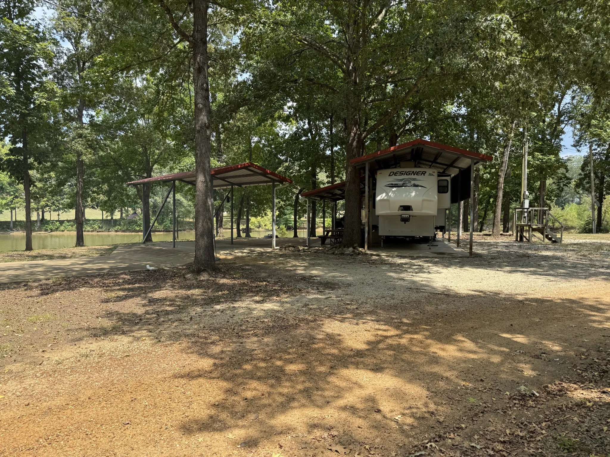 3 covered pavilions (two welded steel, one bolted steel) — great for outdoor kitchens, gatherings, or shaded parking