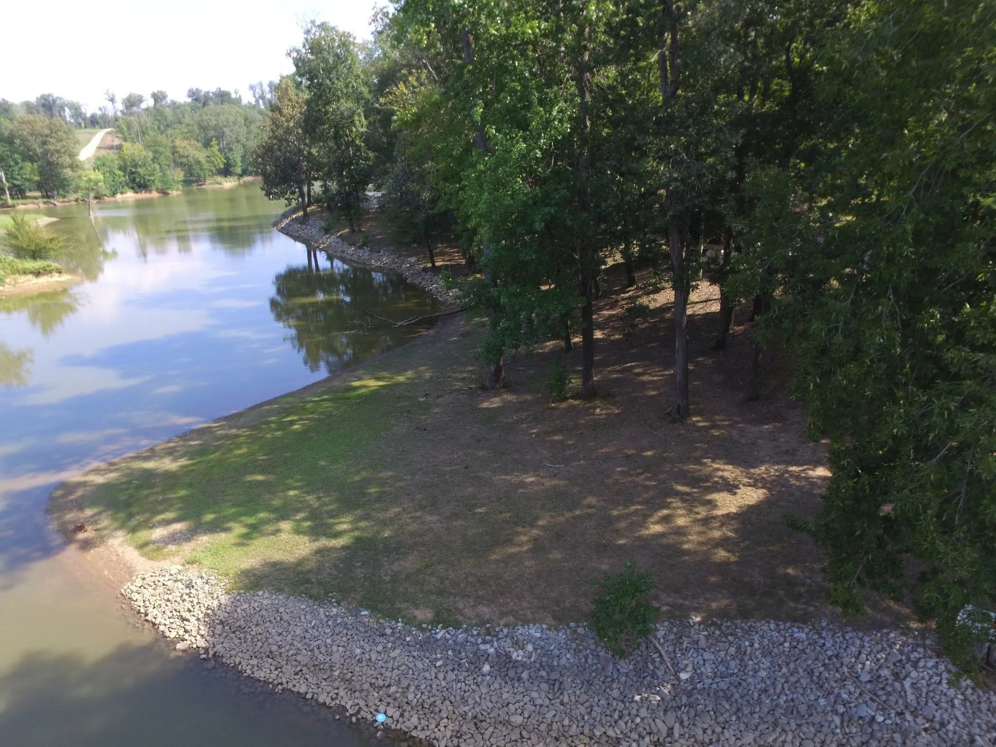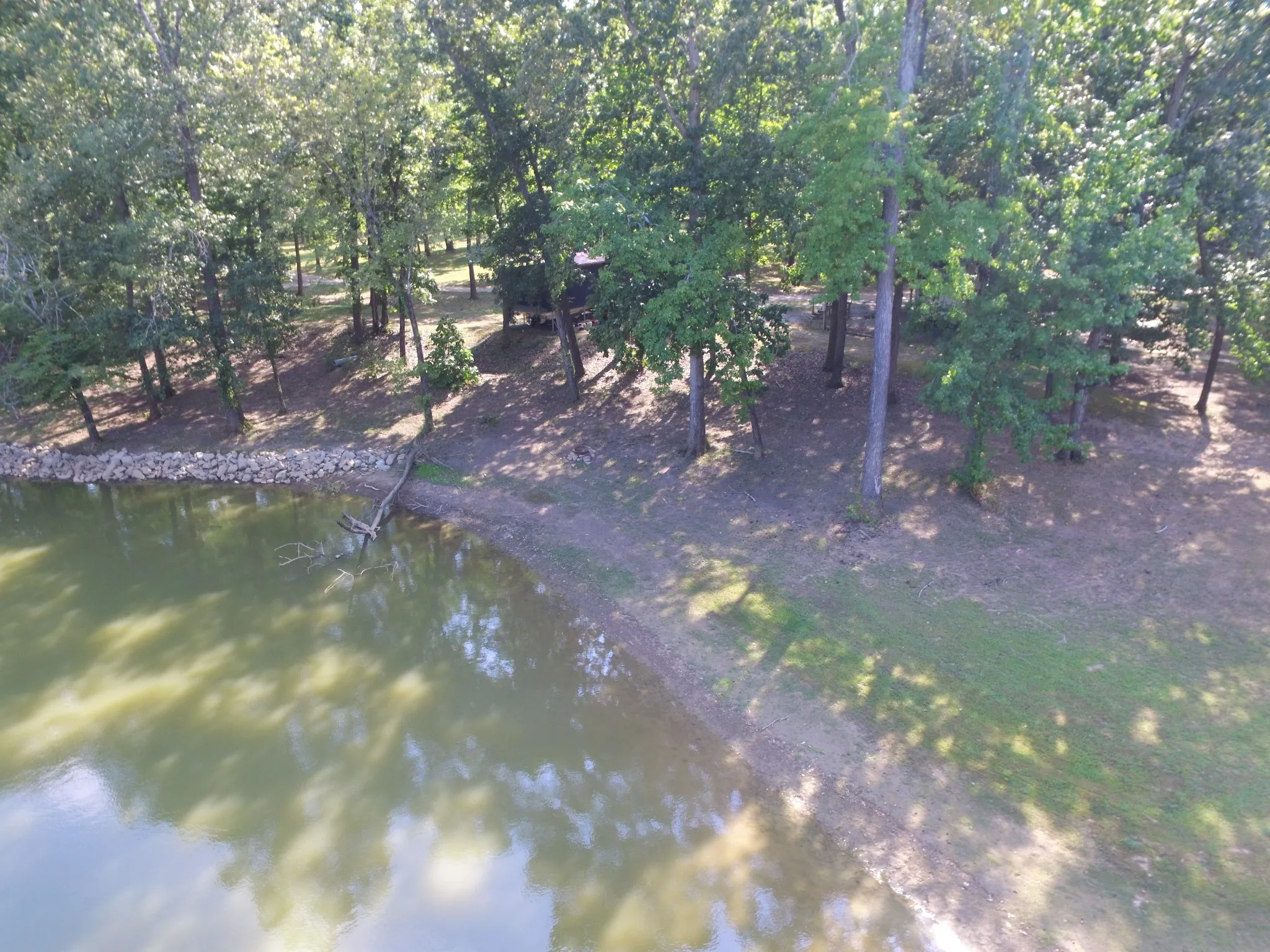 Heavily shaded by mature hardwood trees