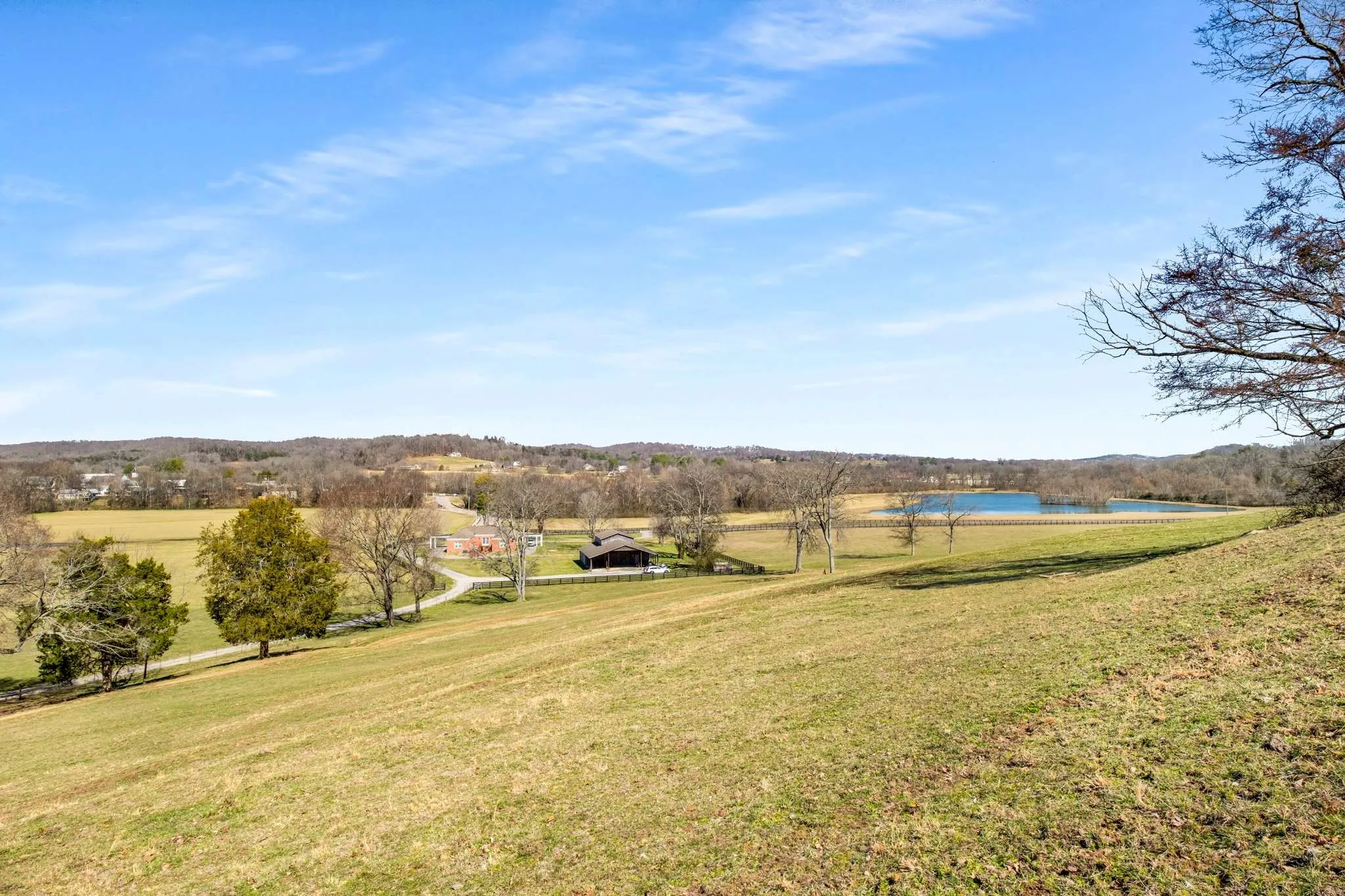 Landmark Leiper’s Fork, 103 acres, the ‘front’ portion of 208 acres available (See 3317 Floyd Rd, MLS:2797263). Water abounds: Leiper’s Fork of the West Harpeth River, five acre lake (8 foot depth) and pond. River bottom to ridge tops, providing incredible views! Partial fencing. Caretaker’s home of 2,500 sq ft, cattle and equipment barns and workshop. Preliminary septic for 8 and 6 bedroom sites. Additional sites available. City water.