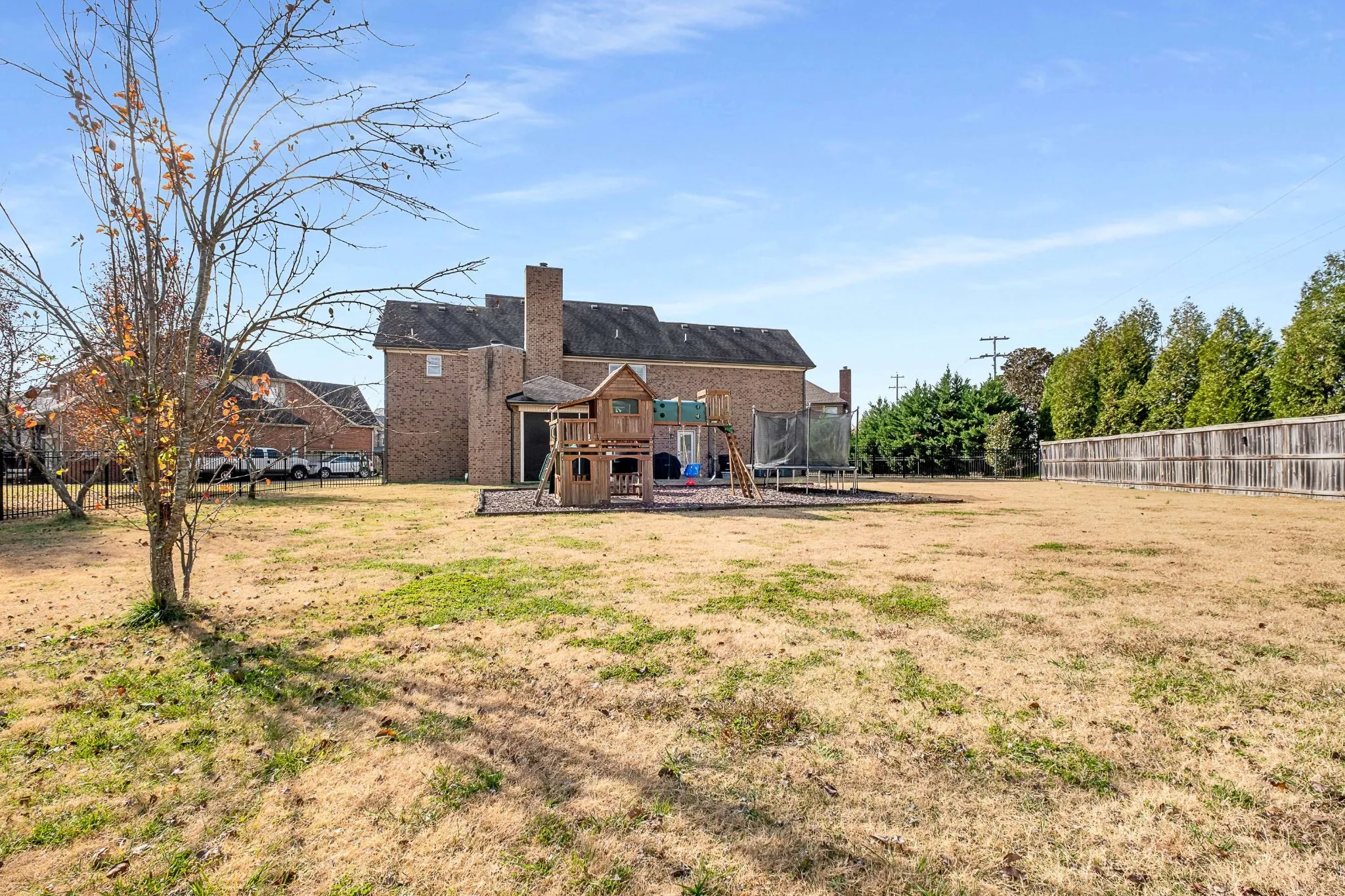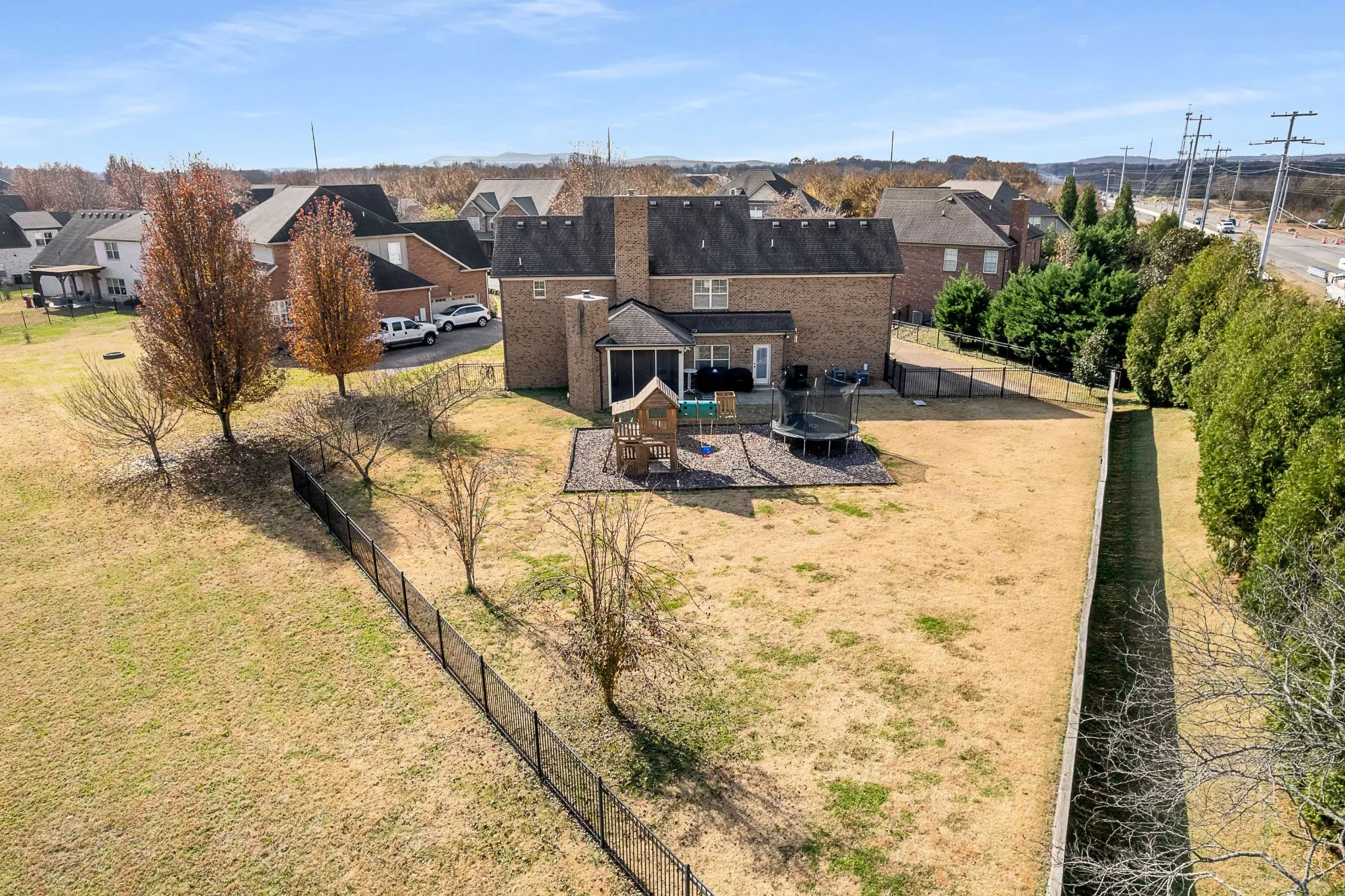 Discover timeless elegance in this stunning all-brick home perfectly situated on a quiet cul-de-sac in Murfreesboro, TN. Step into a grand entry foyer where rich wood flooring and soaring ceilings set the tone for warmth and sophistication. The open-concept layout connects the living room, dining room, and gourmet eat-in kitchen – featuring granite countertops, sleek cabinetry, recessed lighting, and stainless-steel appliances. A cozy gas fireplace adds charm in the living room, while the formal dining room shines with natural light and classic column accents. The main-level primary suite offers ultimate retreat with a luxurious bath, double vanities, separate tub and shower, and a huge walk-in closet. Upstairs includes three spacious bedrooms, two full bathrooms, incredible storage with four attic access points, and a large bonus room wired for surround sound – perfect for a movie room, playroom, or home theater. Enjoy year-round outdoor living on the screened-in porch with its own fireplace and TV setup, overlooking a large fenced backyard on half an acre. The oversized driveway and side-entry two-car garage add excellent curb appeal and parking. Located in the highly desirable Weston Park community, you’ll appreciate three neighborhood pools, a playground, and family-friendly HOA events. With easy access to New Salem Hwy and close proximity to top-rated schools, shopping, and dining, this home blends comfort, convenience, and luxury. Experience the peaceful cul-de-sac lifestyle and exceptional amenities this beautiful Murfreesboro home has to offer – schedule your private showing today!