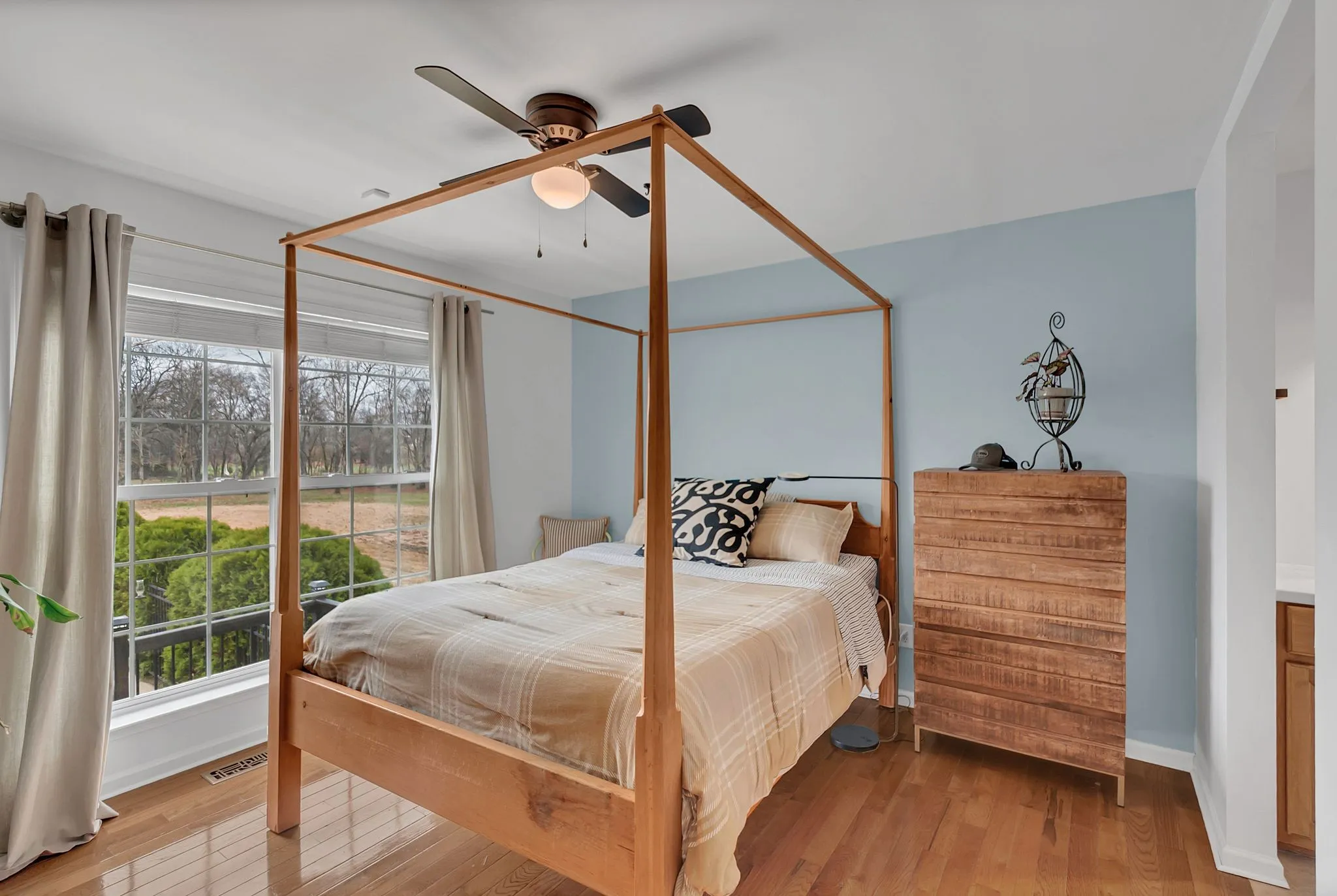 Inside, sun-filled rooms, high ceilings, hardwood floors, fresh paint, updated lighting, and a cozy fireplace create a warm, inviting atmosphere. The updated kitchen shines with a large island, granite countertops, stylish backsplash, and abundant cabinetry.