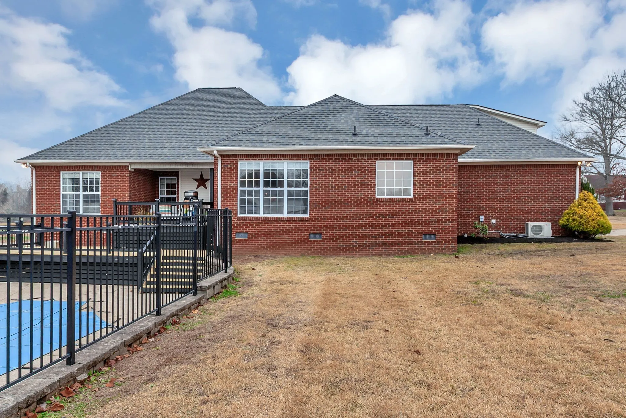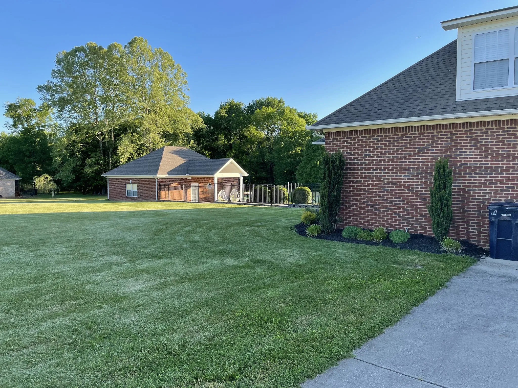 A notable highlight of the property is the 884-square-foot, heated and cooled, detached all-brick building featuring high ceilings and high-speed internet wiring. This highly versatile space is well suited for a private gym, home office, home theater, workshop, or additional car storage.
