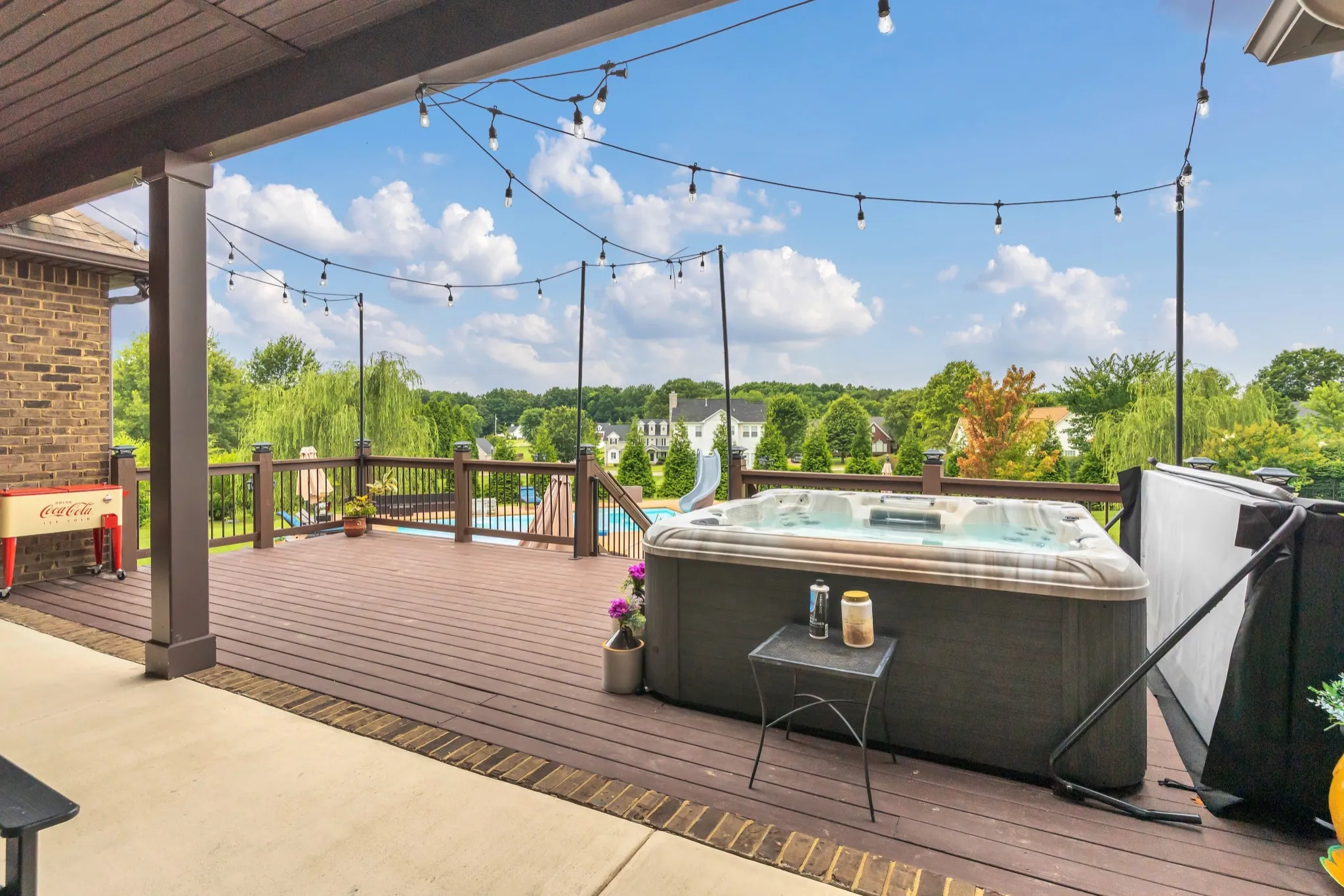 Welcome to your dream home! This beautifully designed 4-bedroom, 3.5-bath, 3,256 sq ft residence offers luxury living inside and out. From the moment you step inside, you’ll notice the thoughtful layout, elegant finishes, and spacious design perfect for both comfortable living and effortless entertaining. Interior Highlights: Open-concept living areas with abundant natural light, Gourmet kitchen featuring upgraded appliances, ample counter space, and a large island, Primary suite on main, with a spa-like bath, double vanities, separate tub and shower and generous walk-in closet, Three additional bedrooms offering versatility for guests and family. Modern flooring and updated lighting throughout, Dedicated laundry space, Ample storage and walk-in closets, Attached garage and Beautiful curb appeal in a desirable neighborhood. Furniture is negotiable, Mounted TV’s to remain. Exterior is stepping into your private oasis! The backyard features a sparkling saltwater pool, waterfall and relaxing hot tub, perfect for unwinding after a long day or hosting unforgettable gatherings. HOA is also approved for a guest house if desired. Whether you’re looking for luxurious everyday living or the perfect home for entertaining, this property delivers it all. Move-in ready, beautifully maintained, and designed with lifestyle in mind.