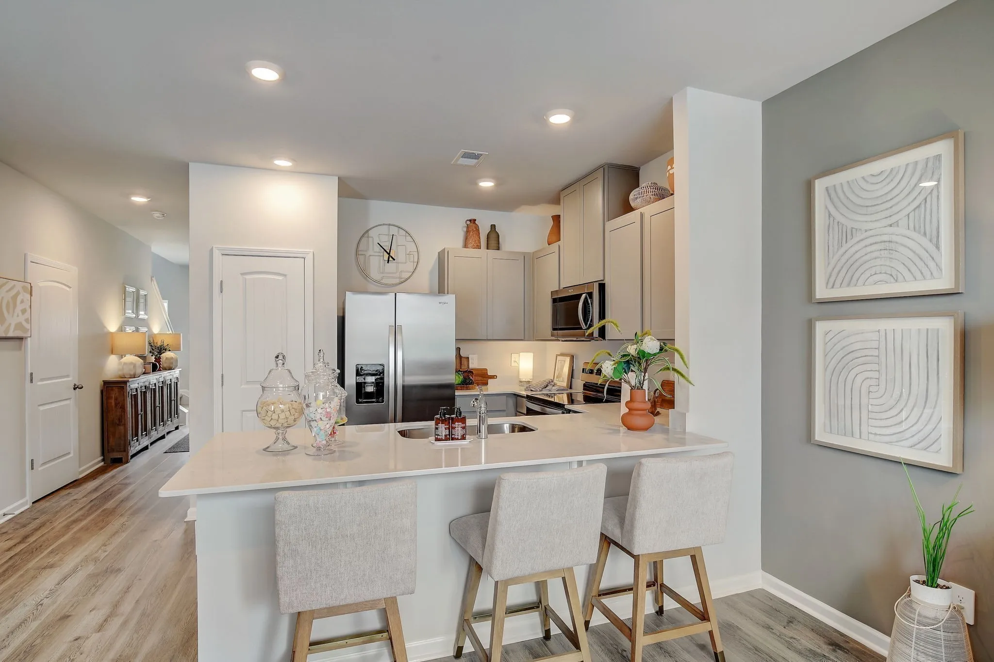 Nestled in a quiet community, this townhome invites you into a charming 3 bed/2.5 bath floorplan located in a neighborhood that offers recreation and fun for everyone. Designed for modern lifestyles, it has amenities galore: including pool, walking trail, playgrounds, sidewalks, and streetlights. This is an END unit! An airy and open concept downstairs seamlessly connects living room, dining area and kitchen. The kitchen includes elegant countertops and stainless appliances, what everyone is looking for now! The second floor includes spacious bedrooms designed with comfort in mind. The primary bedroom offers ample closet space and a separate bathroom. Additional highlights include convenient laundry facilities upstairs and 2 bedrooms/bath upstairs. Smart home features and this unit backs up to a tree line. The community is 4 miles east of I-65, great location for a commute or a road trip! Don’t miss the chance to tour in Saddle Trace!