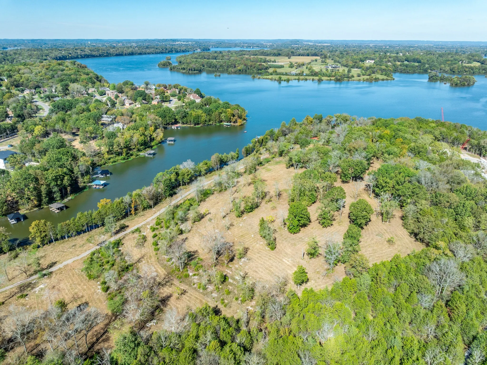With rolling hills that cascade toward the shoreline and sweeping views of the lake, this property is the ideal canvas for a world-class private estate or legacy compound. This parcel is already approved with four separate dock permits (one for each 5-acre surveyed tract), providing unmatched flexibility. Each tract enjoys approximately 195 feet of water frontage and a minimum of 15 feet water depth year-round—perfect for large vessels, swimming, and recreation. A private gated road from Nonaville Road runs the full length of the acreage, ensuring exclusivity and privacy. The homesites themselves are invisible from the road, creating a true retreat that feels worlds away—yet is only 25 minutes to Nashville International Airport and the vibrancy of downtown. City sewer is available at the road for convenience and future development.