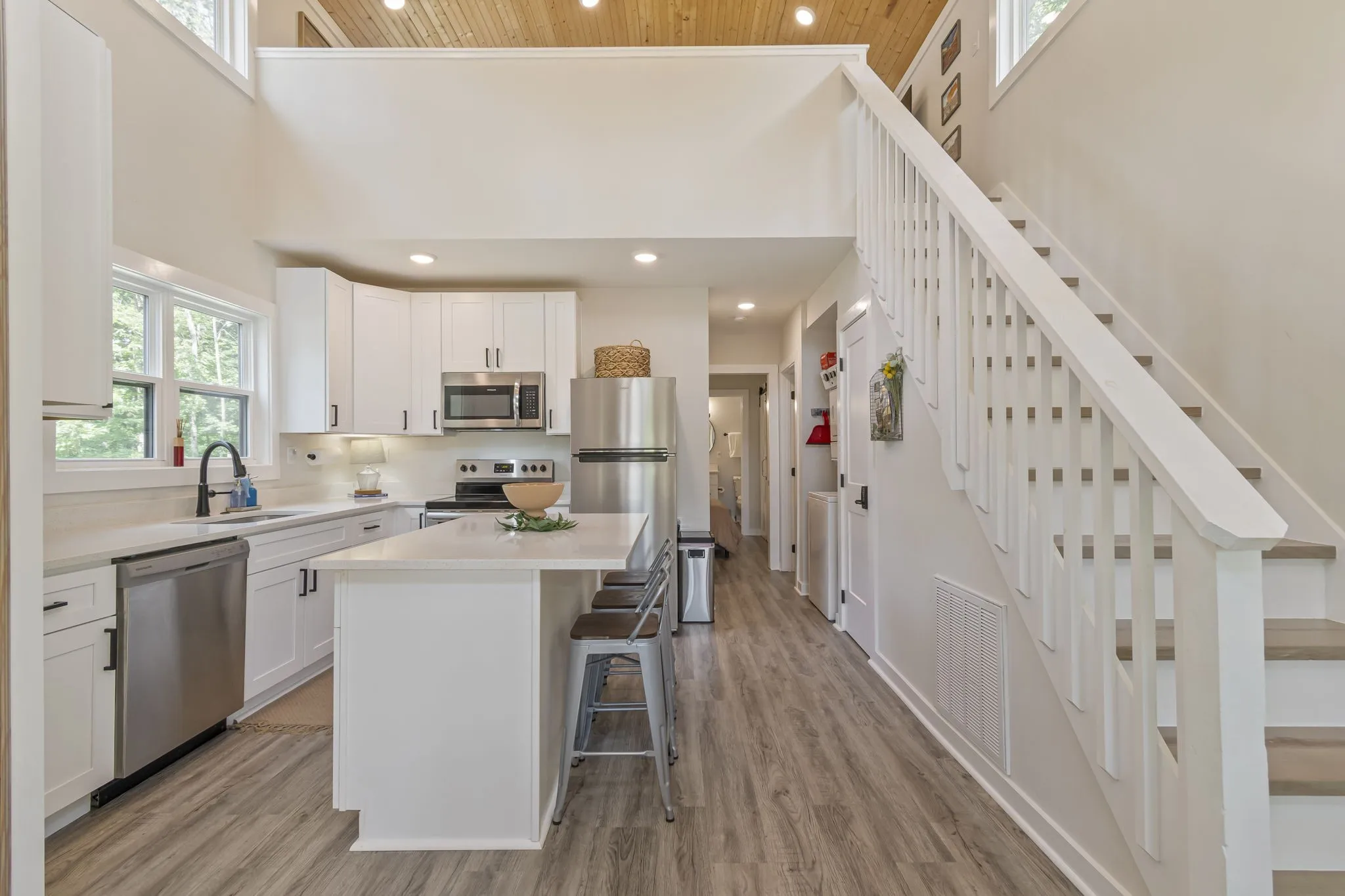 Welcome to your serene mountain escape in the coveted gated community of The Retreat at Water’s Edge close to Sewanee, TN. This beautifully designed and fully furnished tiny home offers a light-filled, airy ambiance with soaring ceilings, oversized windows, and a stylish, open-concept layout. The modern white kitchen features sleek cabinetry, stainless appliances, and an eat-in island—perfect for morning coffee or entertaining.