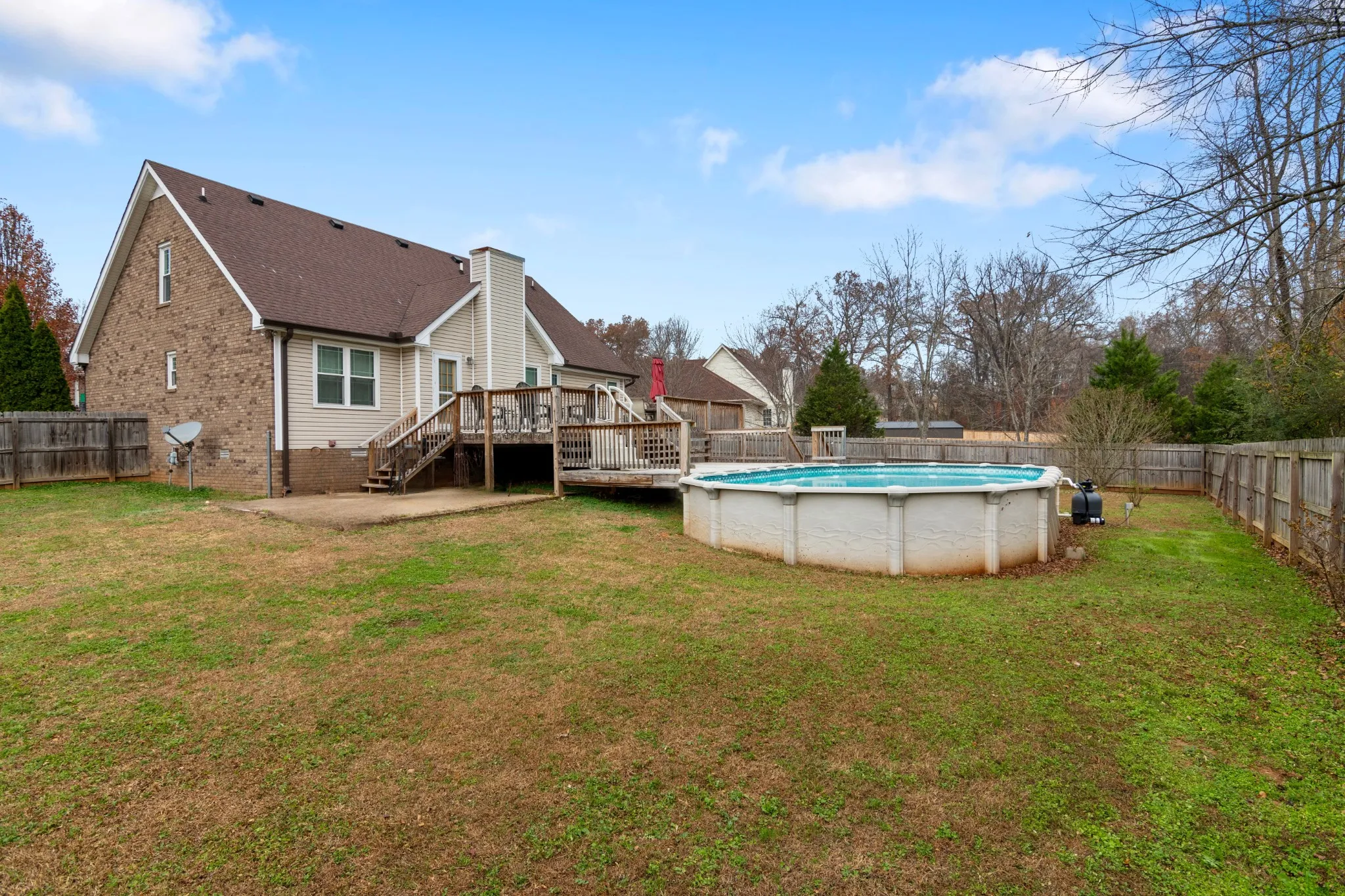 Step inside this beautifully updated 4 bedroom, 2.5 bath home offering 2001 square feet of comfortable, move in ready living. The kitchen shines with granite countertops and light flows right through new windows into the main living area, where fresh paint and new flooring create a bright, cheerful vibe. The updated primary shower adds a touch of spa like luxury, and the generous closet space keeps everything organized. Outside, the large backyard is made for fun with an above ground pool and plenty of space to relax, grill, and enjoy sunny days. The exterior of the home is also equipped with trim lights, making it ready for every holiday all year long! Conveniently located near Fort Campbell this home blends style, updates, and everyday practicality in one great Clarksville location.