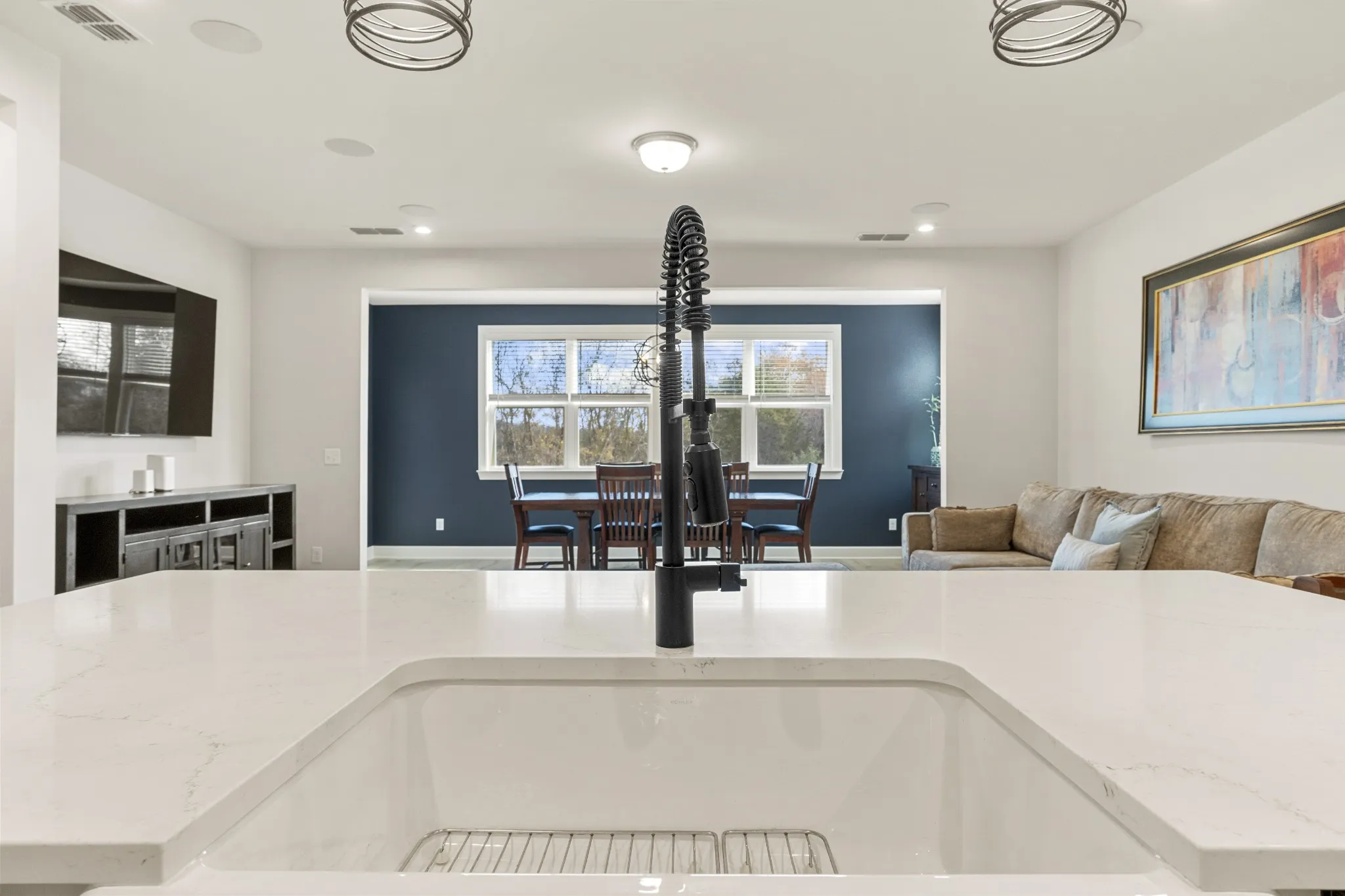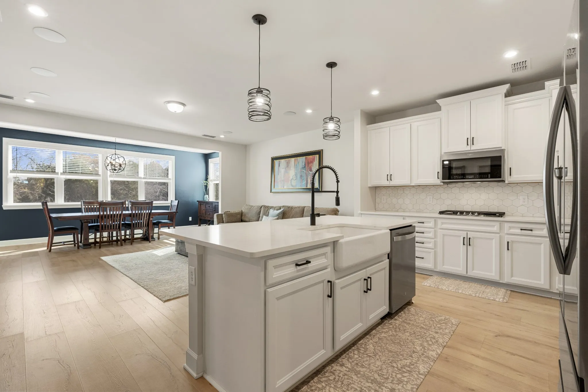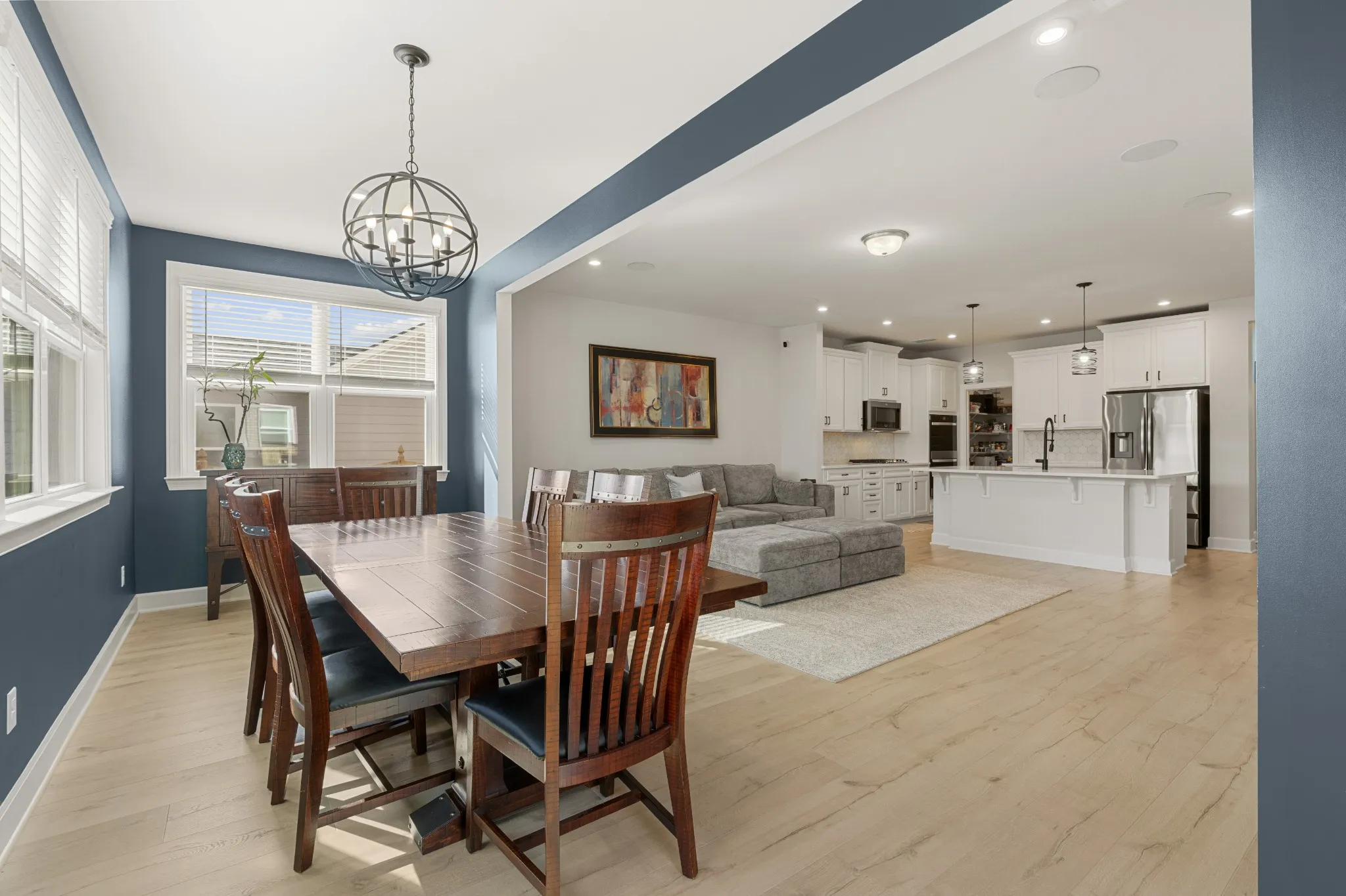 • Dining area fits long or extendable table, custom accent wall