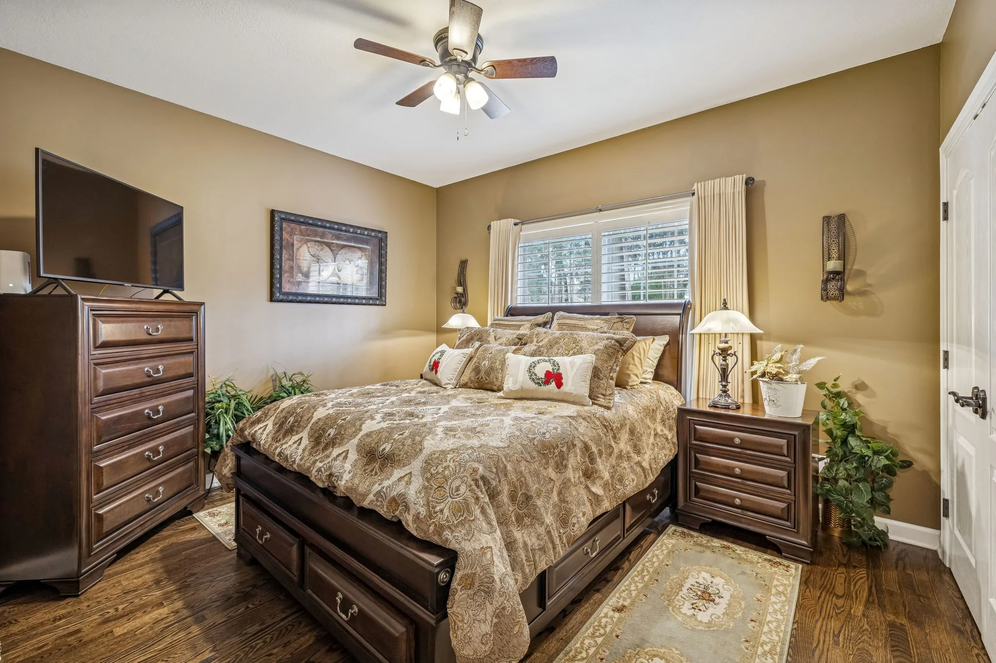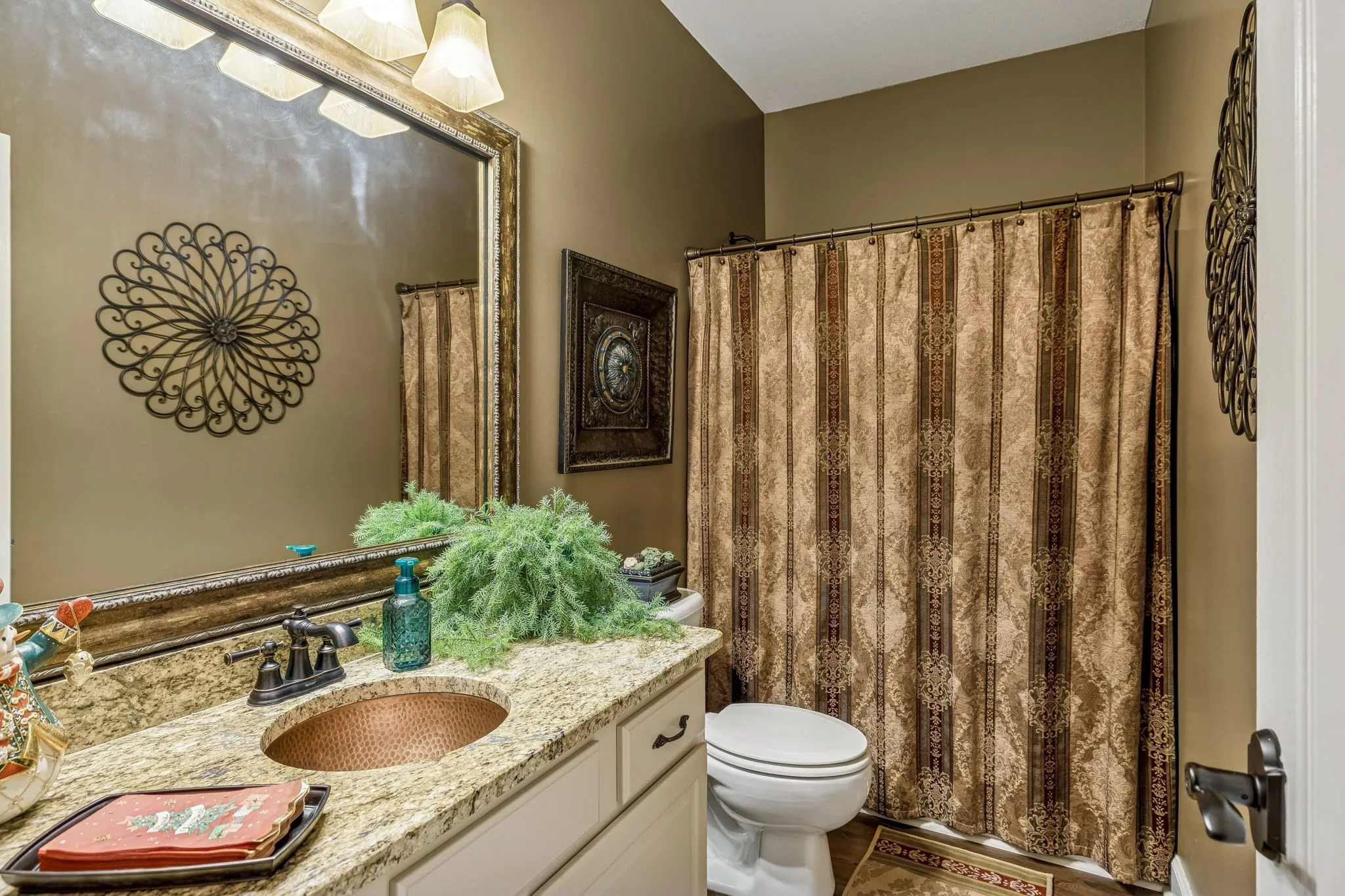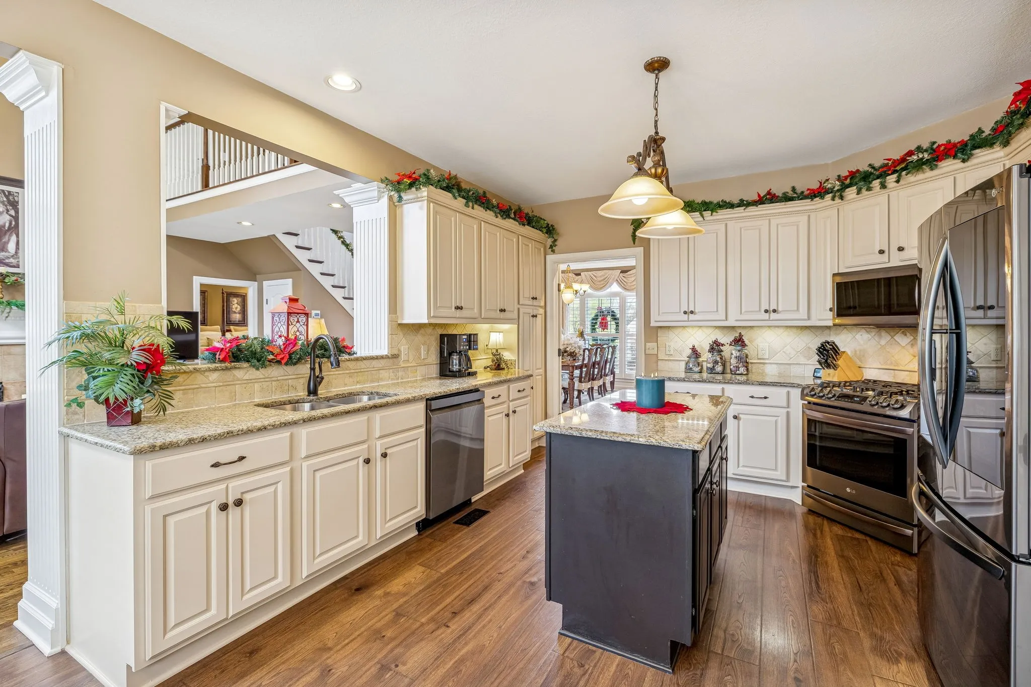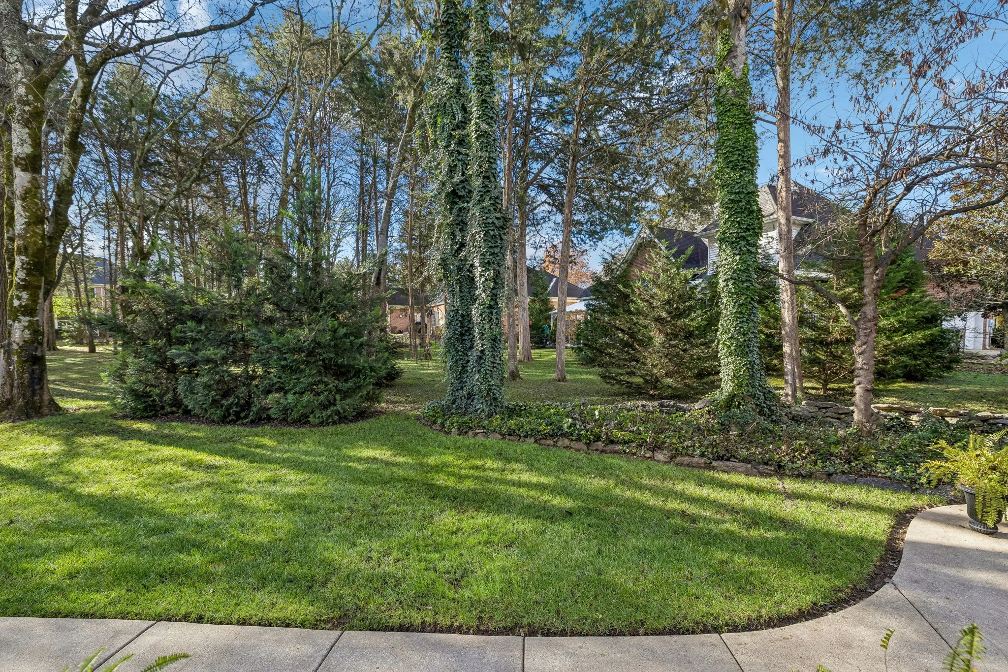 Set on almost half an acre with beautiful landscaping & towering trees, this elegantly updated home blends high-end finishes with effortless comfort in one of the area’s most desirable locations! Step into a grand 2 story living room with high ceilings & fresh décor, flowing across newly sanded & stained hardwoods after removing all downstairs carpet & replacing every lower-level floor with hardwood, plus new flooring in the kitchen, laundry room, & both downstairs baths. The fully remodeled eat-in kitchen features a center island, granite counters, customized cabinetry, & all new appliances from Ferguson’s, while the remodeled bathrooms showcase hand-hammered copper sinks & all new plumbing fixtures, including a stunning master bath transformation. The main floor offers a spacious master suite with two walk-in closets, plus an additional bedroom with its own full bath. Upstairs includes two bedrooms, a full bath & half bath, & brand-new carpet, along with a large bonus room over the garage with its own half bath. Major upgrades include a new roof, fully encapsulated crawlspace, gutter filters, newer heating & air units, a newer water heater, replaced smoke & carbon monoxide detectors, custom drapes, full interior repaint, solid wood shutters on all windows & secondary doors, all new exterior wall lighting, & redesigned exterior accent lighting with brass fixtures & underground wiring installed by TN Lighting. The attached side-entry 2 car garage has been rebuilt with added outlets, fluorescent lighting, & fresh paint. Outside, enjoy a lush yard supported by a 10-station irrigation system fed by its own well, along with regular professional servicing for HVAC, plumbing, electrical, pest control, seeding, & lawn fertilizing. A spacious 2-level patio completes this inviting outdoor space, offering the perfect setting for grilling & relaxation. This meticulously maintained home offers exceptional storage, thoughtful upgrades, & high-quality care throughout!