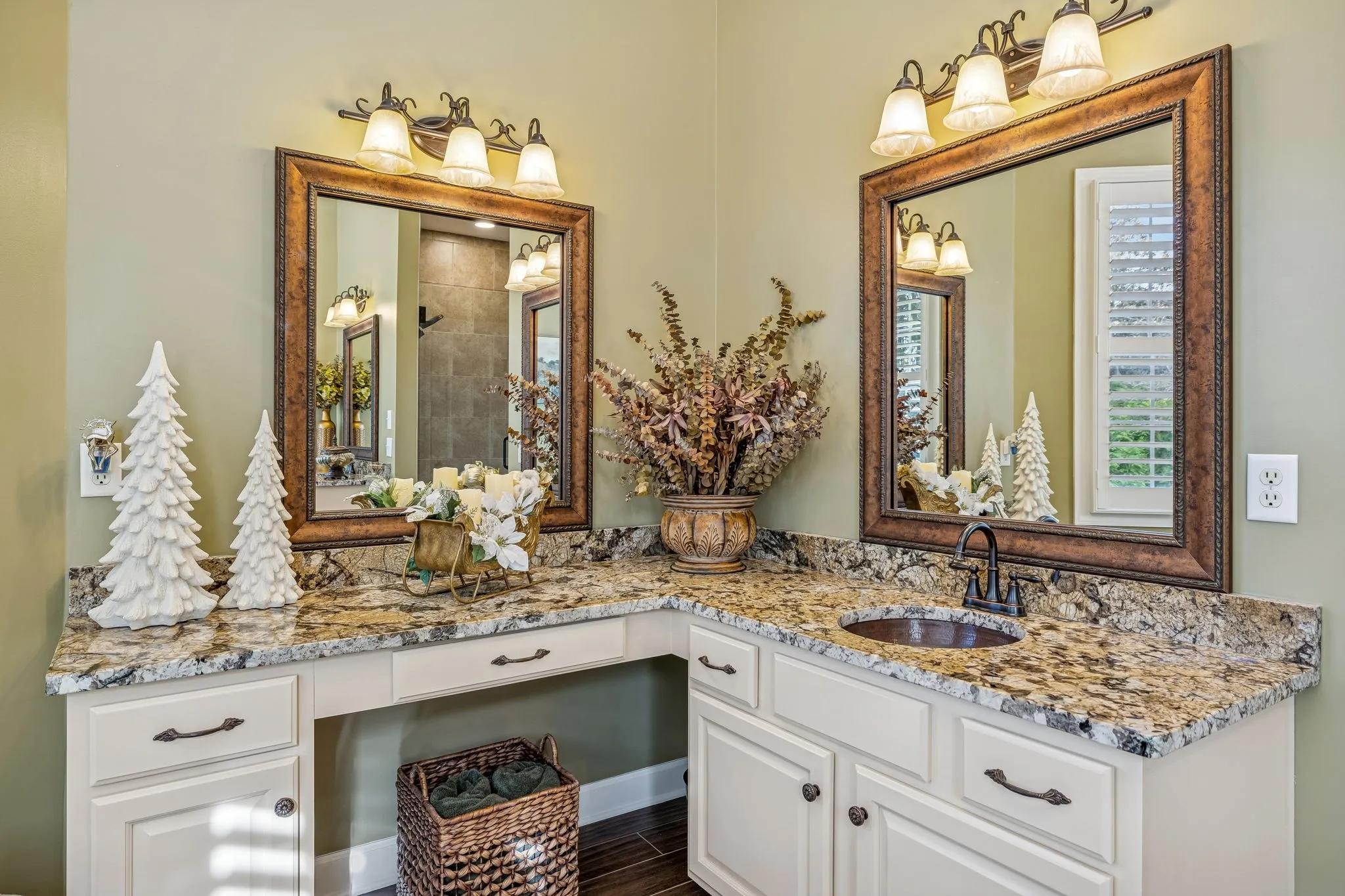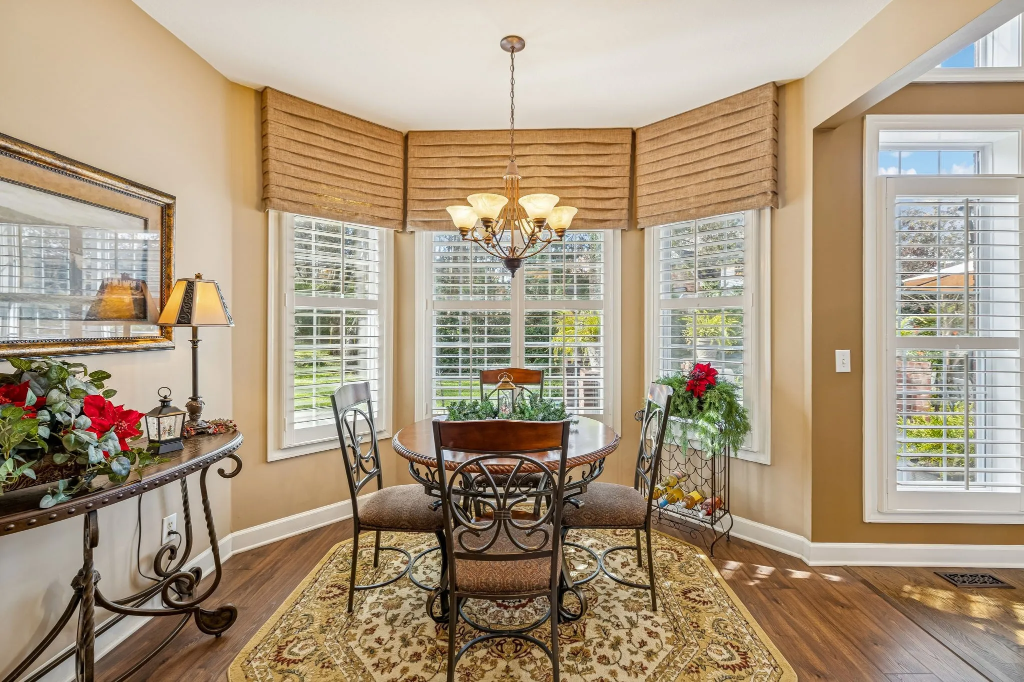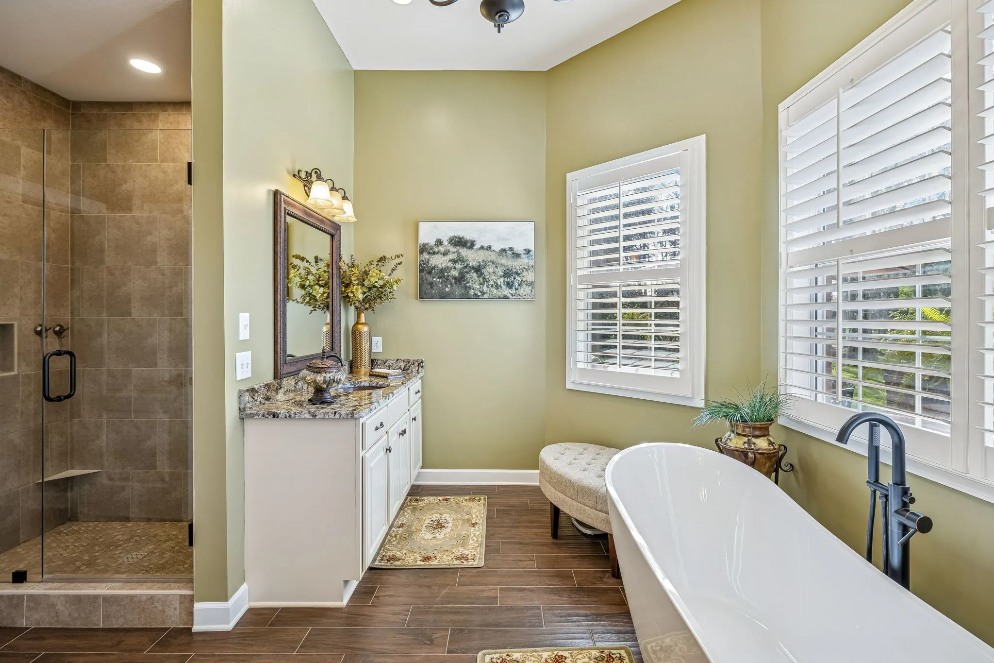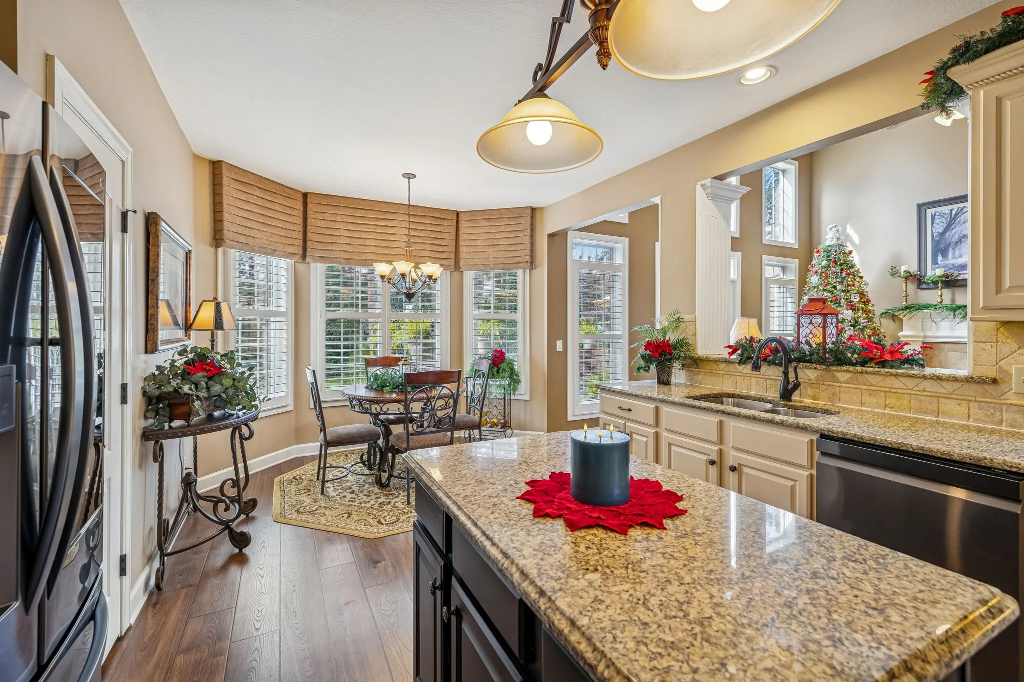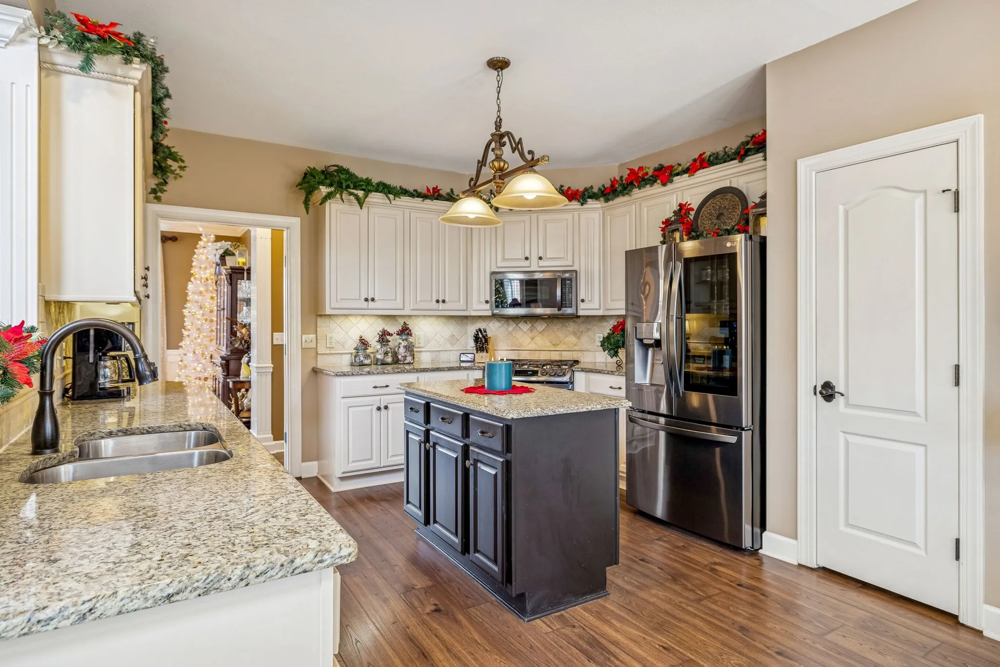 Set on almost half an acre with beautiful landscaping & towering trees, this elegantly updated home blends high-end finishes with effortless comfort in one of the area’s most desirable locations! Step into a grand 2 story living room with high ceilings & fresh décor, flowing across newly sanded & stained hardwoods after removing all downstairs carpet & replacing every lower-level floor with hardwood, plus new flooring in the kitchen, laundry room, & both downstairs baths. The fully remodeled eat-in kitchen features a center island, granite counters, customized cabinetry, & all new appliances from Ferguson’s, while the remodeled bathrooms showcase hand-hammered copper sinks & all new plumbing fixtures, including a stunning master bath transformation. The main floor offers a spacious master suite with two walk-in closets, plus an additional bedroom with its own full bath. Upstairs includes two bedrooms, a full bath & half bath, & brand-new carpet, along with a large bonus room over the garage with its own half bath. Major upgrades include a new roof, fully encapsulated crawlspace, gutter filters, newer heating & air units, a newer water heater, replaced smoke & carbon monoxide detectors, custom drapes, full interior repaint, solid wood shutters on all windows & secondary doors, all new exterior wall lighting, & redesigned exterior accent lighting with brass fixtures & underground wiring installed by TN Lighting. The attached side-entry 2 car garage has been rebuilt with added outlets, fluorescent lighting, & fresh paint. Outside, enjoy a lush yard supported by a 10-station irrigation system fed by its own well, along with regular professional servicing for HVAC, plumbing, electrical, pest control, seeding, & lawn fertilizing. A spacious 2-level patio completes this inviting outdoor space, offering the perfect setting for grilling & relaxation. This meticulously maintained home offers exceptional storage, thoughtful upgrades, & high-quality care throughout!
