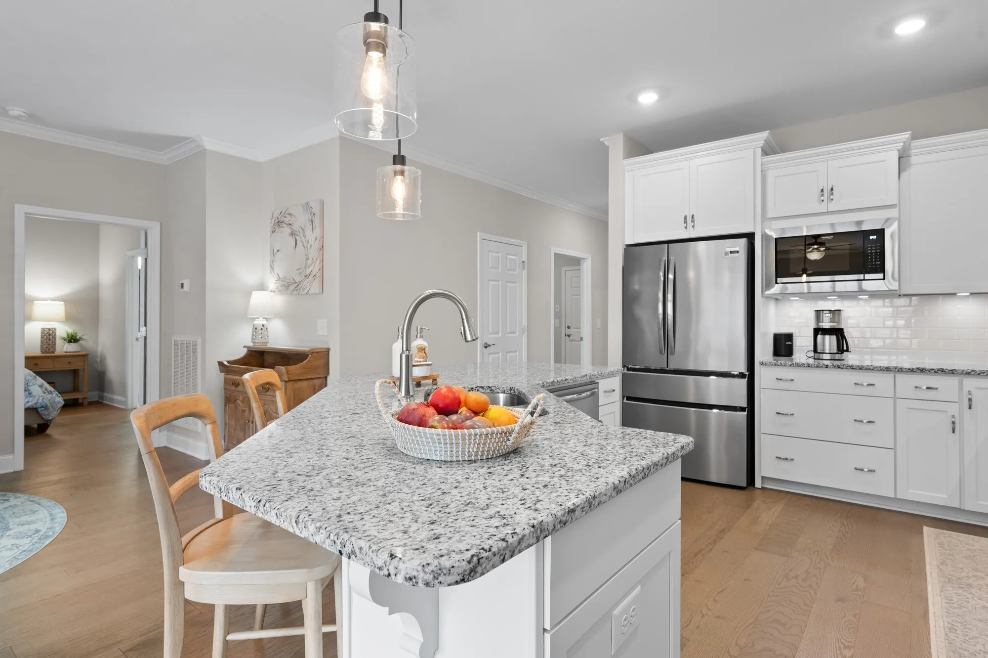 Meticulously maintained one-level living in Stonebridge! This like-new 2-bed, 2-bath home offers 1,633 sq ft of thoughtfully upgraded space — no stairs, just effortless flow. Enjoy a bright, open concept, an upgraded kitchen with granite countertops, soft-close cabinets, gas appliances, and double oven. The primary suite features a tray ceiling and luxe walk-in shower, while custom wood shutters and hardwood flooring throughout elevate everyday living. Step out to your screened porch and landscaped backyard — perfect for morning coffee or entertaining. The home has been maintained with bi-annual servicing, termite treatments, freshly sealed driveway, + insulated garage door with keyless entry. This neighborhood offers many features including award winning amenities with clubhouse, pool, monthly events, and walking trails. Don’t miss this home that combines comfort, style, and low-maintenance lifestyle!
