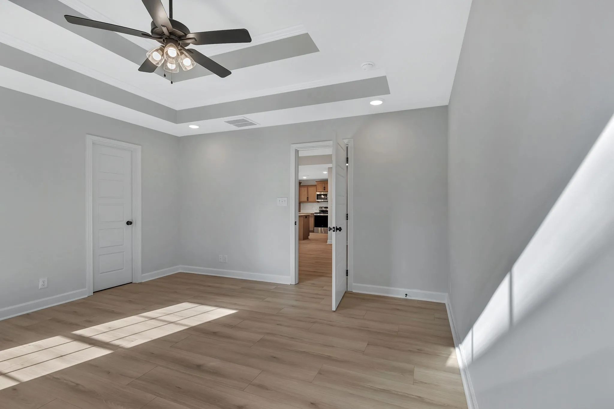 The primary suite is designed for comfort with a tiled shower separate from the soaking tub, double vanities, and plenty of space to unwind. Two additional bedrooms are located on the opposite side of the home, giving everyone privacy. Upstairs, you’ll find a loft-style bonus room that can serve as a home office, playroom, or media space.