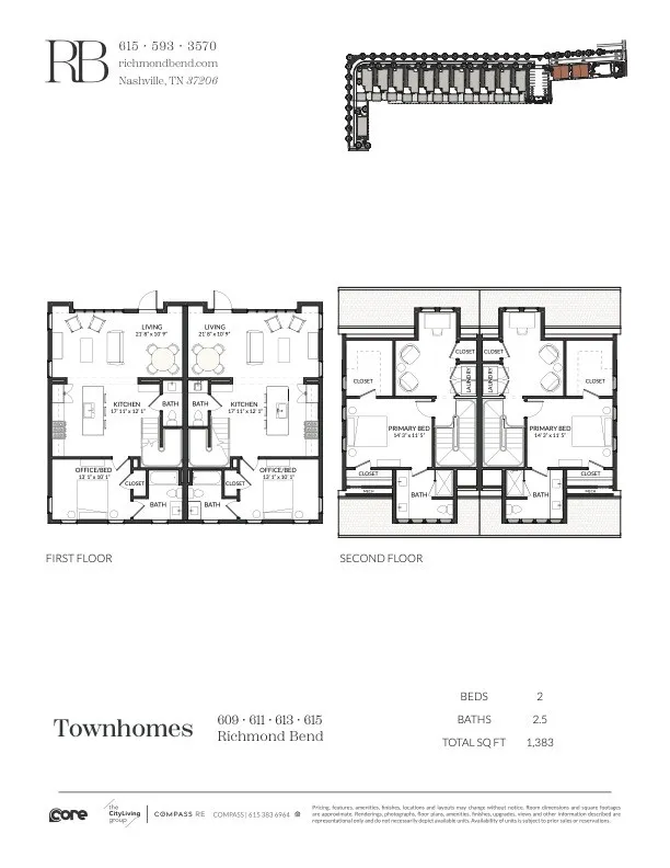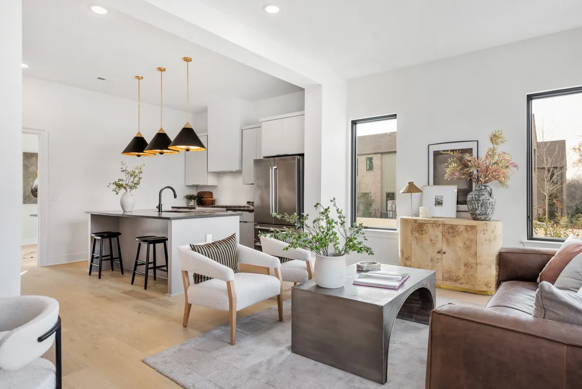 Located just down from the intersection of West Eastland & McFerrin Ave, Richmond Bend is an exciting new mixed-use community from Core Development in the historic Greenwood neighborhood of East Nashville. Steps from amazing and award-winning restaurants and shops, such as Mas Tacos, Pharmacy Burger, Lyra, Peninsula, Framework, Bookshop and more. Richmond Bend leads with a brand new restaurant at its McFerrin Ave entrance that will be home to Bar Cala Cala, the next culinary endeavor from the team behind Xiao Bao. Just behind that will be a small group of luxury townhomes, including this beauty at 615 Richmond Bend. Designed by Pfeffer-Torode Architecture with interiors by Design Object and landscaping by Firma the project is underscored by sophisticated finishes and classic details including light wood, wide plank floors, large scale windows, elegant staircases and high ceilings. On the main level you have an open living area with well appointed Italian influenced kitchens featuring Bertizoni appliances. There is also a secondary bedroom suite/office suite, and a separate powder room. Upstairs is the primary suite with bonus closets, an elegant bath and a separate office/den with WD closet.
