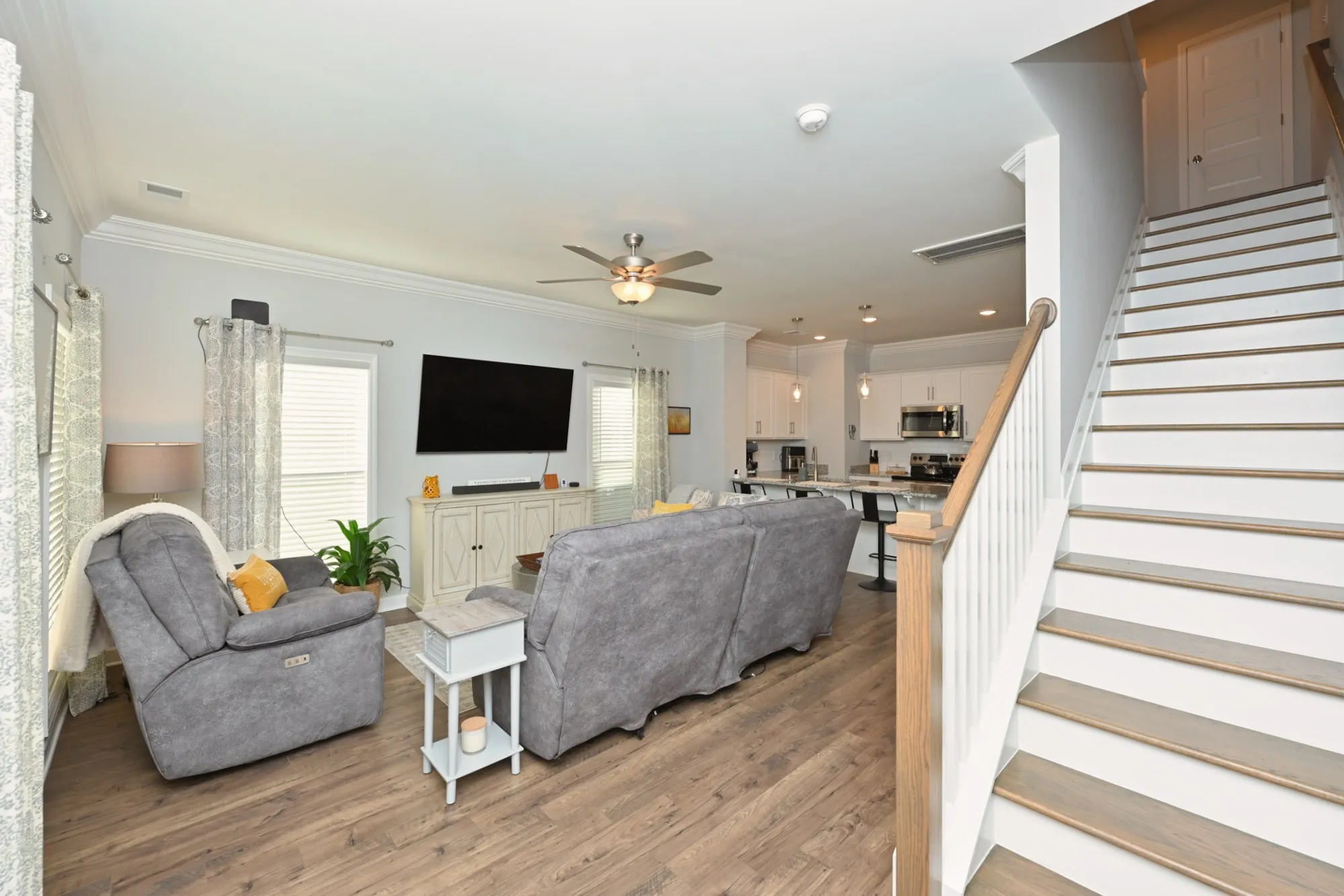 Quick Move In! This craftsman Townhouse features a stunning brick and James Hardie exterior with a covered front porch! This Townhouse features 2 bedroom, 2.5 baths, flex room on the first floor, and a private back patio. The Sellers have added crown molding throughout the home. Upstairs has HUGE primary suite with tons of light and walk in closet. Great separation between Primary bedroom and secondary bedrooms. The attic has been encapsulated. This Townhouse offers blinds on every window and a stainless steel refrigerator/freezer already in place for buyer convenience. PREFERRED LENDER OFFERING A 1% LENDER CREDIT BASED UPON LOAN AMOUNT.