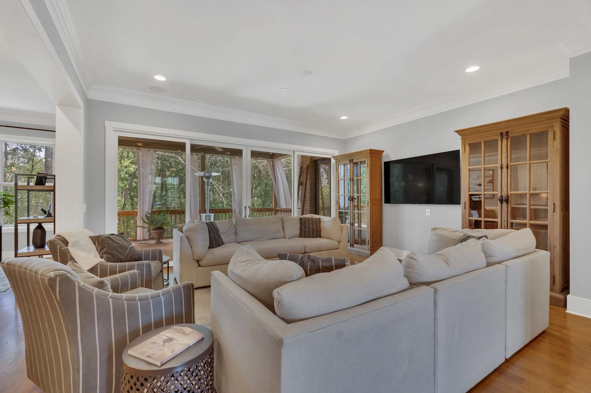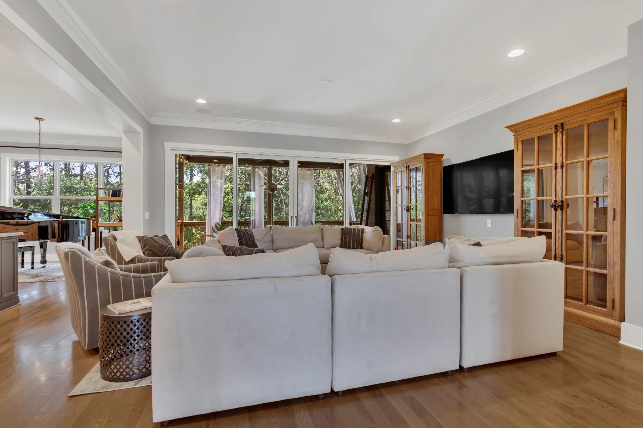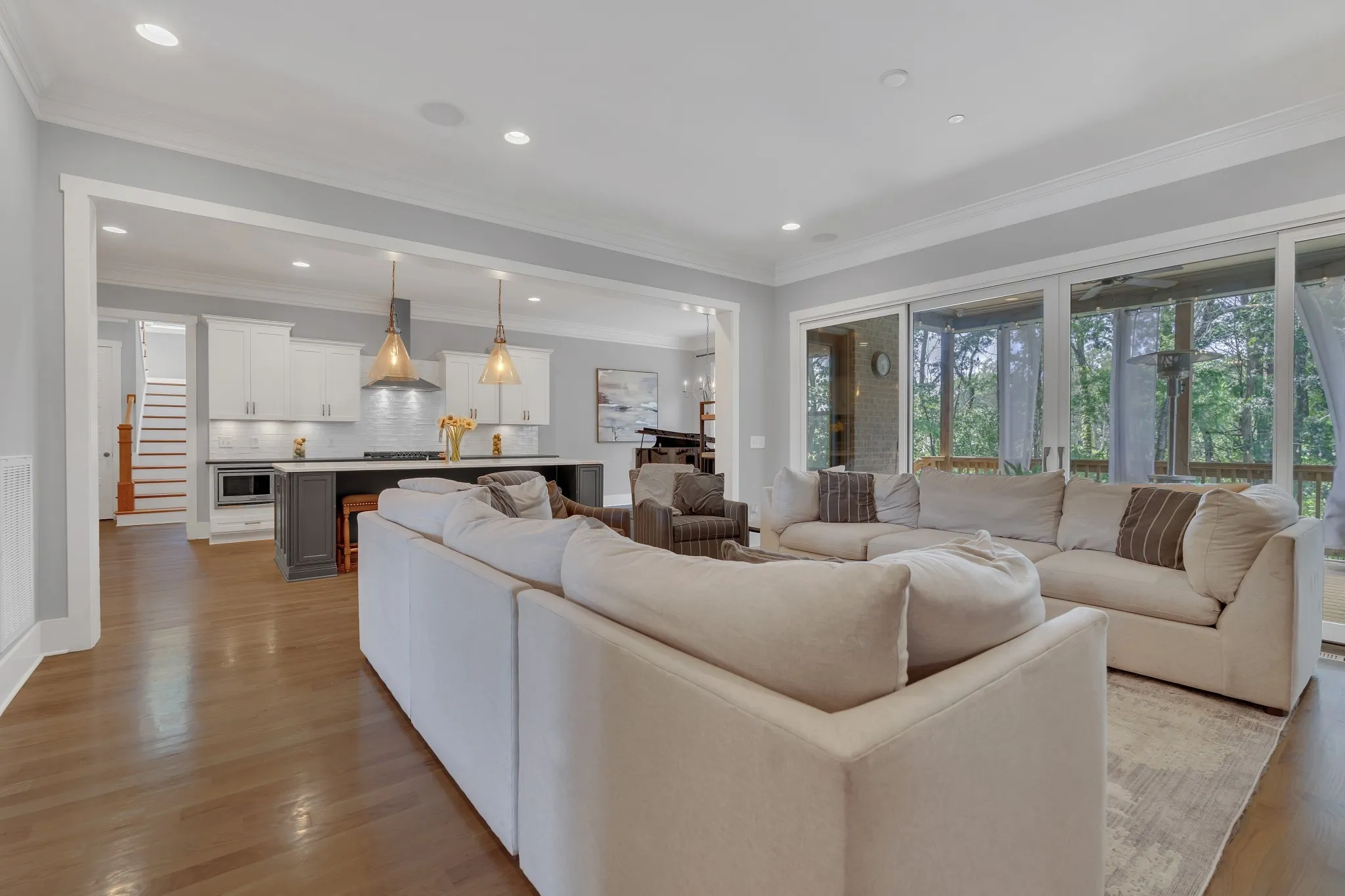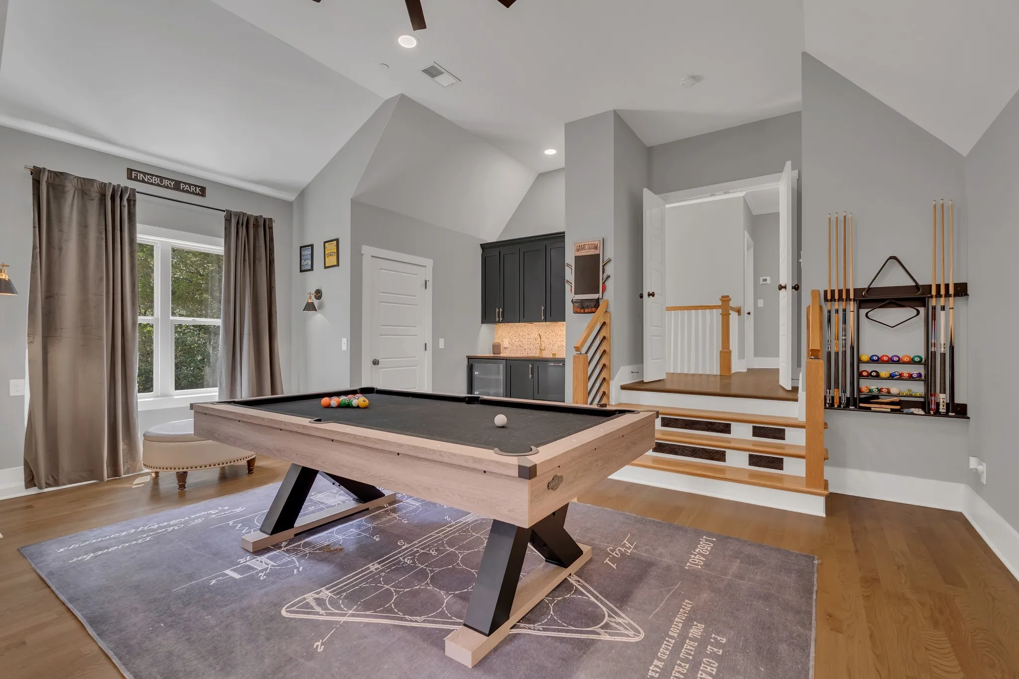 Tucked at the end of this quiet cul-de-sac, and backing up to a wooded tree line, you will find this beautiful, luxurious home in the coveted development of Benington. With over 5600 square feet, this custom built, Barlow Builders, home boasts high end finishes, sand & finish hardwood floors, an open floor plan and custom tile and trim work throughout. With an open living space and chef’s kitchen that flows effortlessly through a wall of glass sliding doors into the outdoor living area, this home is perfect for entertaining. The backyard oasis features a covered deck with a secondary patio and copper fire bowl for late night fireside chats. Or enjoy fun times with family and friends around the 50×100 lighted Bocce Ball Court. There is still plenty of room for a pool or outdoor kitchen/cabana to complete this backyard paradise! Five bedrooms allow for plenty of space for the large family or multi-generational living. There are so many additional spaces to make your own, from the large recreation room equipped with pool/ping pong table and basketball arcade, to a large office/hobby room, to a fantastic flex room perfect for media room, dance studio, fitness room or conditioned storage. Don’t forget to check out the third-floor art loft with the wall of windows overlooking the wooded backyard – a perfect space to let your creativity run free!