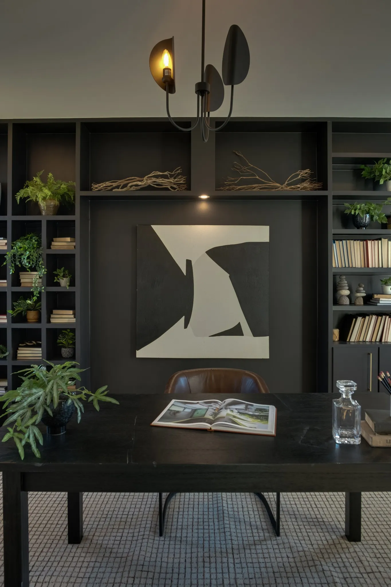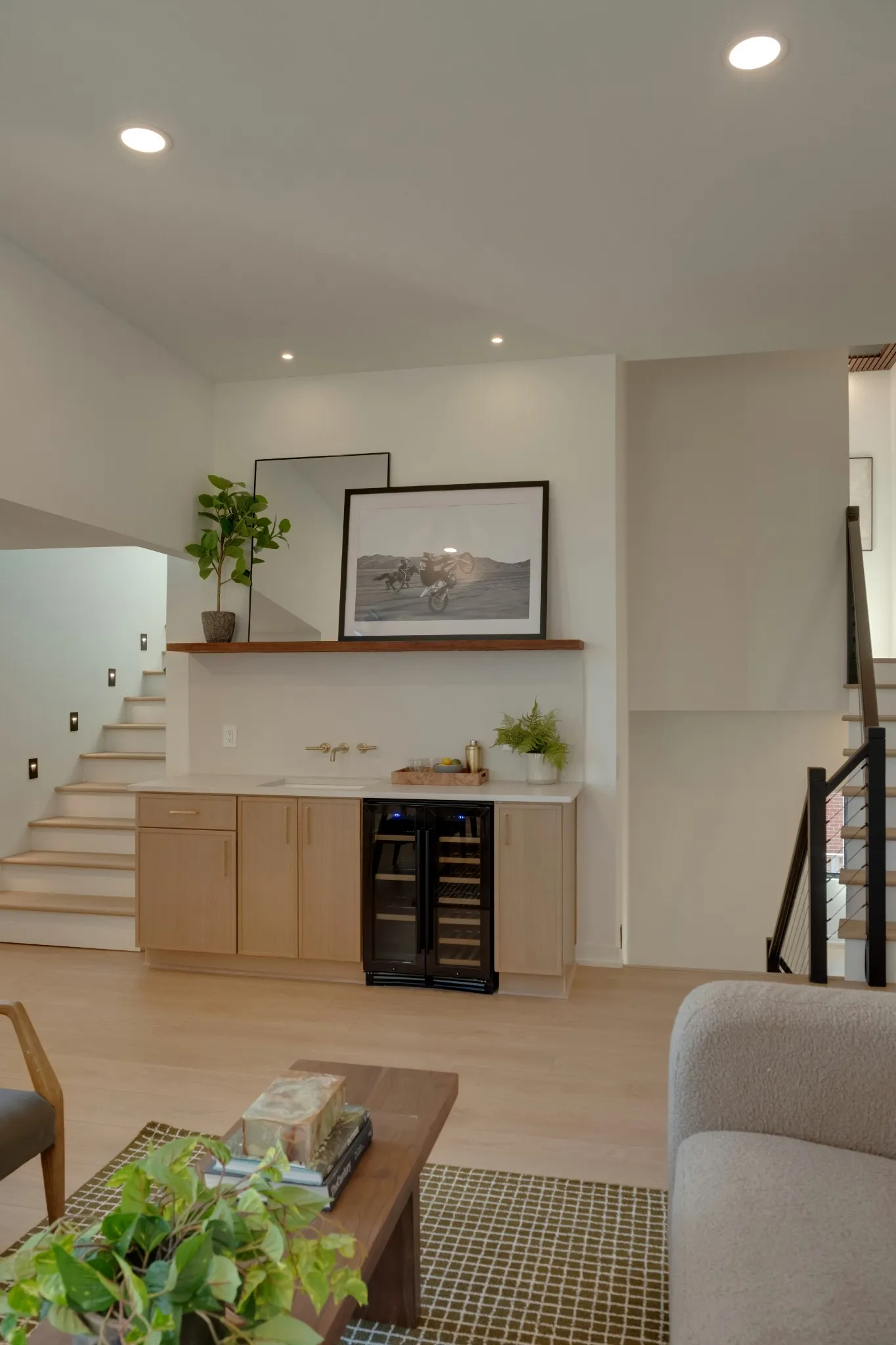 Just beyond, a cave-like dining experience awaits—wrapped in custom wood, built-in seating, and a custom wine cellar. This is the ultimate entertainment home, layered across multiple levels for gatherings of every kind.
