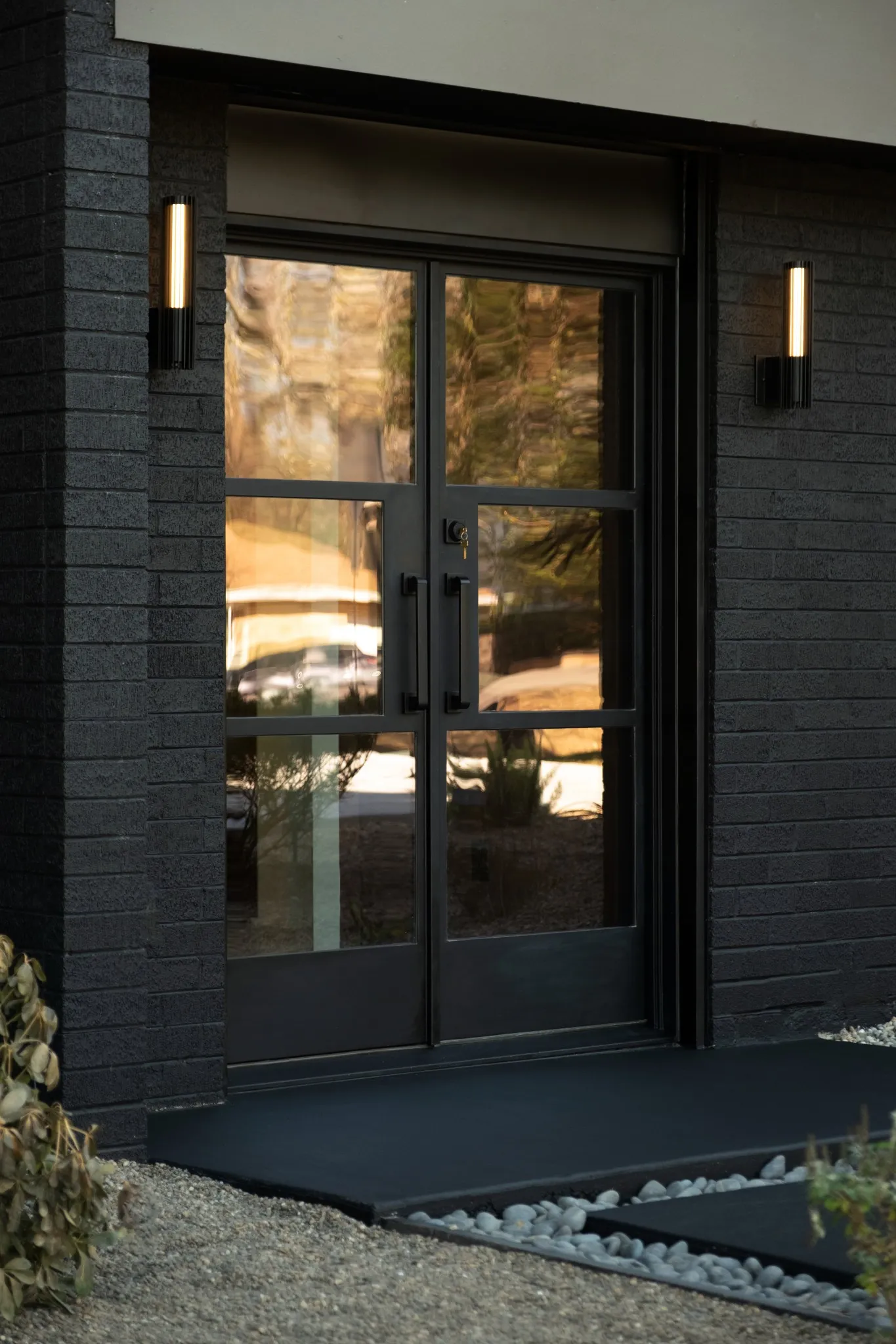 A private electric gate creates a bold arrival moment and secure entry.
