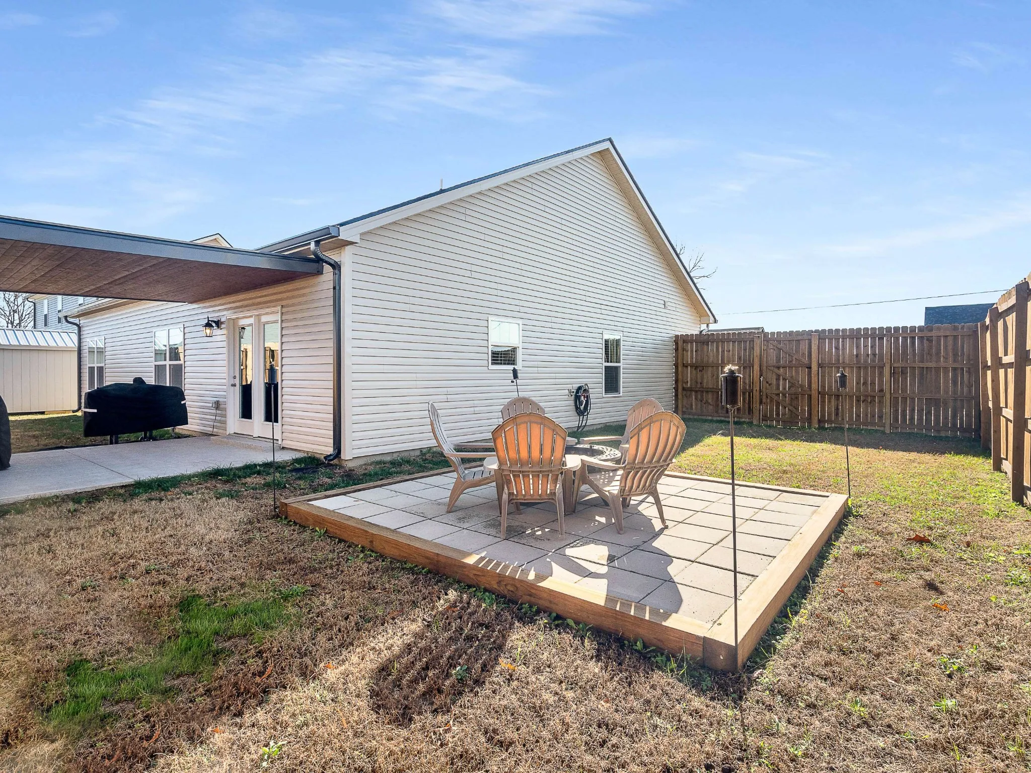 Outside, enjoy a covered patio perfect for morning coffee, plus a separate firepit area ideal for cozy evenings. The 2-car garage provides excellent storage and convenience.