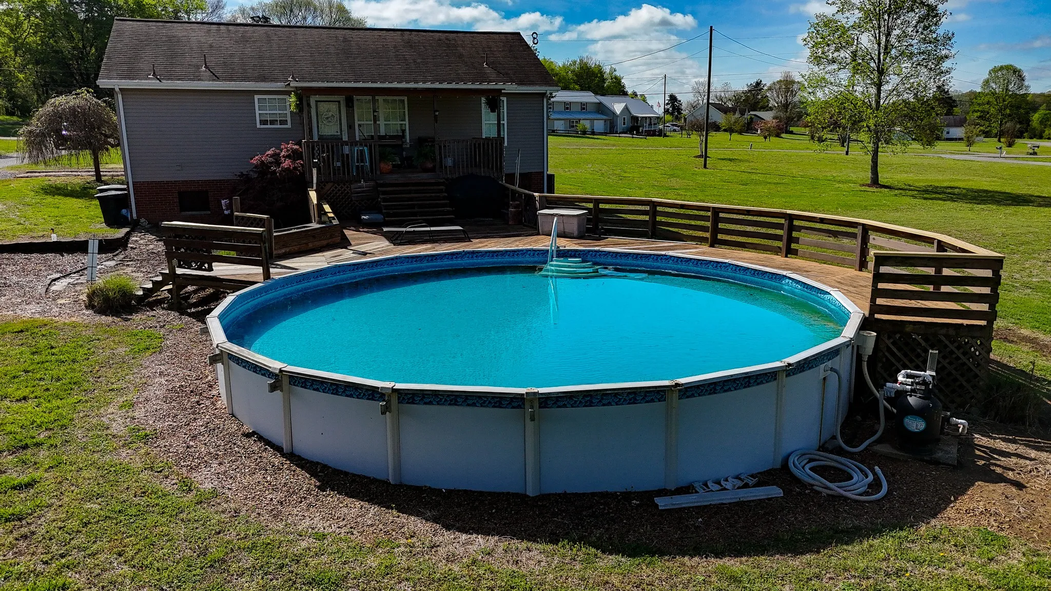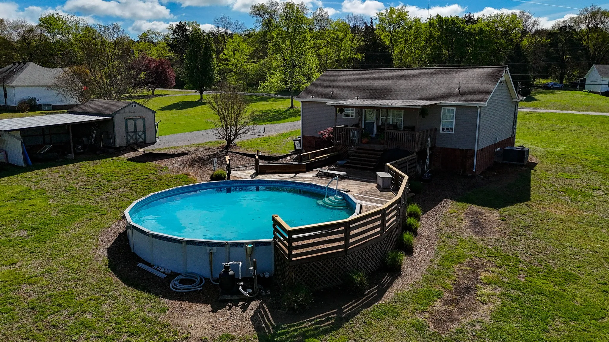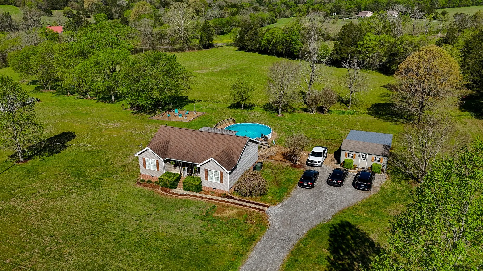 You wont want to miss this! Laminate flooring throughout the home, excluding two of the bedrooms which have brand new carpet. The back features a deck that encompasses the above ground pool. The home also features zoned bedrooms, and plenty of crawlspace storage. The 5 acre lot also features a mini-barn, lean-to, and a pond in the back pasture.