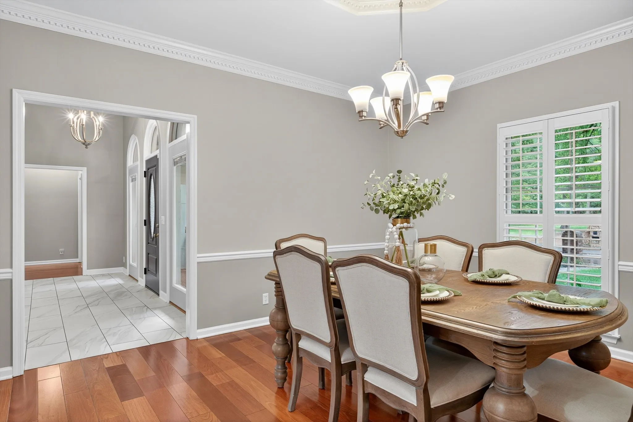 Beautifully updated one-level living in sought-after Northwoods! This 1.5-story ranch offers all main living on one level with only a single bonus room upstairs. Featuring 4 bedrooms, 2 baths, and 2,709 sq. ft. on a private 0.71-acre corner lot surrounded by mature trees, this home combines space, privacy, and modern comfort. Inside you’ll find hardwood floors, tall ceilings, custom plantation shutters, and a spacious living room with gas fireplace and built-in surround sound. The fully renovated kitchen features granite countertops, designer backsplash, updated plumbing fixtures, and newer stainless-steel appliances. Both bathrooms have been beautifully remodeled with high-end tile and fixtures. The home also includes a whole-house water filtration system and water softener plumbing for extra convenience and health. Enjoy outdoor living on the screened porch, walk-out deck, and covered gazebo overlooking a peaceful, park-like backyard — perfect for entertaining, relaxing, or watching the neighborhood’s friendly wildlife. Additional highlights include updated lighting throughout, abundant storage, a side-entry two-car garage, and a partially fenced yard. Located minutes from top-rated public and private schools, shopping, and dining — this rare one-story home in one of Murfreesboro’s most desirable neighborhoods is truly move-in ready!