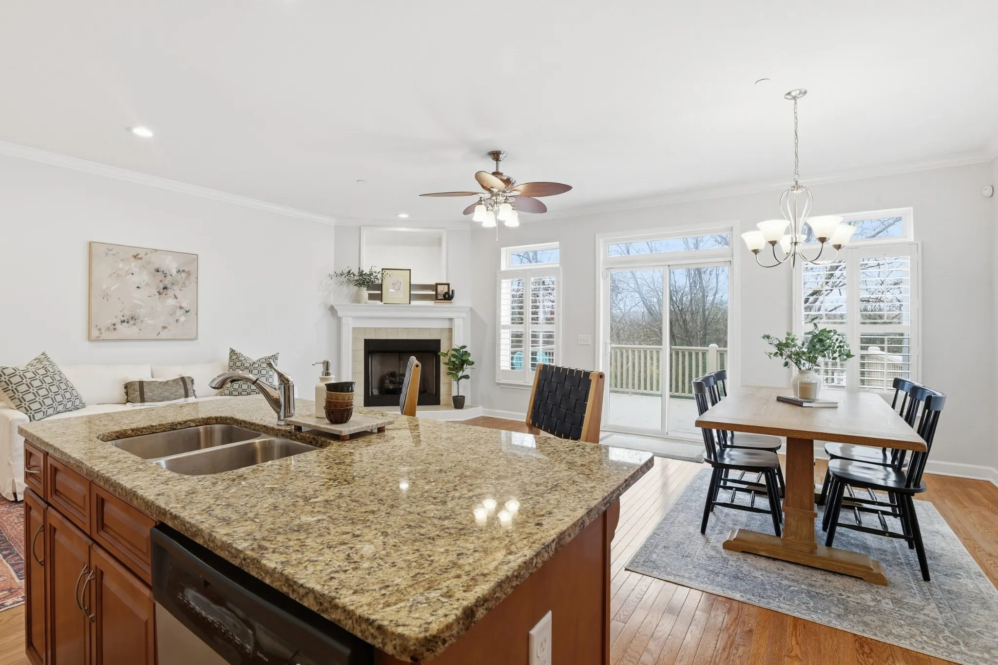 Beautiful end-unit townhome in the highly desired Park Place community. This rare end unit features a bright, open main level with 9’ ceilings, hardwood floors, granite countertops, tile backsplash, custom cabinets, and new appliances. The primary suite is conveniently located on the main floor for effortless living. A recently finished lower level adds a spacious bonus room with an electric fireplace — perfect for a lounge, movie room, playroom, gym, or office. The HOA covers all exterior maintenance except the deck, giving you true low-maintenance living. Roof and gutters are less than 2 years old, offering peace of mind for years to come. Enjoy the quiet, small-town charm of Kingston Springs just minutes away. A move-in-ready home that blends comfort, style, and convenience. Schedule your showing today.
