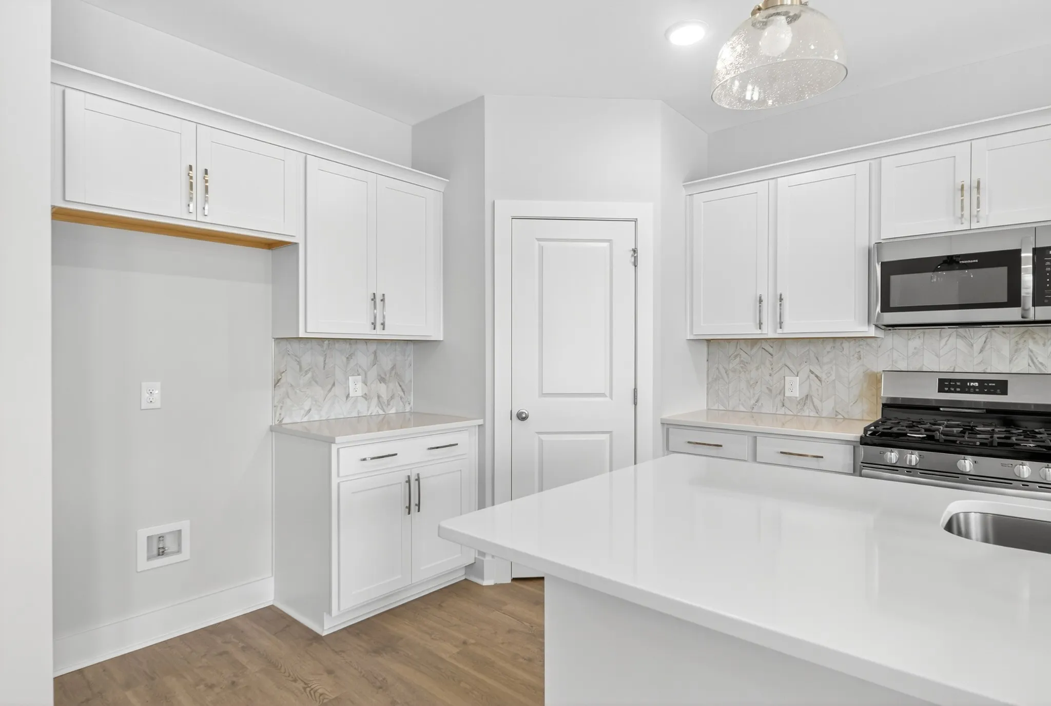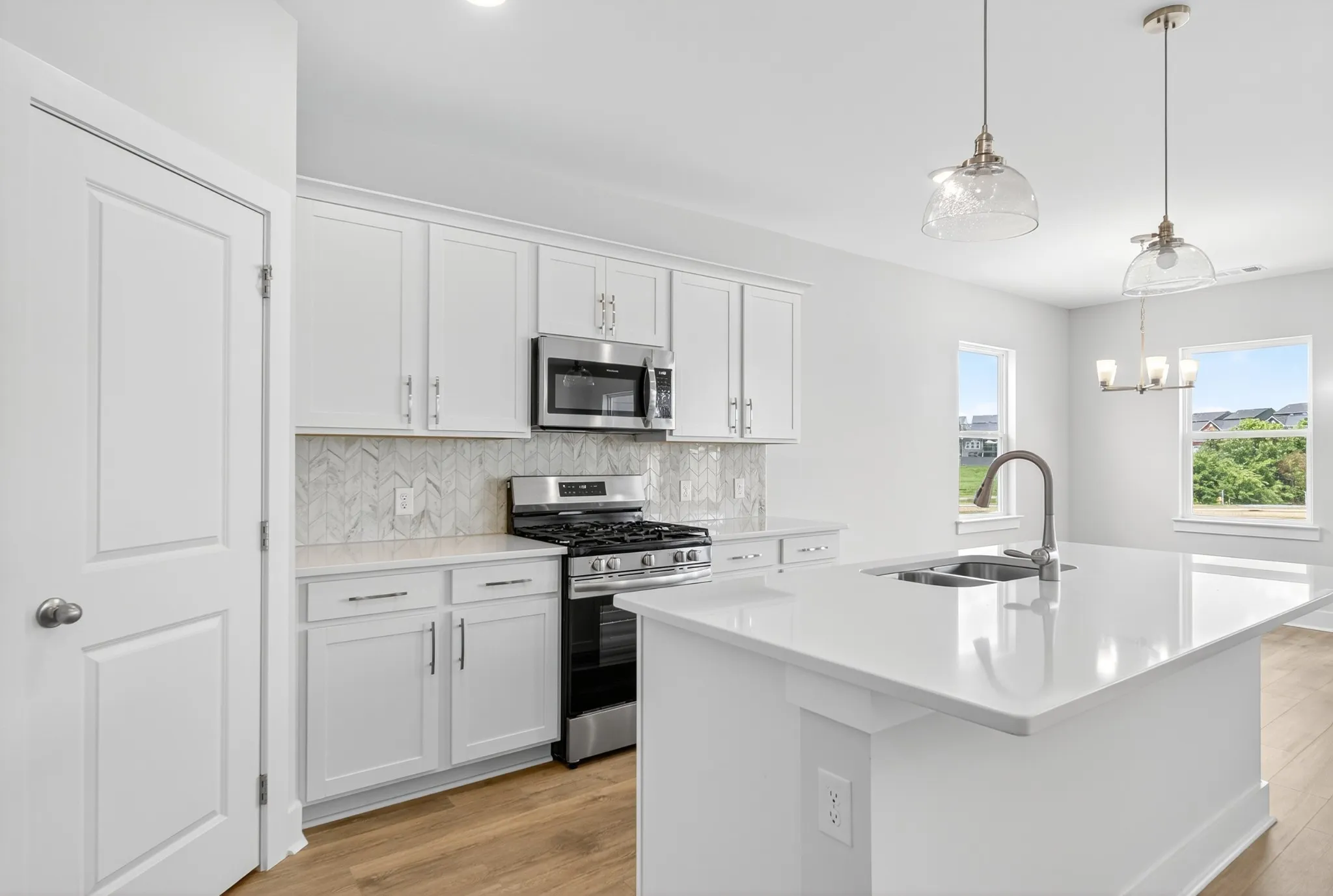 Charming and functional one-level living with 3 bedrooms, 2 baths, and stylish upgrades throughout! Enjoy an open-concept design featuring a spacious kitchen with white 36” cabinets, quartz countertops, designer backsplash, LED lighting, and pendant accents. The light-filled great room is perfect for gatherings, while the primary suite offers double vanities, quartz countertops, a tiled walk-in shower, and a generous closet. Includes a covered front porch, 2-car insulated garage, Hardie board siding, and smart home features like a smart deadbolt, and home automation panel.