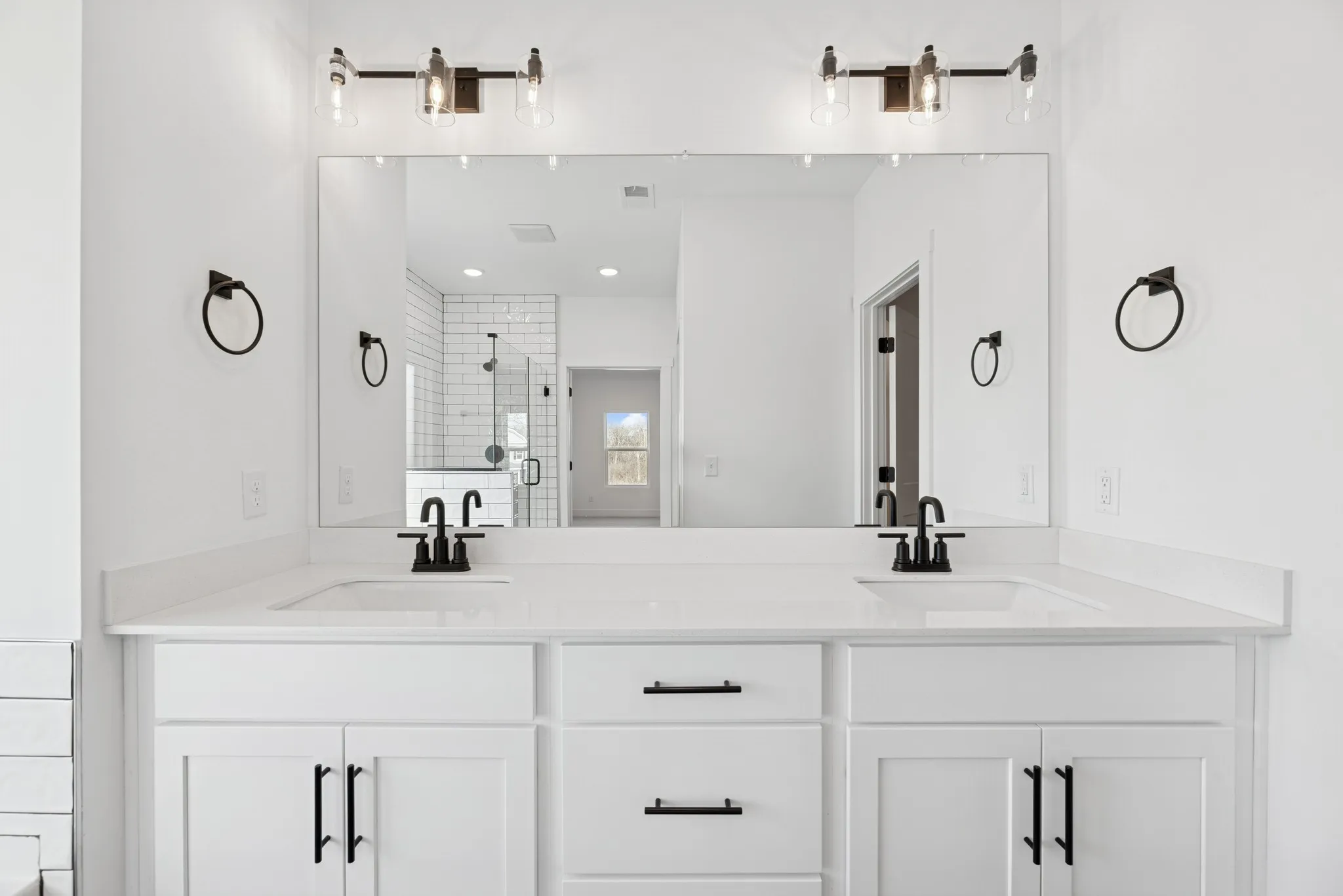 The first-floor primary suite is a true showstopper, featuring designer black tiled floors, a deluxe tiled shower, a spa-like soaking tub, double vanities, and a large walk-in closet. Upstairs, a massive loft provides flexible space for movie nights, game days, or a second living area. You’ll also find three oversized secondary bedrooms, each with its own walk-in closet, and a beautifully appointed bathroom with double vanities, and plenty of storage.