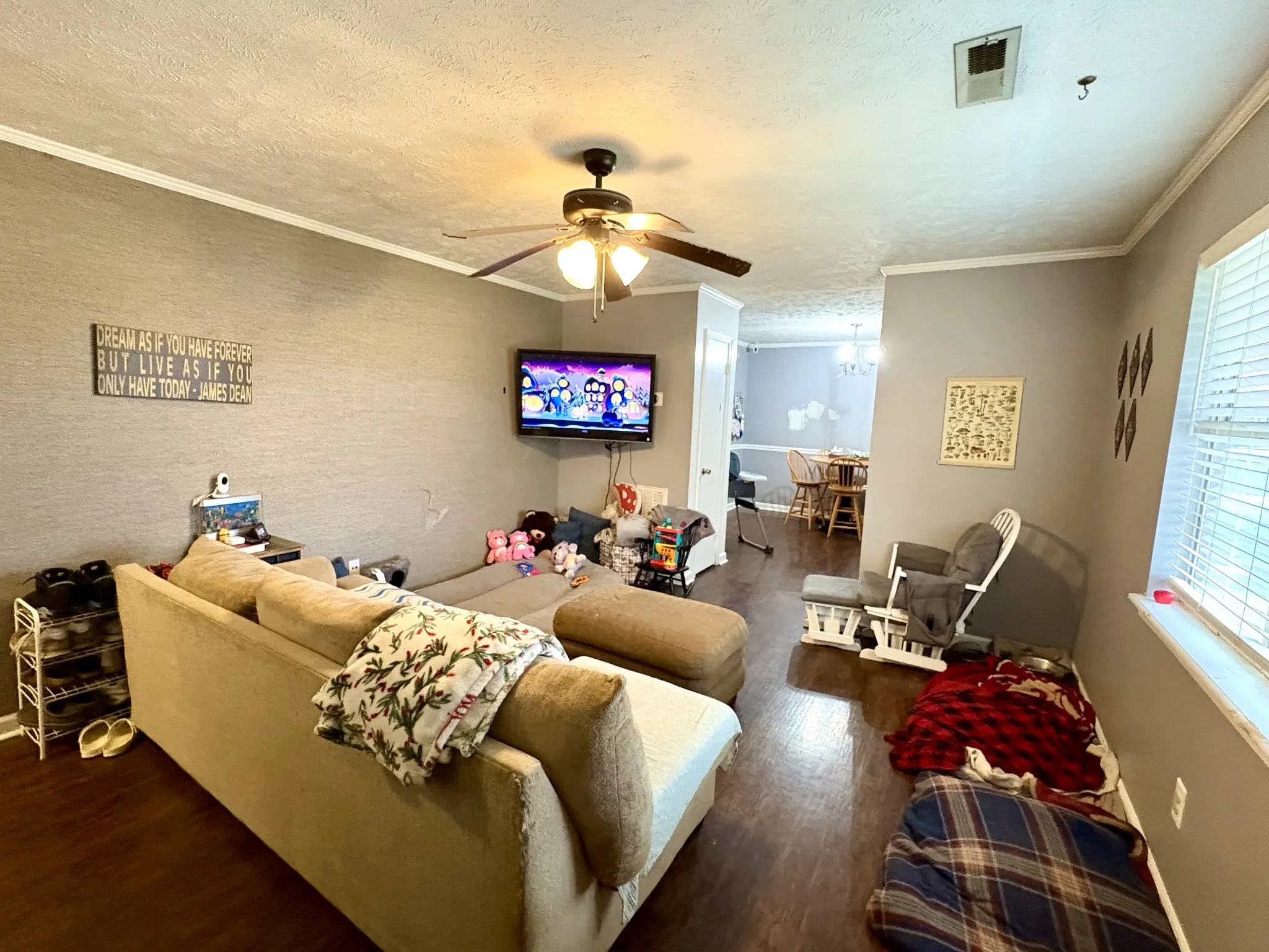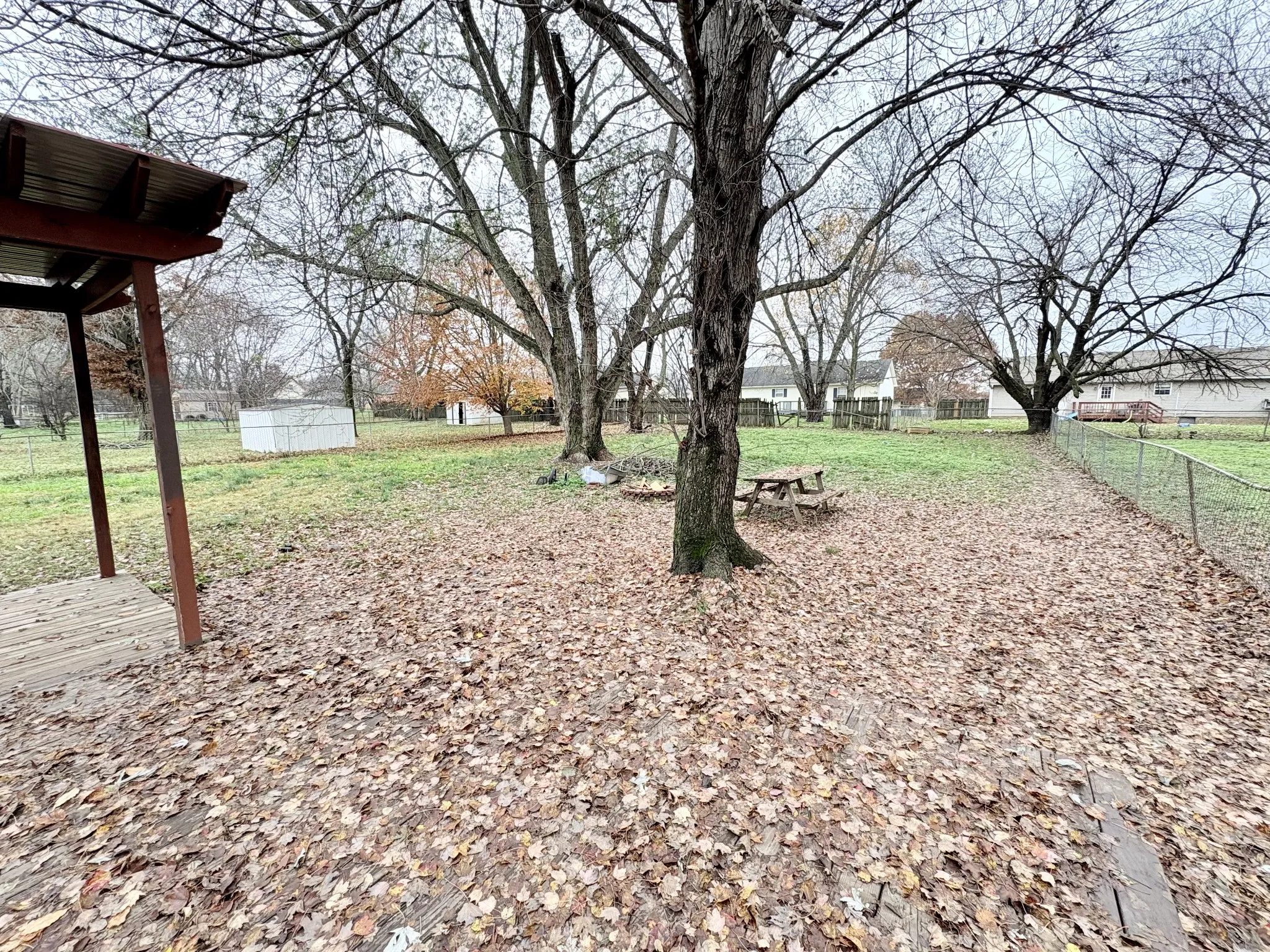 Perfect starter home or investment. This awesome ranch style house features great spaces both inside and out starting with an amazing covered porch running almost the entire length of the house. Updated laminate flooring flows from the spacious living room into a dining room large enough to easily accommodate a full size dinette nicely. The oversized 13×12 master bedroom includes a walk through closet and en-suite bath. Outside, a gated walkway opens up into the huge fully fenced backyard displaying a wonderful park like setting, complete with a fire pit area, and including a massive party deck with a built in pergola. Attached carport with storage room. No HOA! Close to Fort Campbell. If you are not afraid to do some small cosmetic enhancements to save big on price, then this is the opportunity you have been looking for! Schedule your showing now.