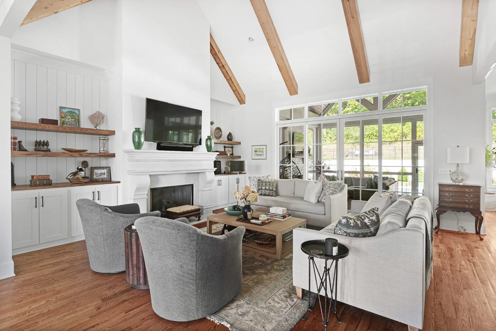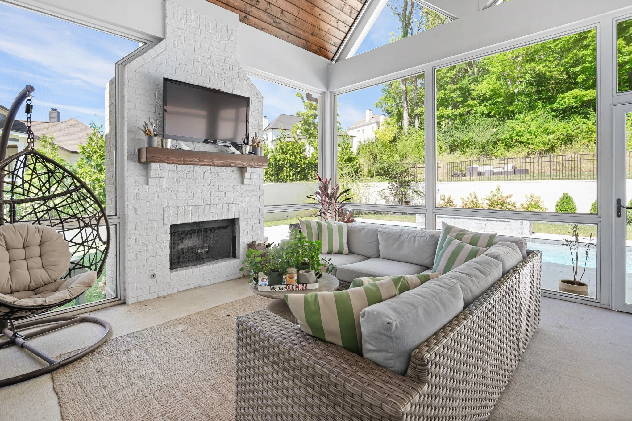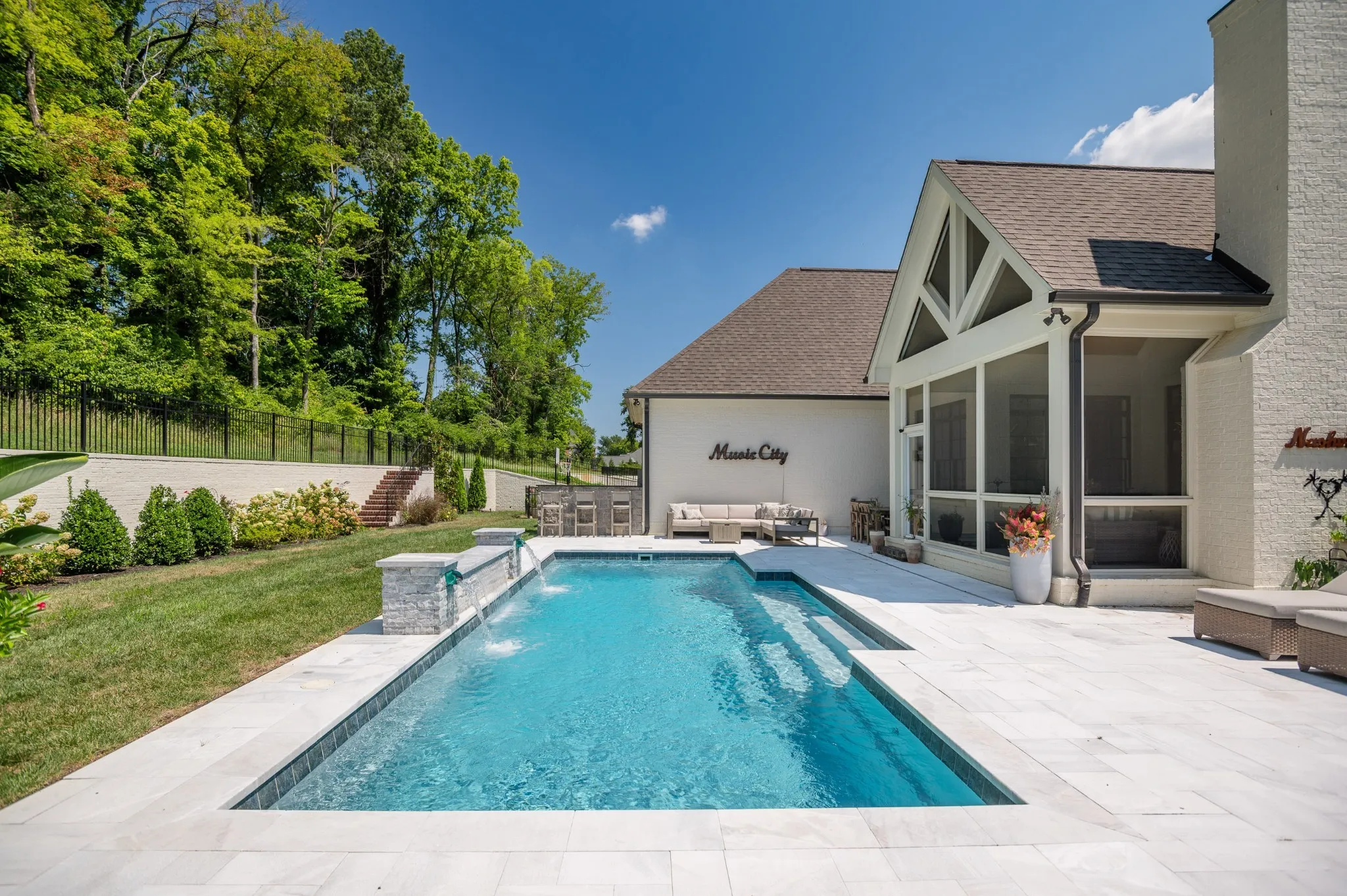 Amazing 4,487 sq ft custom built home finished in December 2020 that still feels new! Several upgrades since the original purchase including a heated saltwater pool, outdoor grilling station and landscaping to create a backyard oasis. The luxury pool includes a waterfall and a lighting package, both fully controllable via app. The beautiful marble pavers do not retain heat – perfect for the summer heat. Mature privacy trees plus the lot backs up to wooded HOA space that can never be developed! Complete irrigation throughout the yard. Enjoy evenings watching tv in front of the wood fireplace on your screened in porch or sit out front on the covered porch to take in the views. Inside you will enjoy all the benefits of a new home with a large open floor plan, incredible kitchen with high end appliances, and vaulted ceiling with wooden beams in the great room. Vaulted ceilings continue in the generous primary. The spa-like primary bathroom includes a premium tub with jets. There is a second bedroom and en suite on the main floor as well. It includes a private outdoor porch for guests to step outside and enjoy a morning coffee. On the way upstairs you’ll find large windows with lots of natural light. Two living areas upstairs with 2 spacious bedrooms, both with en suites. Natural light fills the home. Zoned for highly desired, award winning Williamson County schools. This home has so much indoor and outdoor living to offer. The Reserve at Raintree also includes a pool, tennis court and pickle ball courts. This home is a must see!!