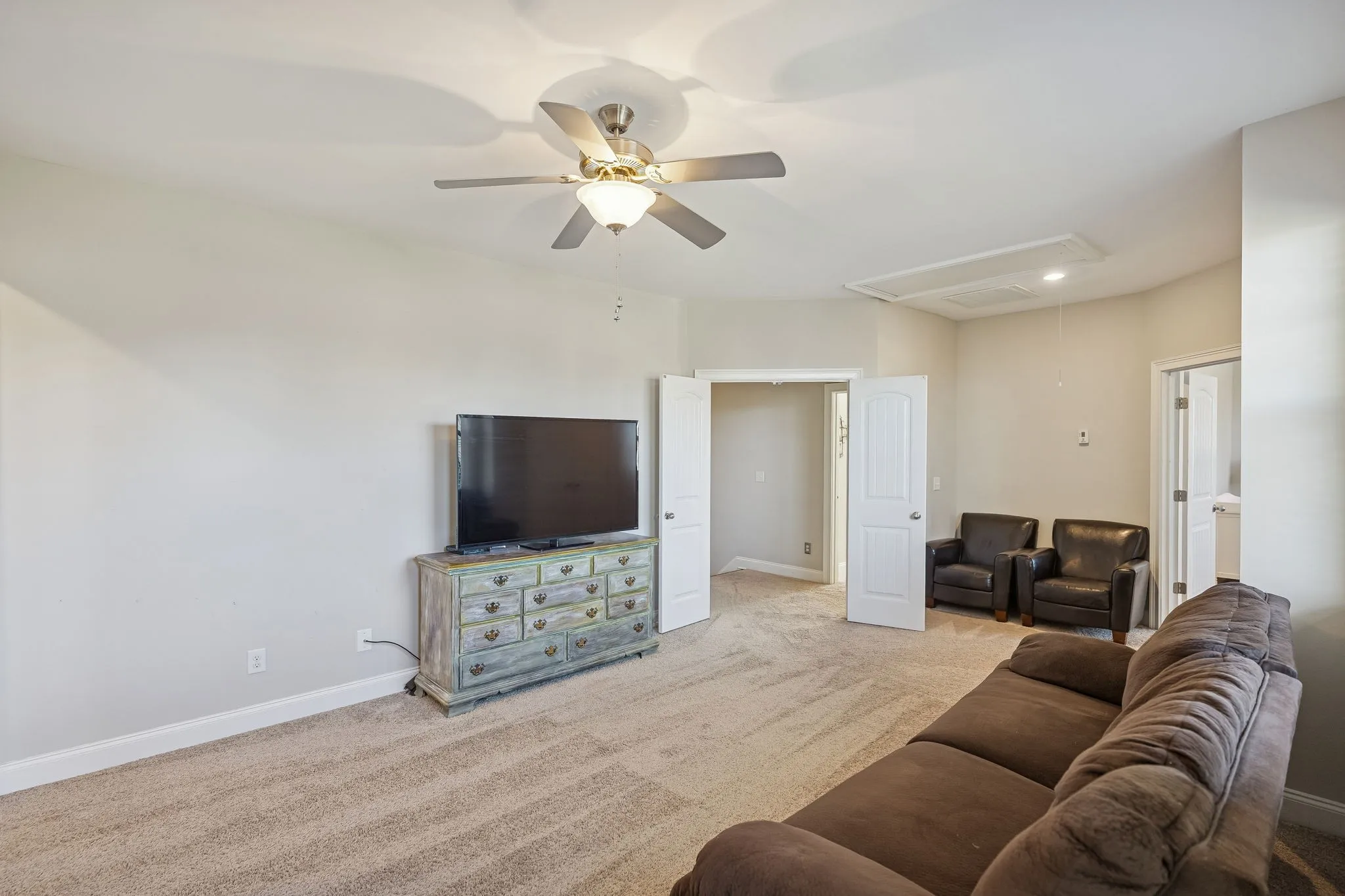 Inside, sunlight fills the freshly painted interior, creating a warm and inviting atmosphere throughout. The primary suite on the main level provides everyday convenience, while a dedicated home office supports today’s work-from-home lifestyle. Upstairs, the signature feature of this home shines: a flexible loft that can be left open or fully closed off, transforming the entire second level into a private living area perfect for multi-generational living, a kids’ play space, study zone, or quiet retreat. It keeps noise upstairs while giving everyone their own space a rare and valuable option not found in other homes nearby.