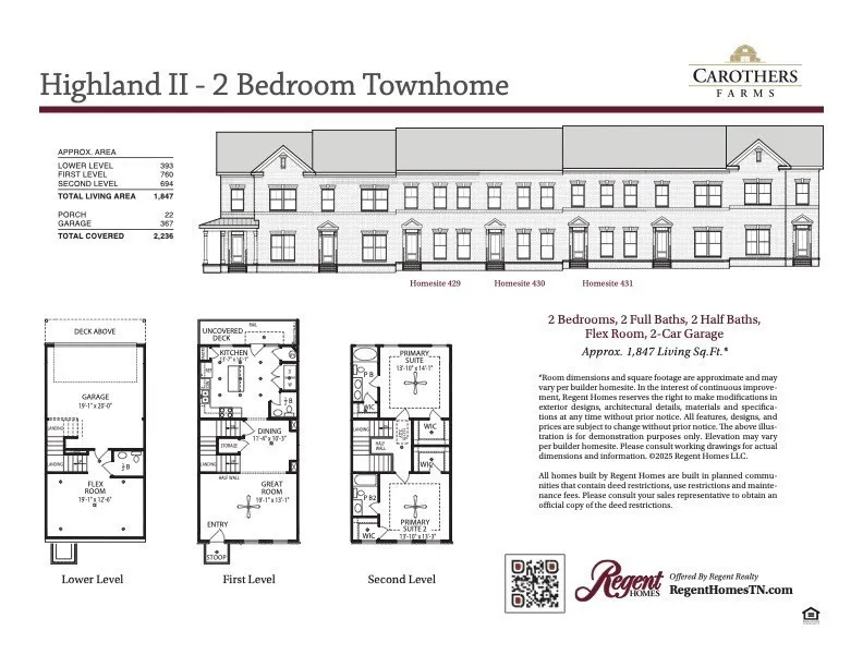Welcome Home to popular Carothers Farm. Planned community with luxury living in your NEW Highland II 2 bedrm townhome. Features an open-concept floor plan complete with LVP on main first fl; crown molding, upgraded quartz countertops, stainless steel appliances, tile floors in wet areas. Numerous windows allow for natural light, both Bedrooms are set up like master suites. Perfect for room mate situation. Storage is ample in your 2 car garage. Spacious balcony overlooks a picturesque walkable neighborhood; Carothers Farms in Nolensville features include a playground, dog park, organic garden, walking trail & event pavilion. Easy access to I-24 & Tanger Outlets, Nashville is only 20 minutes away. Home is perfect for an owner wanting maintenance-free living or an investor looking to unlock the potential of passive income. HOA includes Hi-Speed Internet! STILL TIME TO PICK INTERIOR COLORS