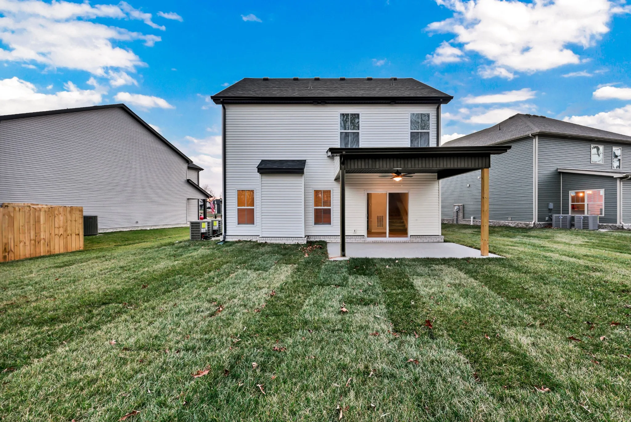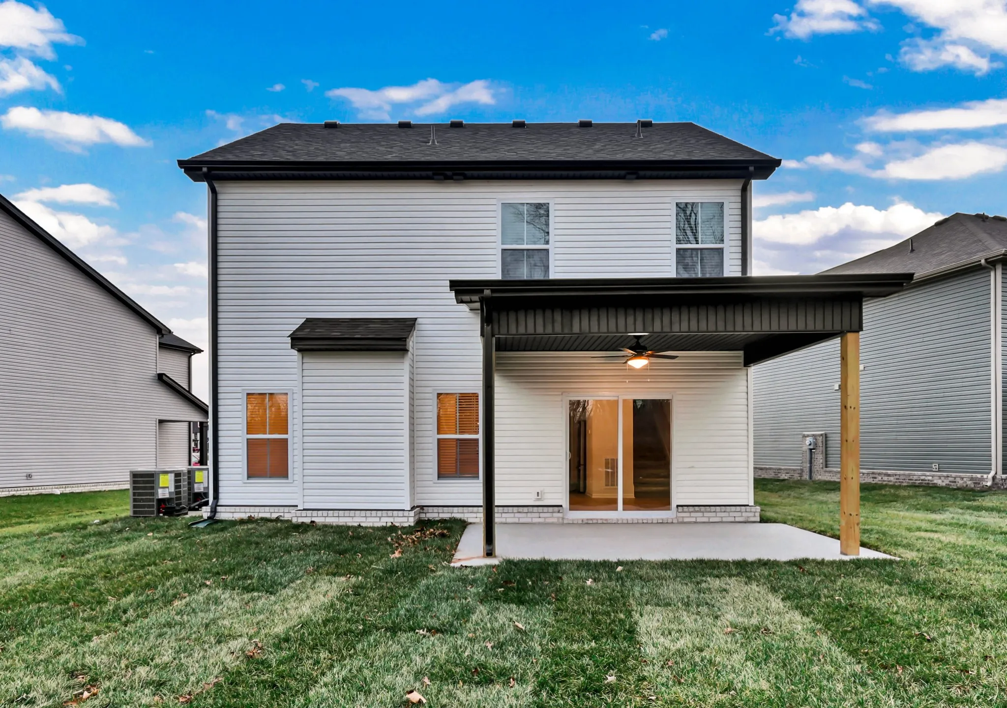 As a second-generation local builder, proudly rooted in Clarksville, Grant Construction builds more than homes—they build community. With exceptional craftsmanship, a retired veteran on the crew, and a commitment to supporting our military service members, they stand behind every project with a reliable warranty you can trust. Grant Construction homes are Built for Life. This is a stunning three-bedroom, two-and-a-half-bathroom open-concept home. Step into a world of comfort with a kitchen featuring an open island that seamlessly connects to the great room & dining area. Revel in the stylish sophistication of the kitchen’s sleek backsplash, luxurious granite countertops, and stainless-steel appliances. Fridge, Blinds & Washer/Dryer INCLUDED!! Unwind in the great room, complete with a trendy shiplap electric fireplace. Upstairs, discover three spacious bedrooms nestled next to a conveniently located laundry room, adding a touch of practicality to your everyday routine. The primary ensuite boasts a fully tiled shower and a magnificent walk-in closet, providing a private sanctuary for your personal oasis. Step outside to your backyard covered space, the perfect setting to enjoy the beautiful scenery. Located conveniently near Exit 11 making your commute to Nashville or Ft Campbell a breeze.